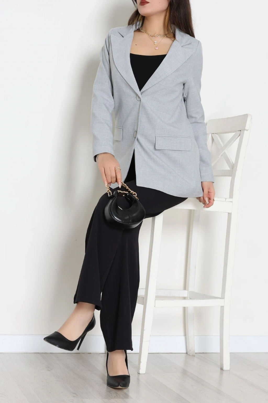 Astarlı Poliviskon Blazer Ceket Gri - 31823.1397.