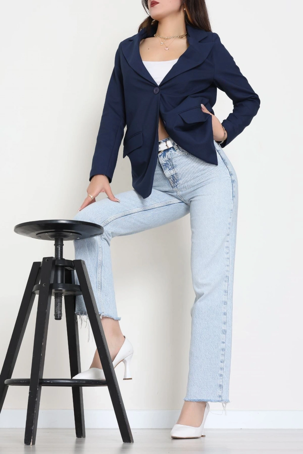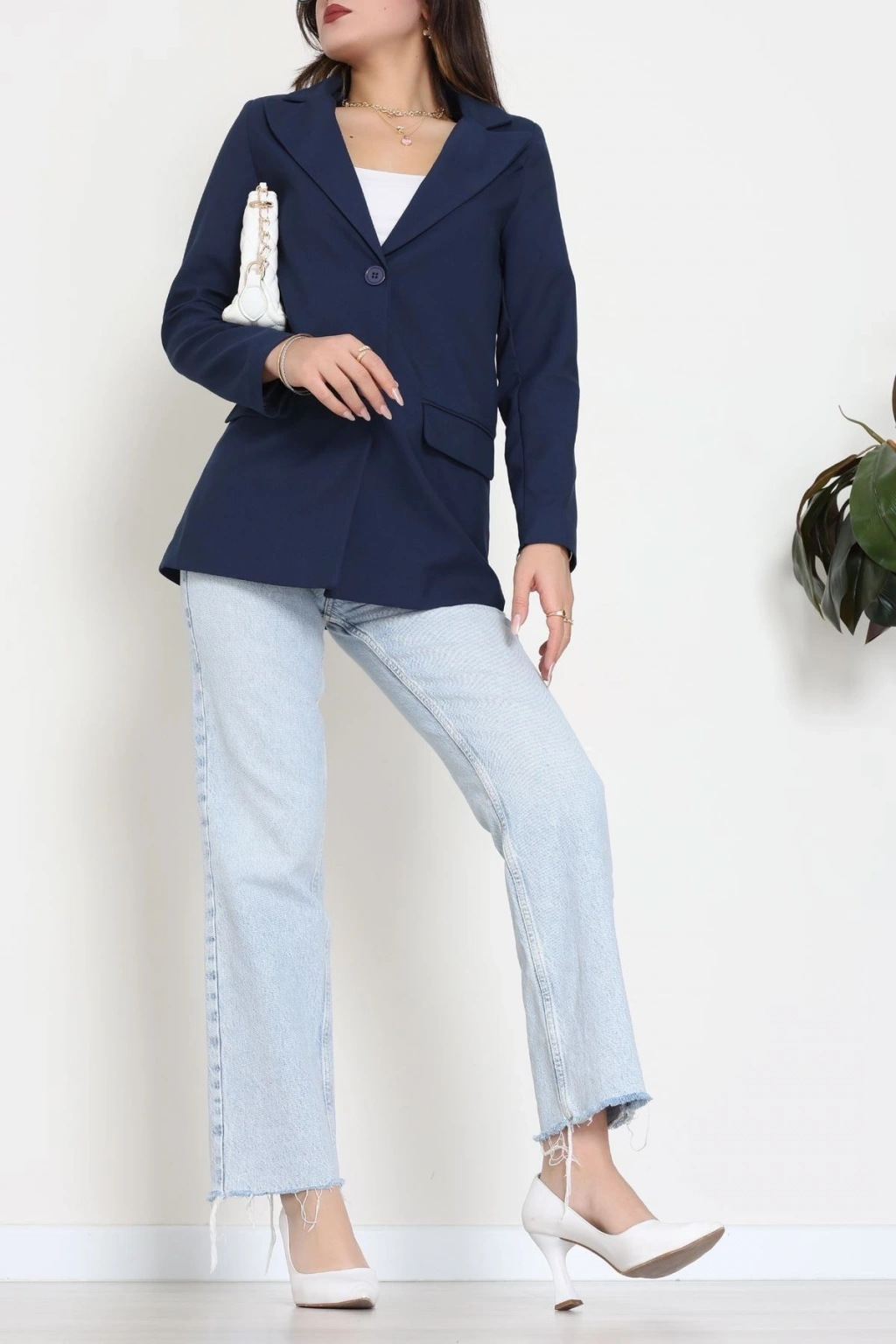 Astarlı Poliviskon Blazer Ceket Lacivert - 31823.1397.