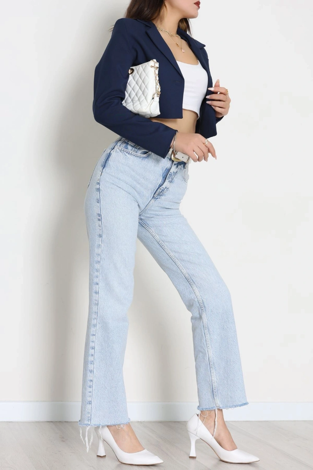 Astarlı Poliviskon Kısa Blazer Ceket Lacivert - 31824.1397.