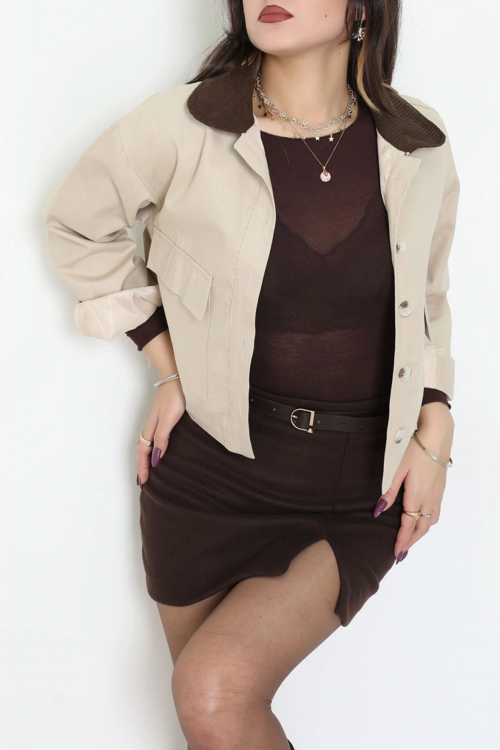 Astarlı Yaka Fitilli Gabardin Ceket Bej - 8790.179.