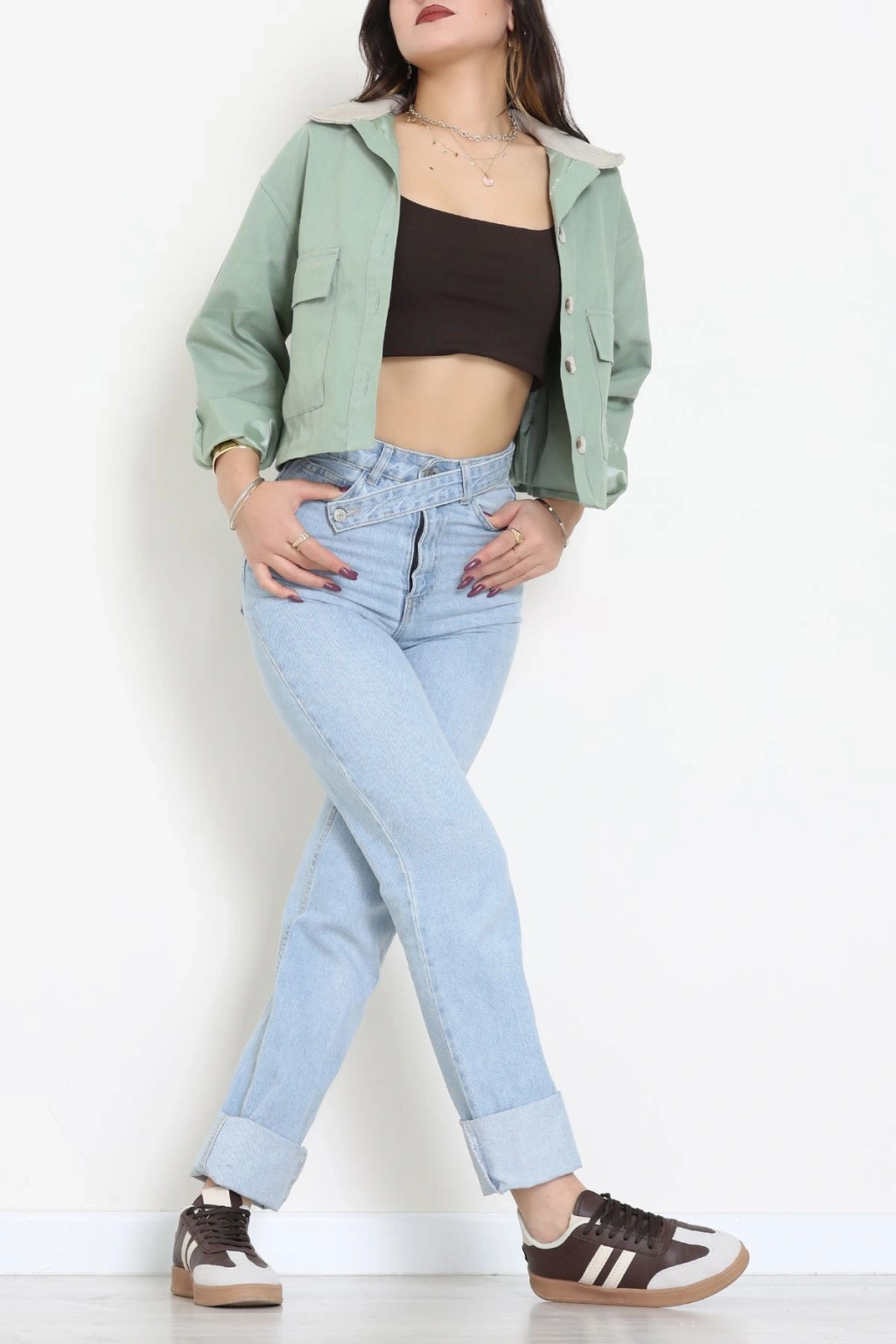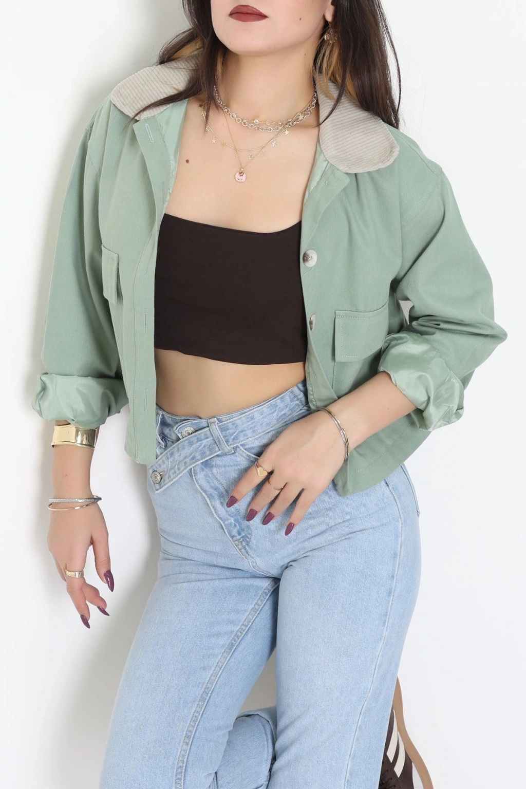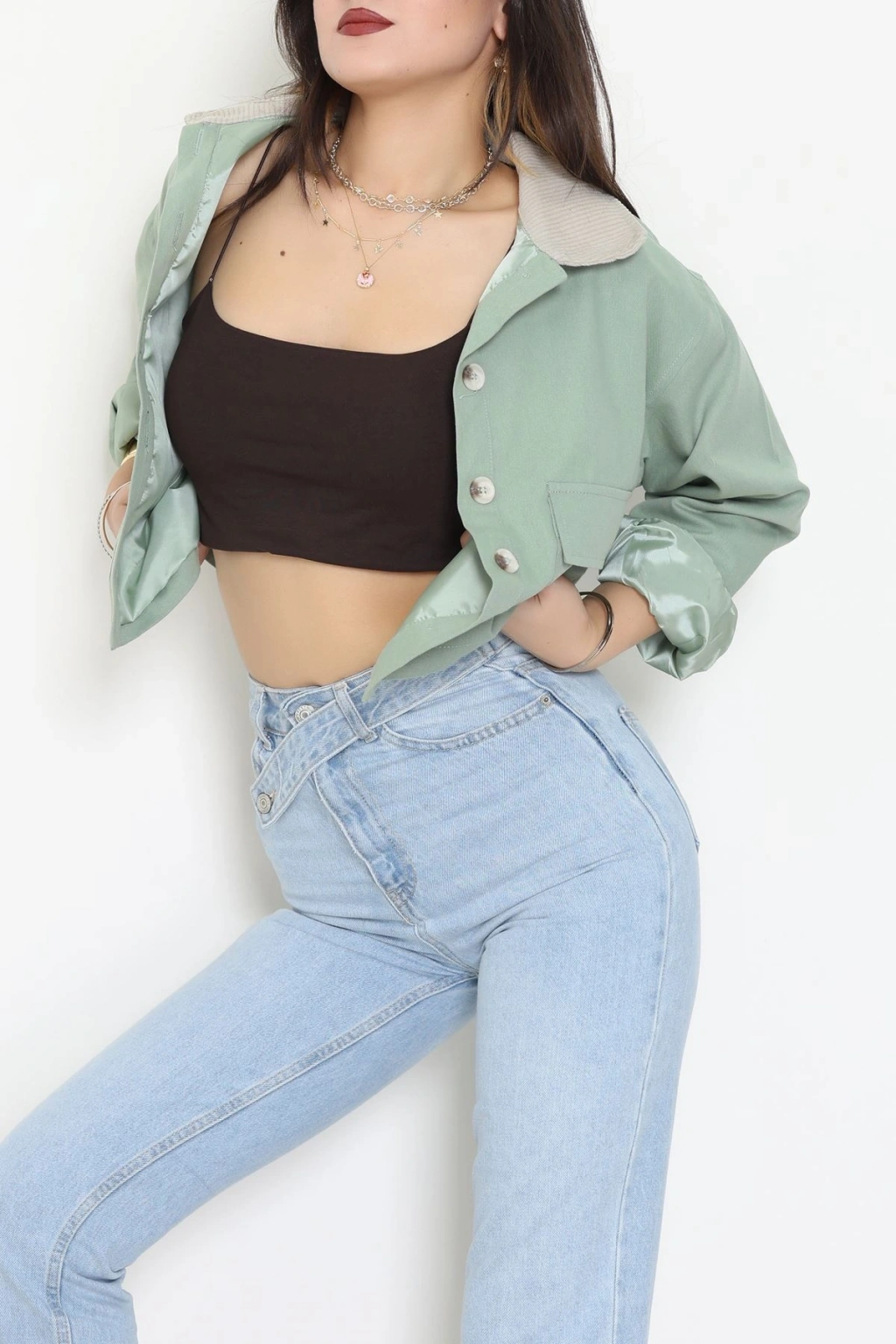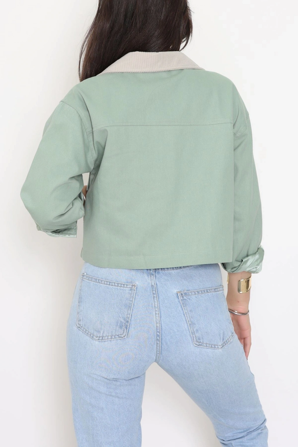 Astarlı Yaka Fitilli Gabardin Ceket Mint - 8790.179.