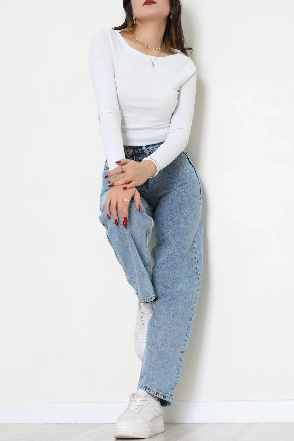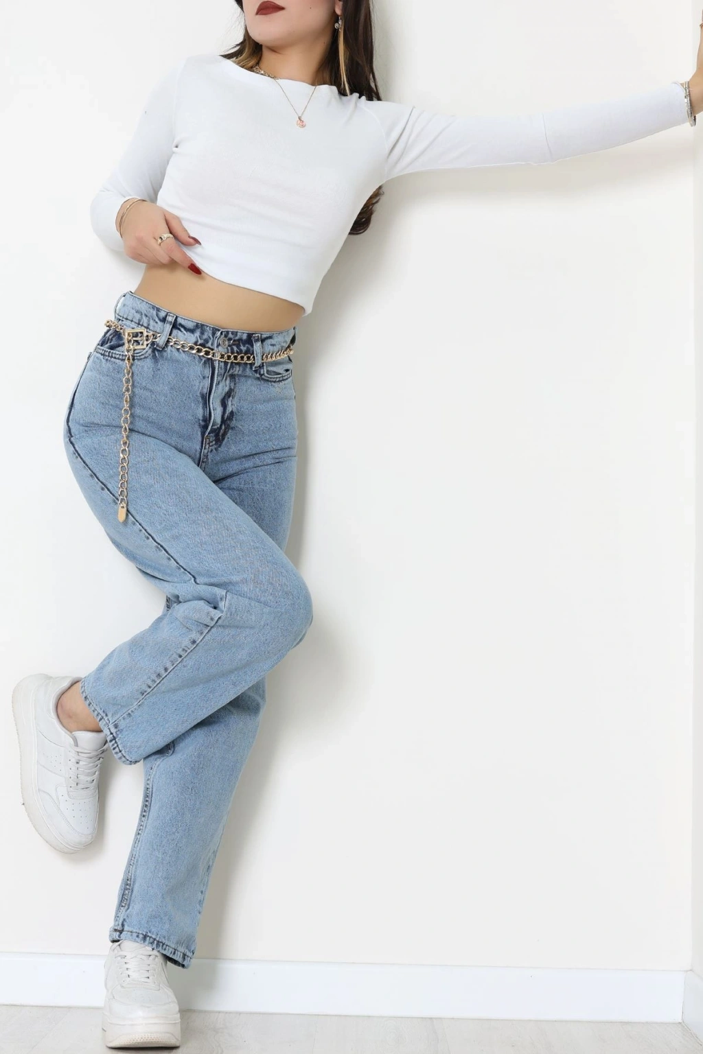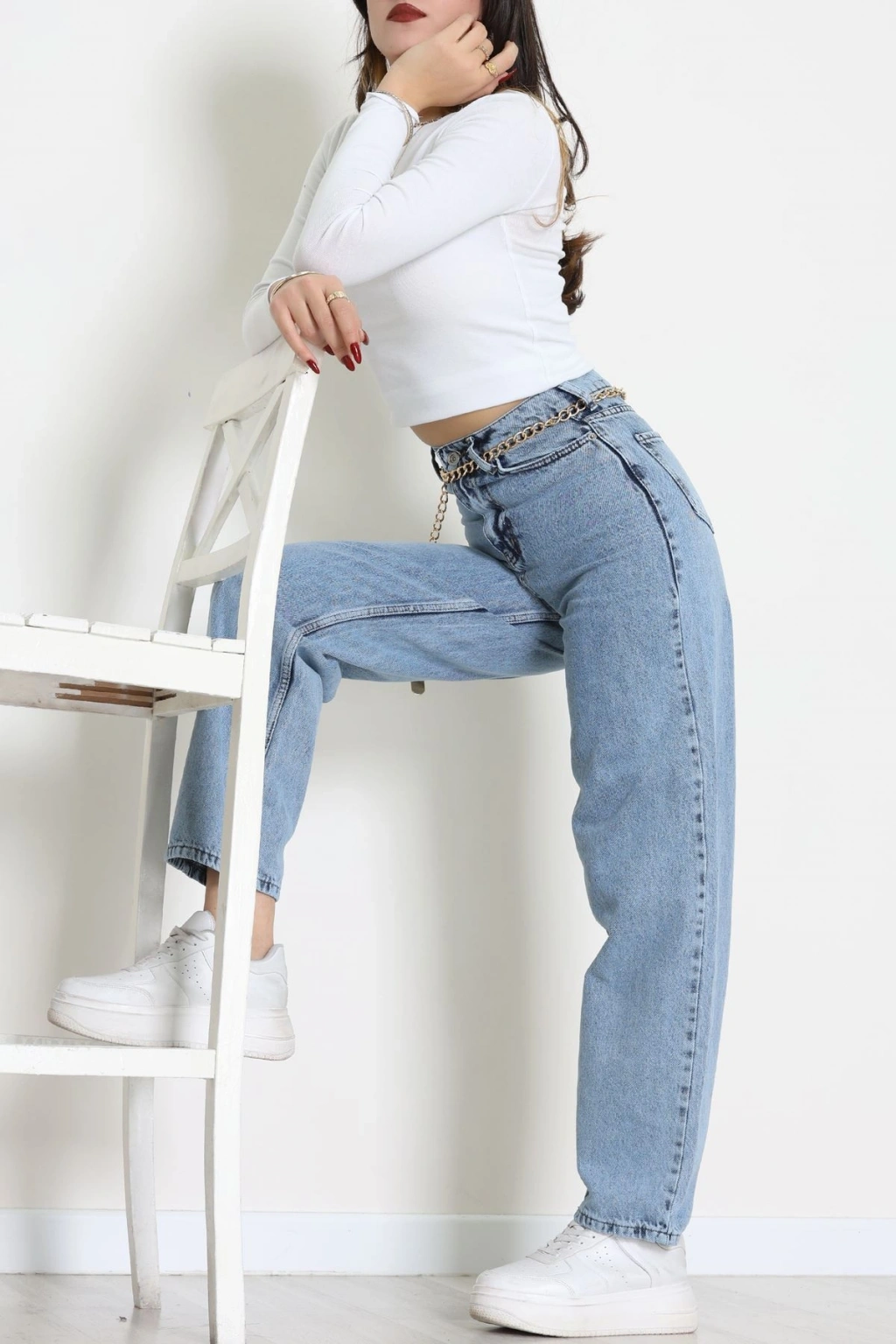 Arkası Tokalı Baggy Kot Pantolon Buzmavi - 31895.1606.