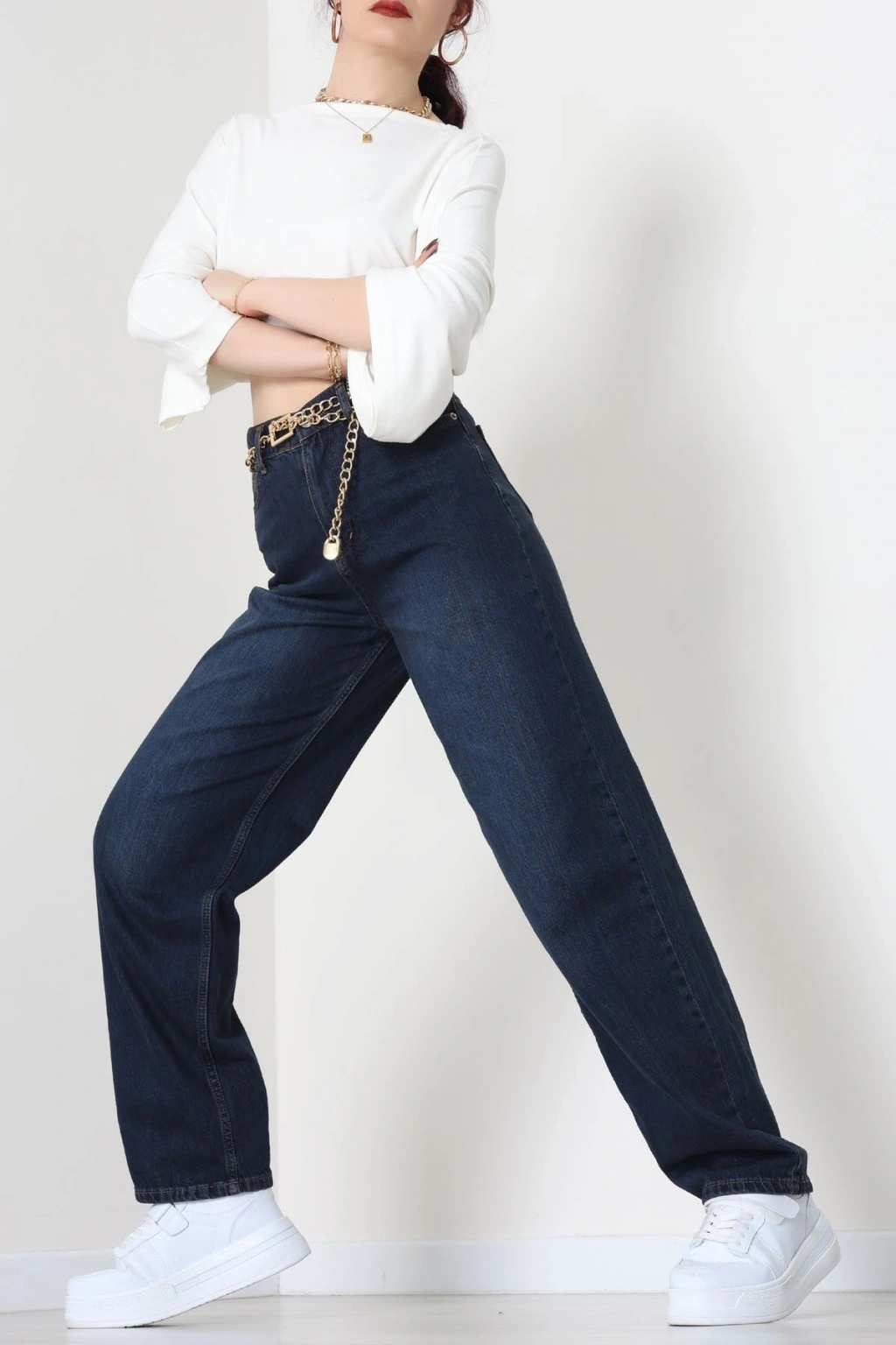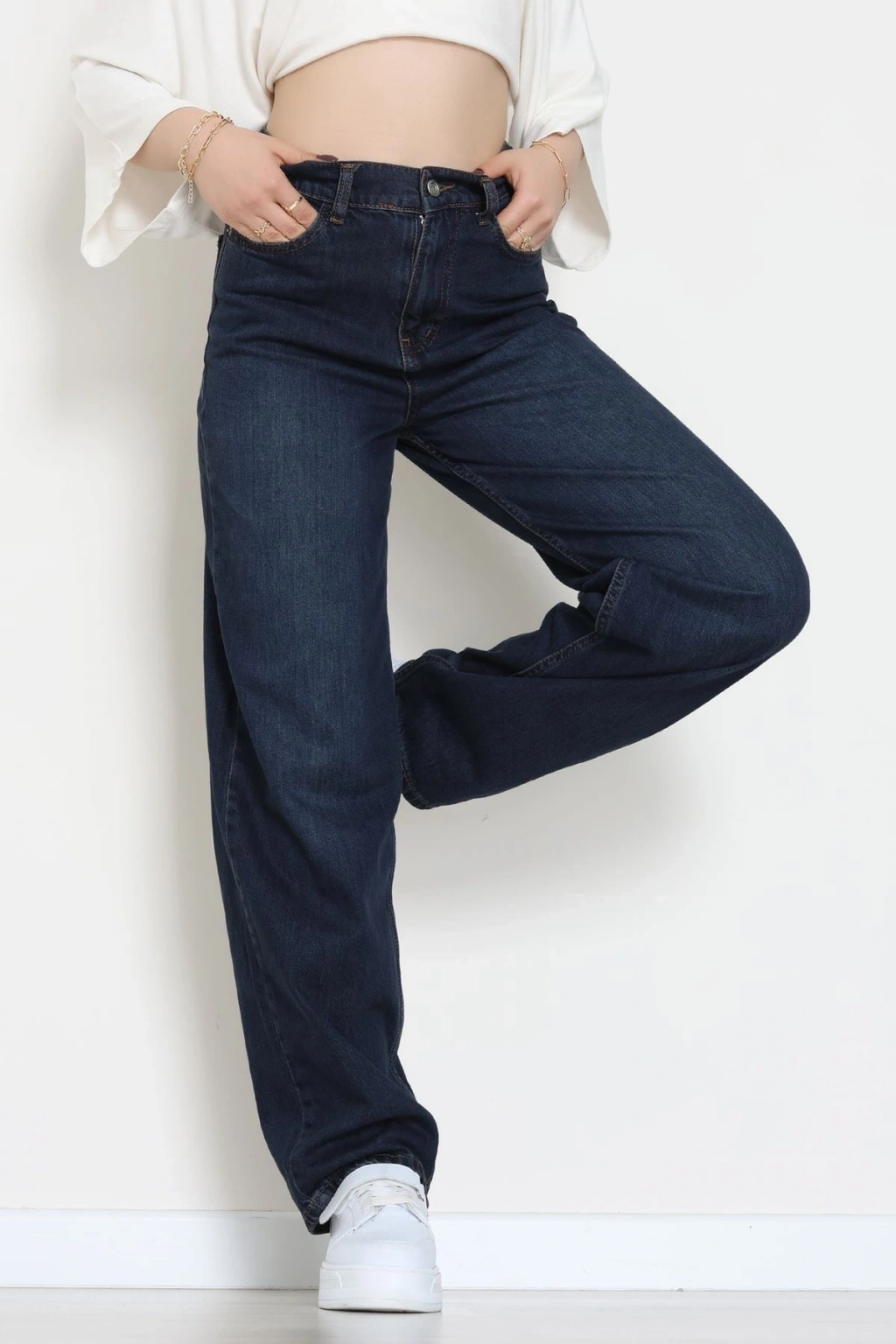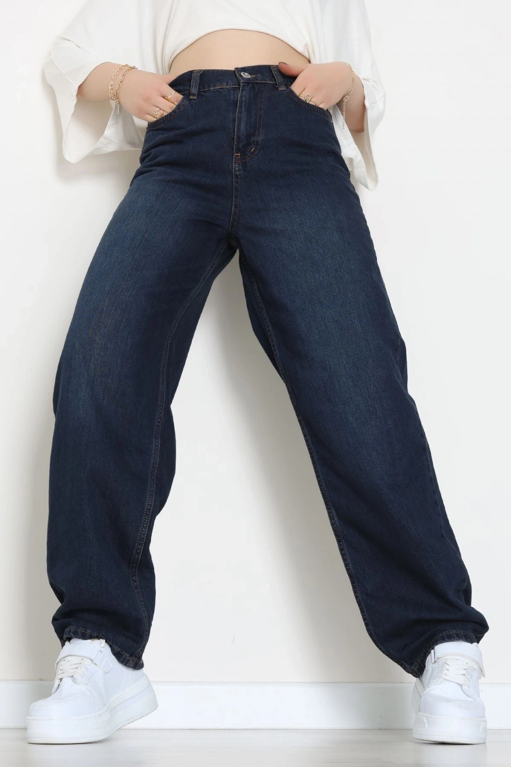 Arkası Tokalı Baggy Kot Pantolon Koyumavi - 31895.1606.