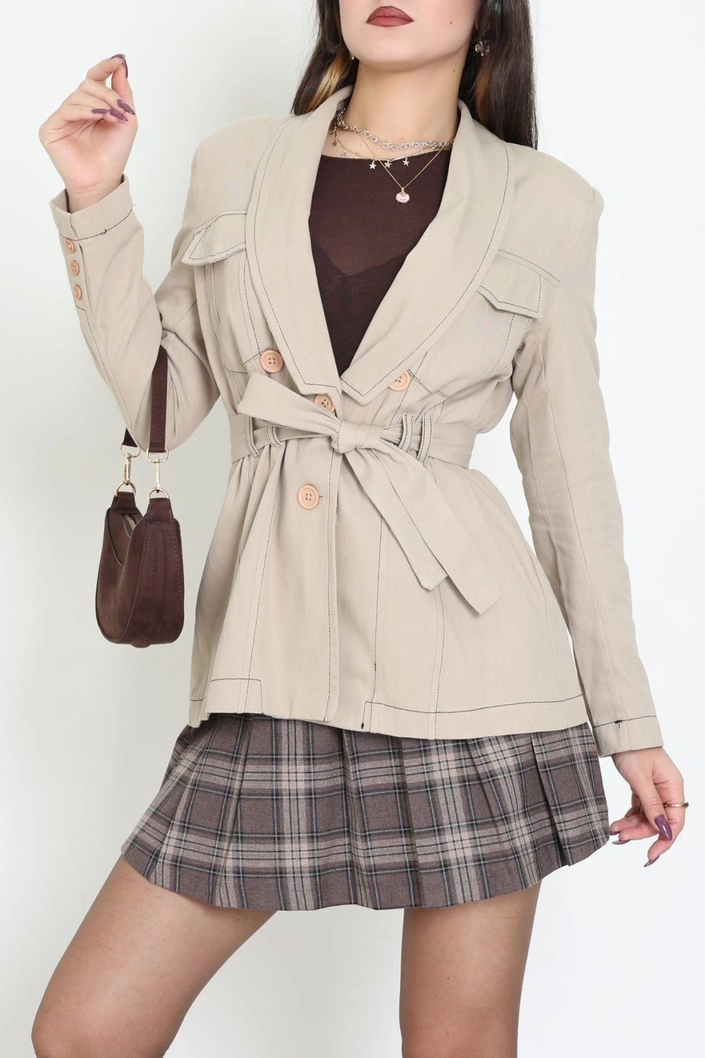 Bağlamalı Gabardin Ceket Bej - 8123.179.