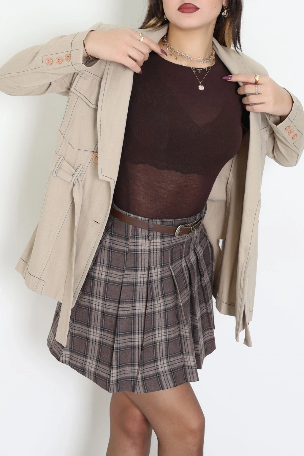 Kemerli Kürklü Yelek Bej - 8785.179.