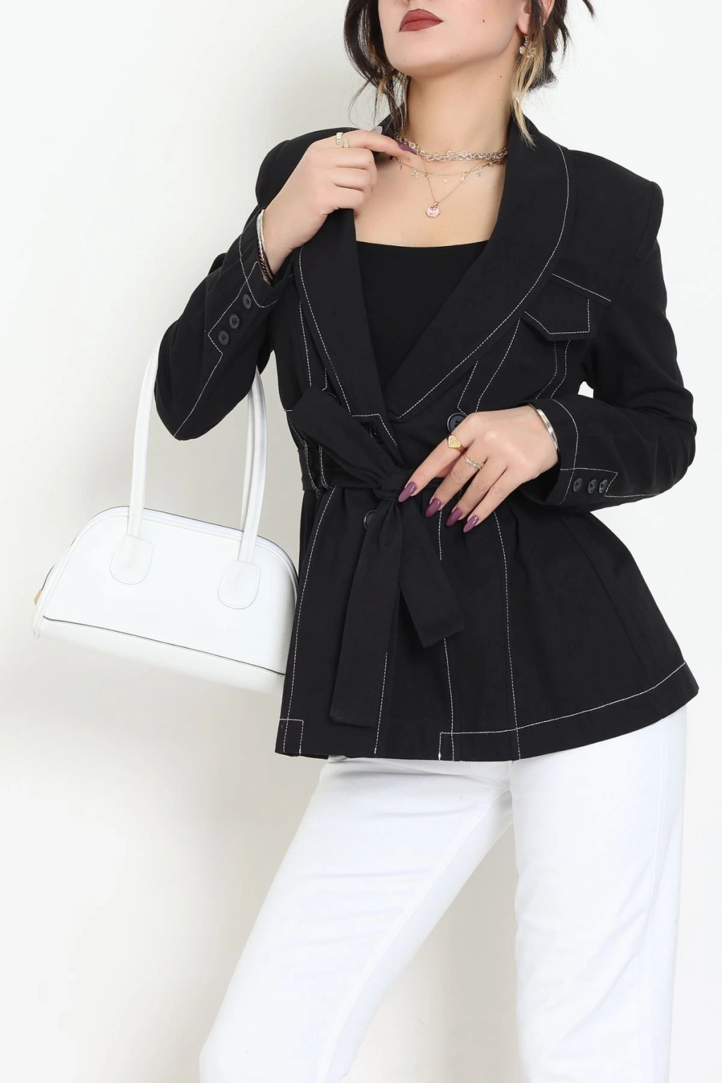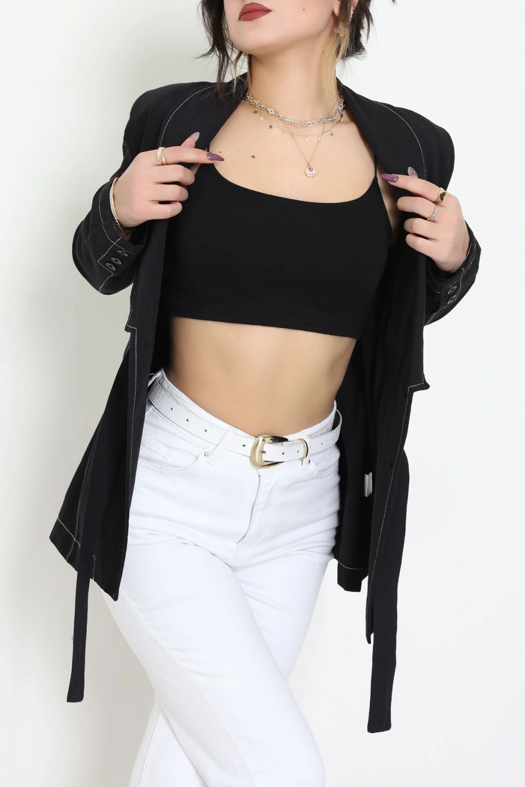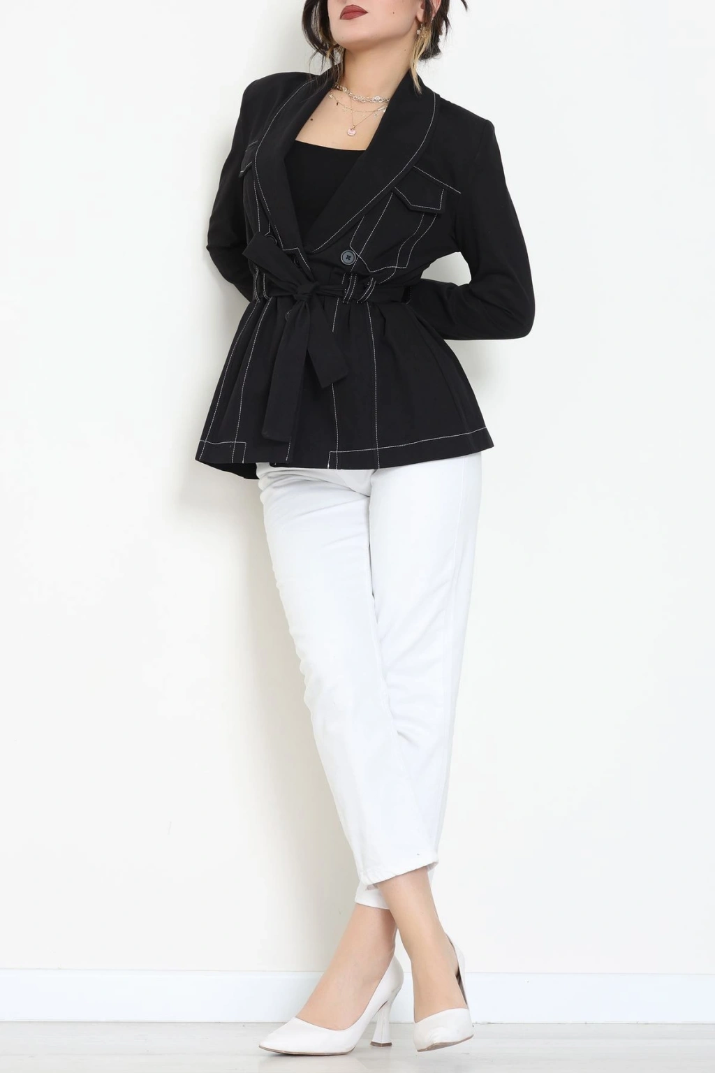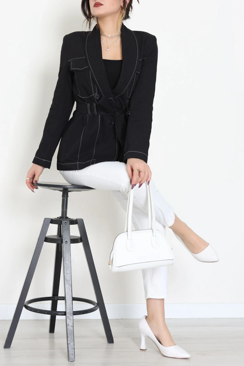 Bağlamalı Gabardin Ceket Siyah - 8123.179.