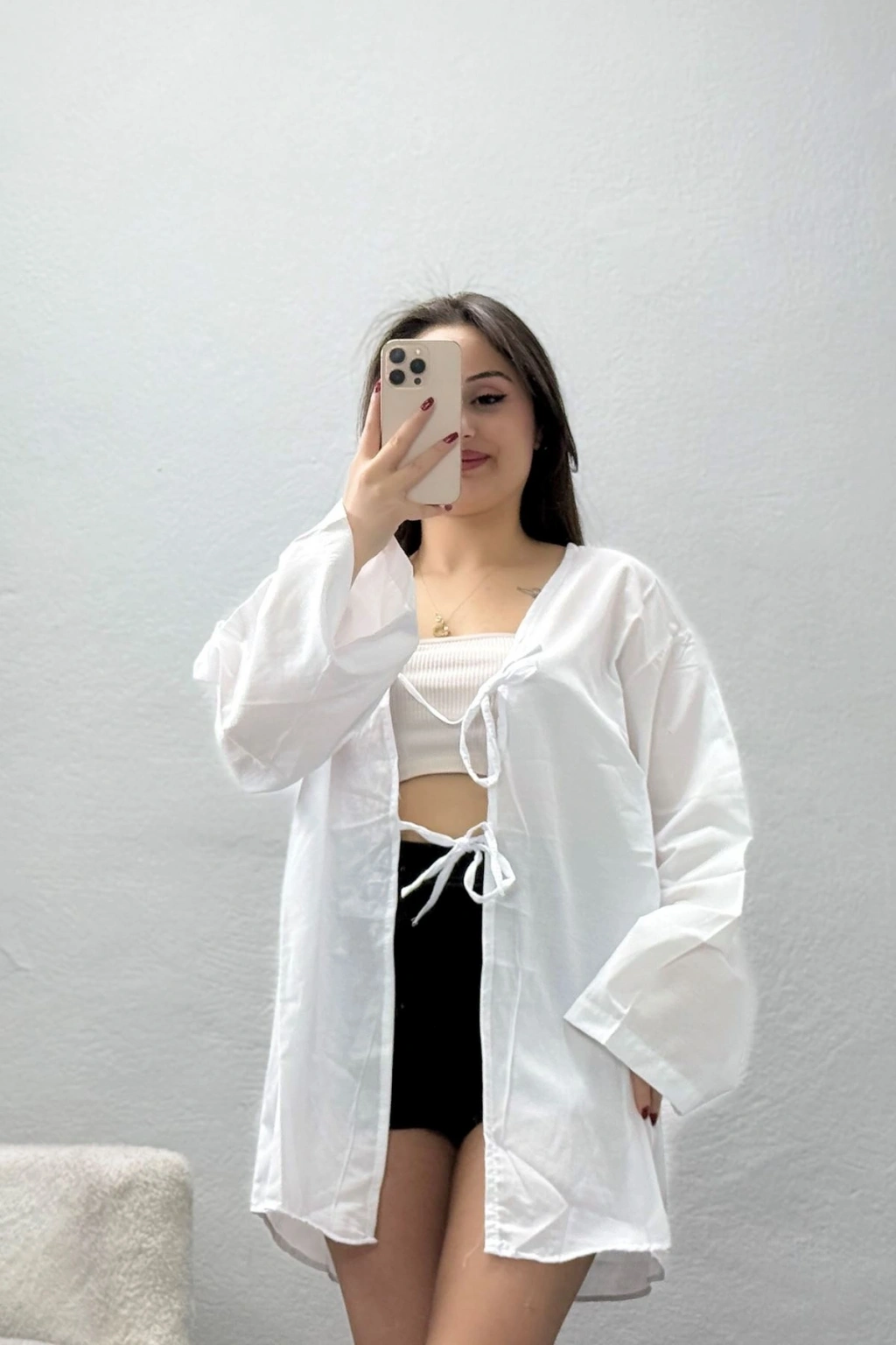 # Bağlamalı Terikoton Gömlek ## Şık Tasarım ve Rahat Kesim Hafif yapısı sayesinde terletmeyen bu **terikoton gömlek**, konforlu bir kullanım sunarken zarif duruşuyla dikkat çekiyor. Modelimiz, ince dokusuyla cildinizin nefes almasını sağlayarak en hareketli anlarda bile ferahlık hissi veriyor. Bu tasarım, iç göstermeyen kaliteli kumaş yapısı ve dökümlü kesimiyle her ortamda öne çıkıyor. **Salaş kalıp** sevenlerin tercihi olacak bu parça, modern çizgisiyle gün boyunca özgürce hareket etmenize olanak tanıyor. Ön kısmında yer alan zarif bağcık detayı ve ferah geniş kol yapısı, bu modele özgün bir karakter katıyor. Saf **beyaz gömlek** renginin duruluğu, terikotonun pürüzsüz dokusuyla birleşerek son derece temiz bir görünüm sergiliyor. Titizlikle hazırlanan dikişleri ve dayanıklı kumaş formu sayesinde yapısını uzun süre koruyan bir özelliğe sahiptir. Salaş terikoton gömlek arayanlar için ideal bir seçenek olan bu tasarım, bütçe dostu fiyatıyla kaliteli bir ekonomik seçenek sunuyor. Hemen sepete ekleyin.