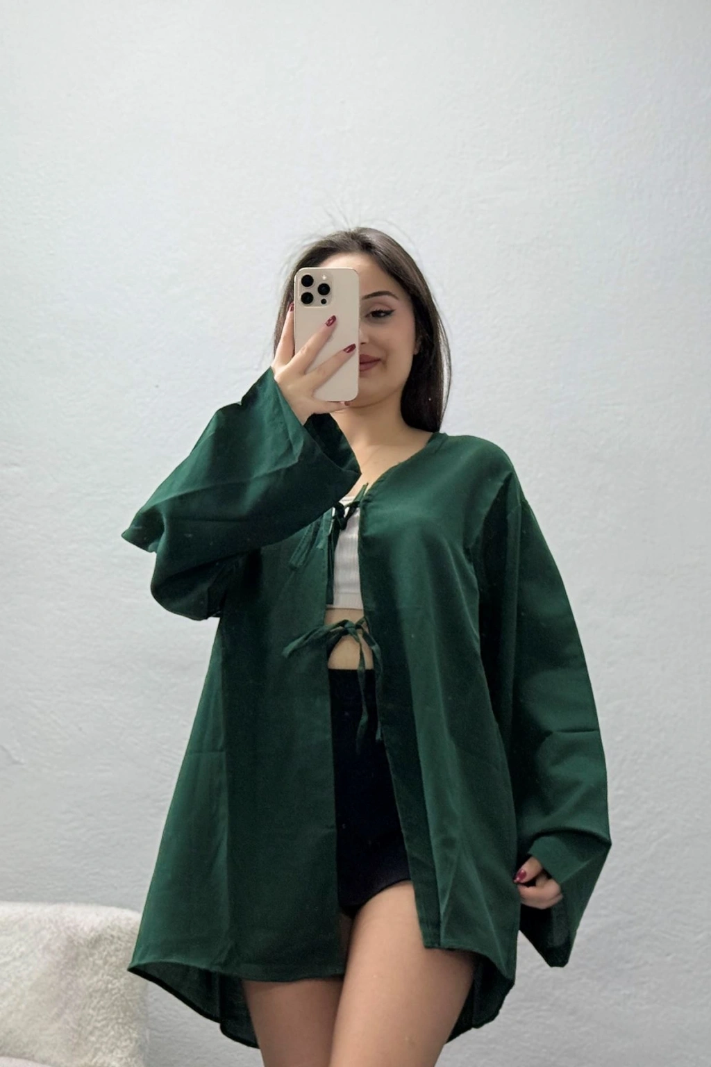 # Bağlamalı Terikoton Gömlek ## Salaş Kesim ve Konforlu Tasarım Konforlu ve şık bir görünüm sunan **bağlamalı terikoton gömlek** modeli, zengin zümrüt tonuyla dikkat çeken estetik bir tasarıma sahiptir. Terikoton kumaşın nefes alan yapısı sayesinde bu parça, cildinizi rahat ettirirken gün boyu ferah bir kullanım sağlar. Tasarımın ön kısmında yer alan **bağcıklı gömlek** detayları, modele hareketli ve modern bir hava katmaktadır. Göğüs kısmından aşağıya doğru inen dökümlü kesim, hareket özgürlüğünü kısıtlamadan zarif bir duruş sergilemenize olanak tanır. Bu model, bağlamalı terikoton gömlek arayanlar için her mevsim tercih edilebilecek nitelikli bir seçenek sunar. Salaş kalıp formuyla vücut hatlarını yumuşatan bu tasarım, geniş kol kesimiyle modern bir silüet oluşturur. Ürünün yakasız V kesimi boyun bölgesine ferahlık kazandırırken, **zümrüt yeşili gömlek** renginin derinliğini ön plana çıkarır. Kırışıklığa karşı dirençli olan dokusu, pratik kullanımı destekleyerek bakım kolaylığı sağlar. Likrasız yapısına rağmen sunduğu geniş kesim avantajı, günlük tempoda kısıtlanmadan hareket etmeye yardımcı olur. Kaliteli dokusu ve dikkat çeken rengiyle **salaş kalıp gömlek** tasarımı, bütçe dostu ve ekonomik bir seçenek olarak öne çıkar. Satın almak için sepete ekleyin.