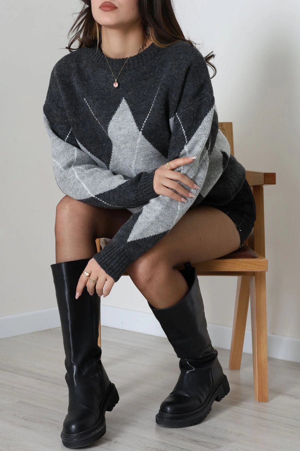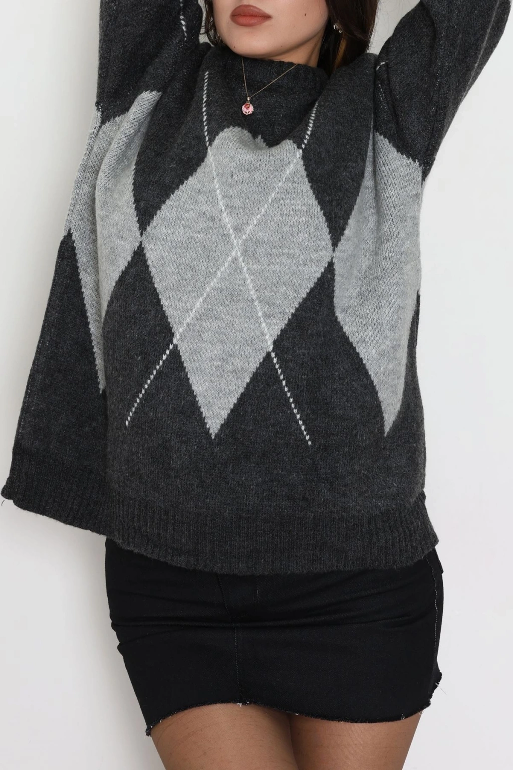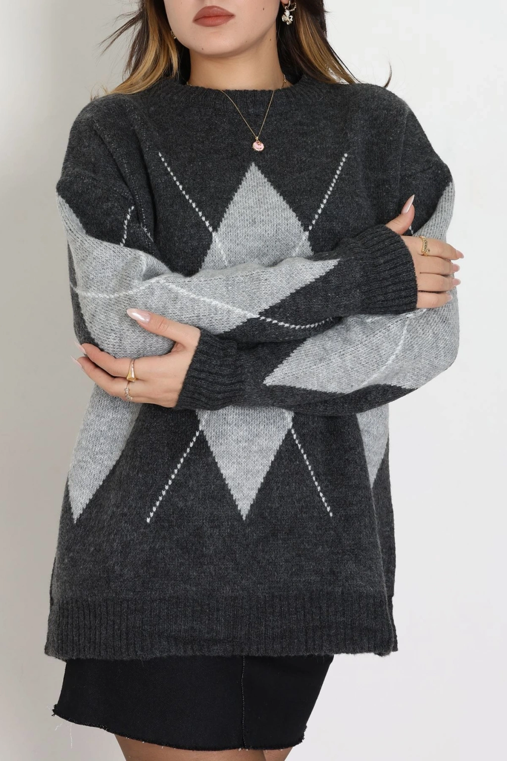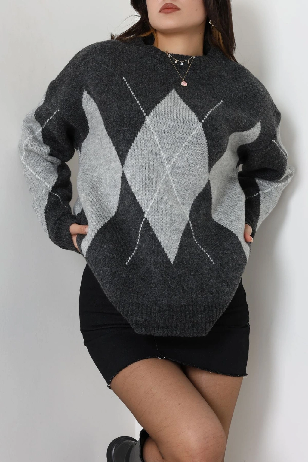 Baklava Dilimli Triko Kazak Antrasitgri - 51264.1918.