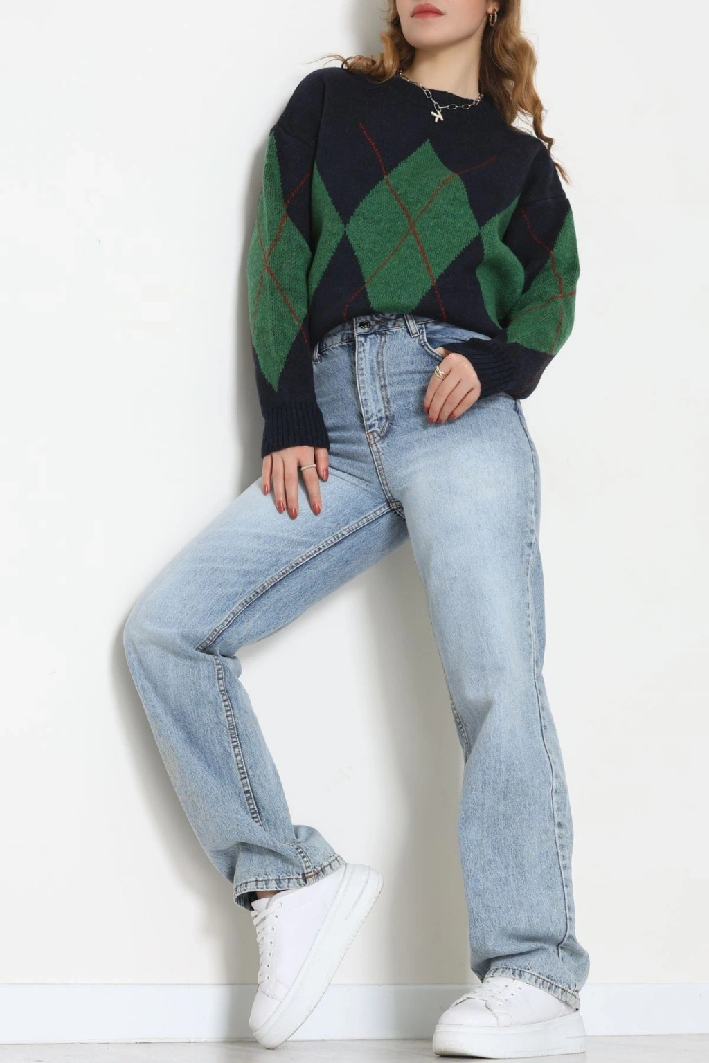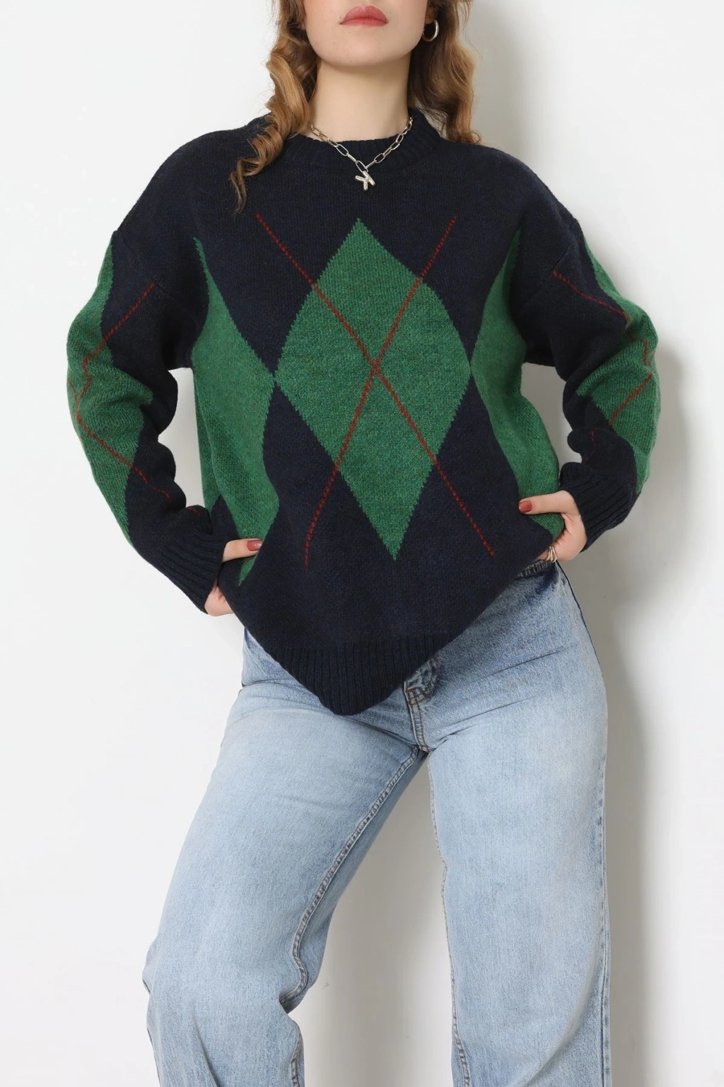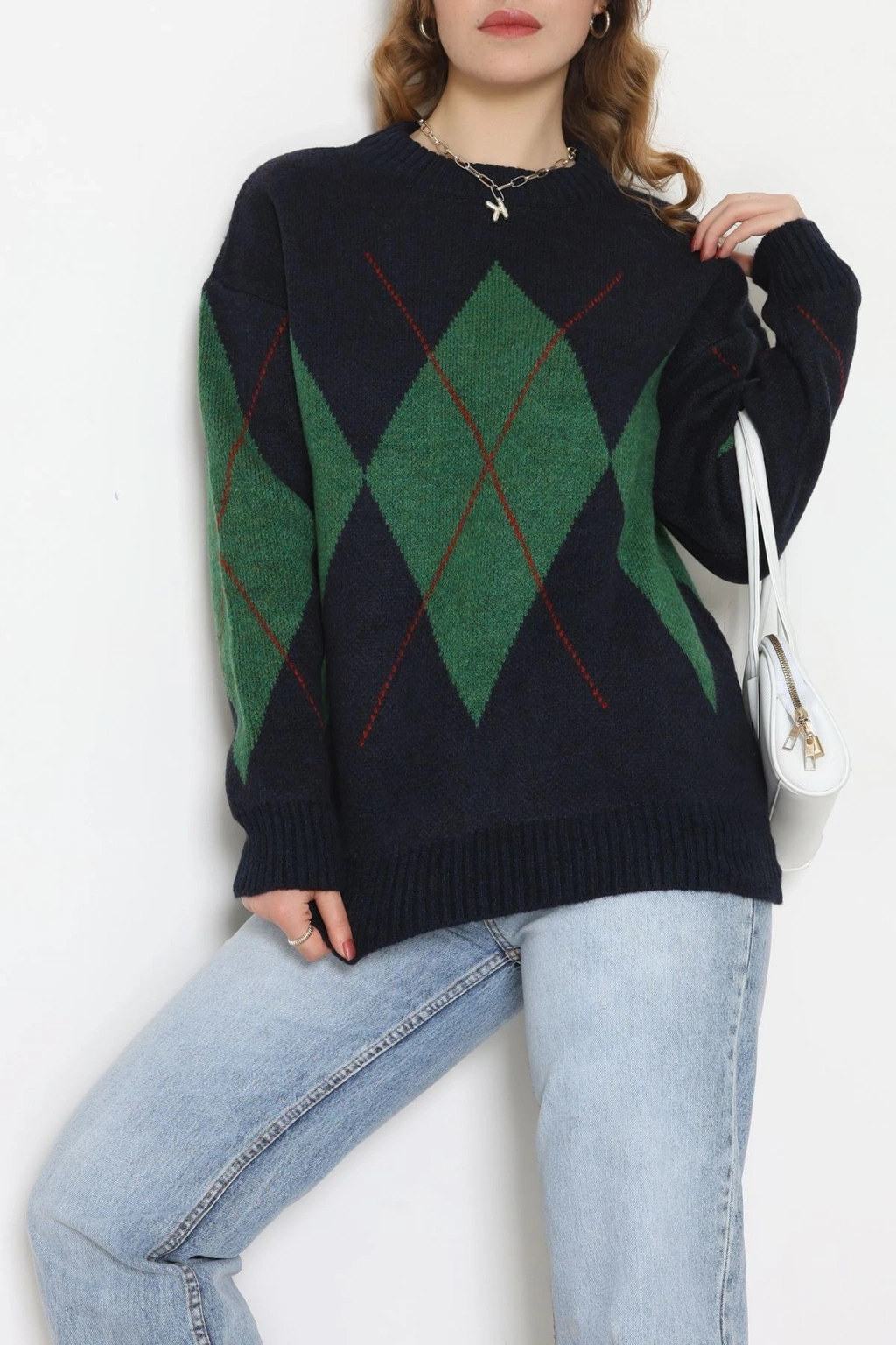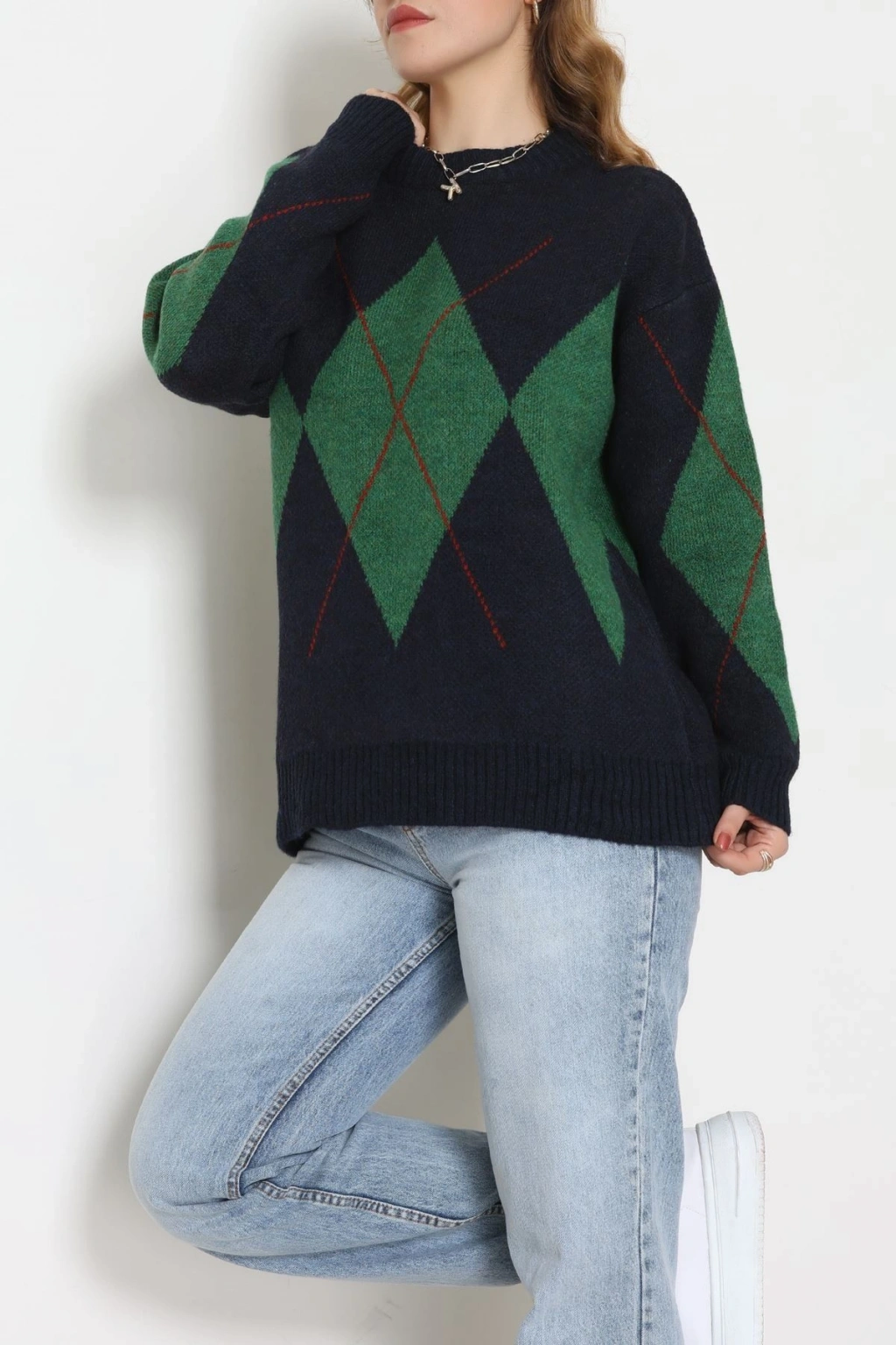 Baklava Dilimli Triko Kazak Lacivertyeşil - 51264.1918.