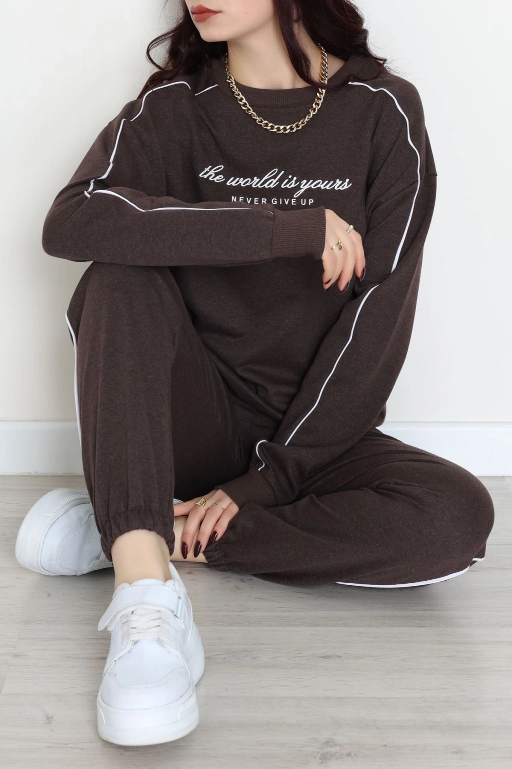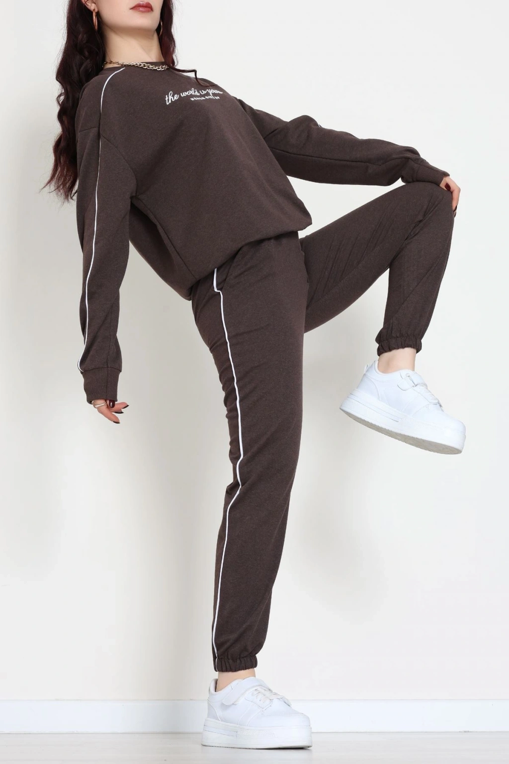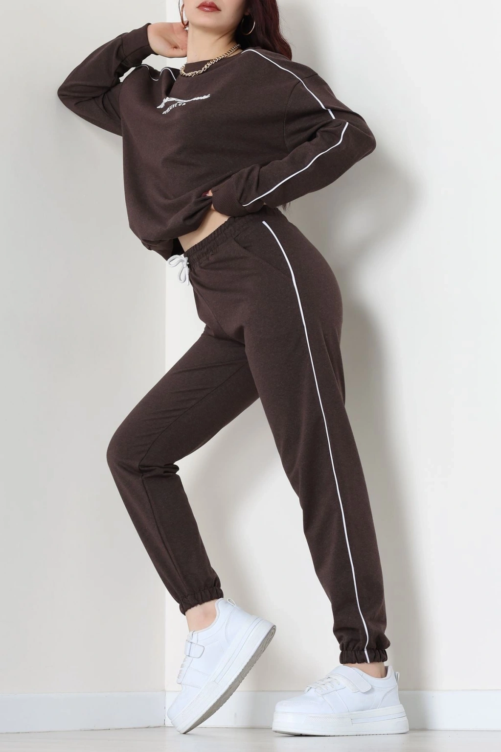 Üç İplik Crop Eşofman Takımı Kahve - 70778.1878.