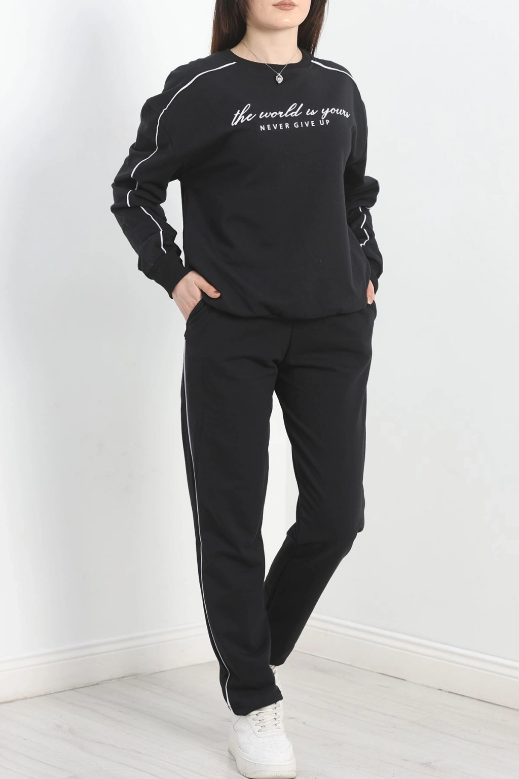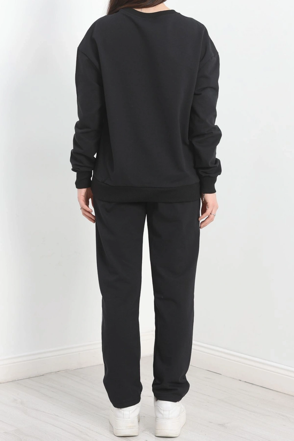 Garnili Fermuarlı 2 İplik Eşofman Takımı Siyah - 50789.1857.