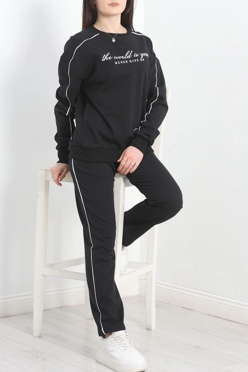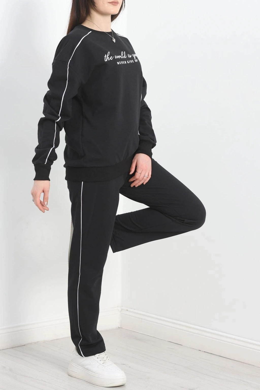 Baskılı Biyeli Eşofman Takımı Siyahbeyaz - 20075.1857.