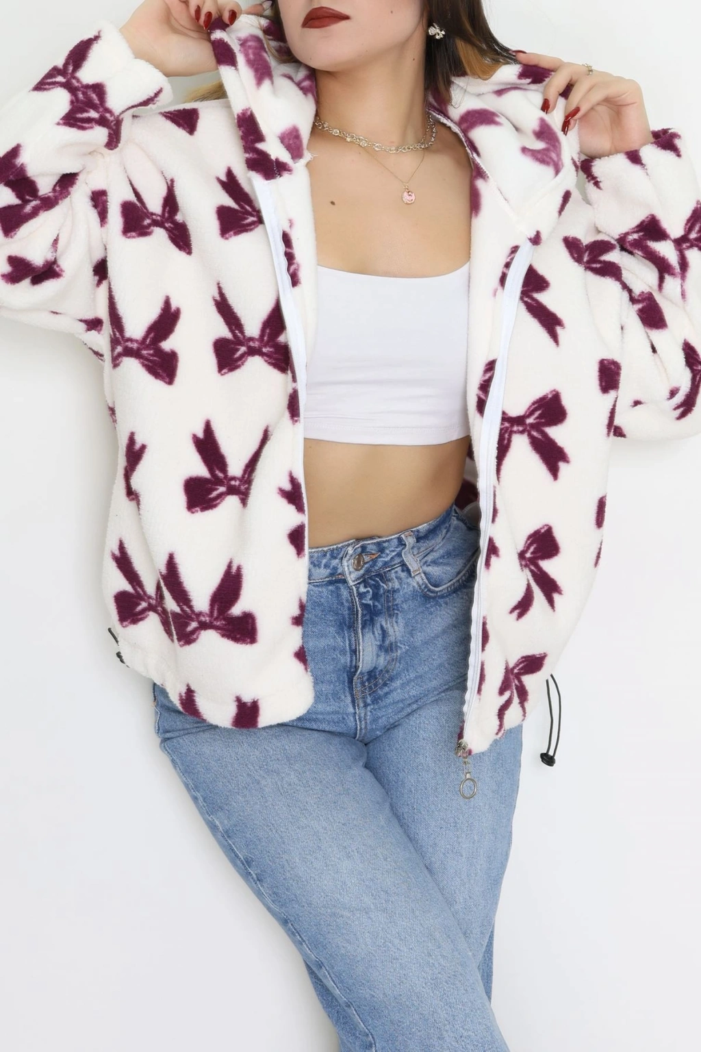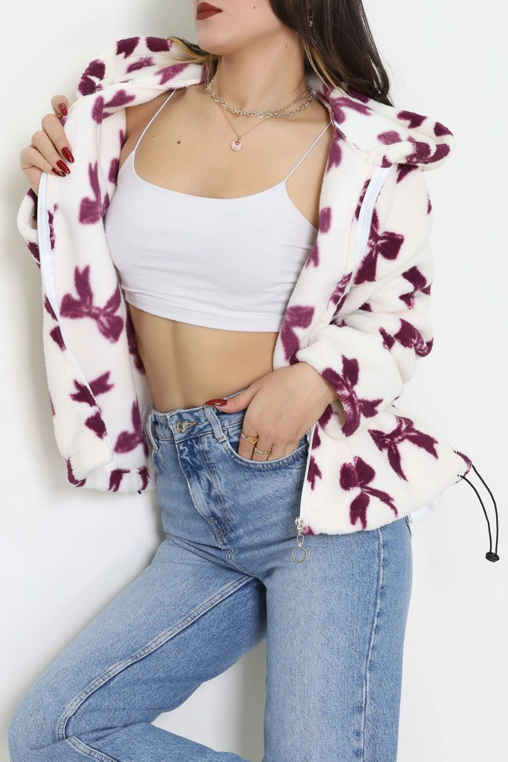 Baskılı Kapşonlu Polar Ceket Ekrumürdüm - 31711.1247.