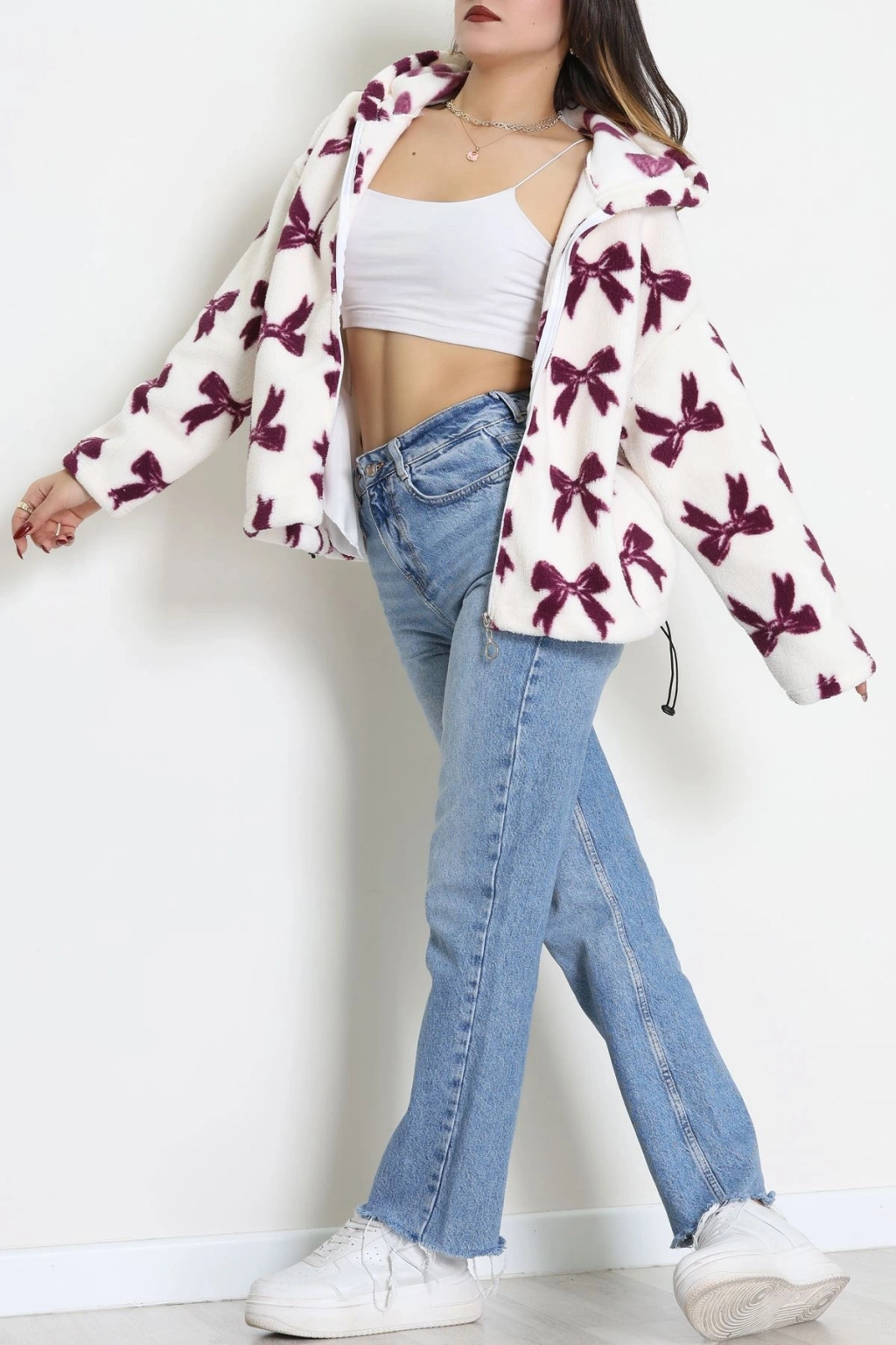 Desenli Fermuarlı Ceket Beyazleo - 8769.179.
