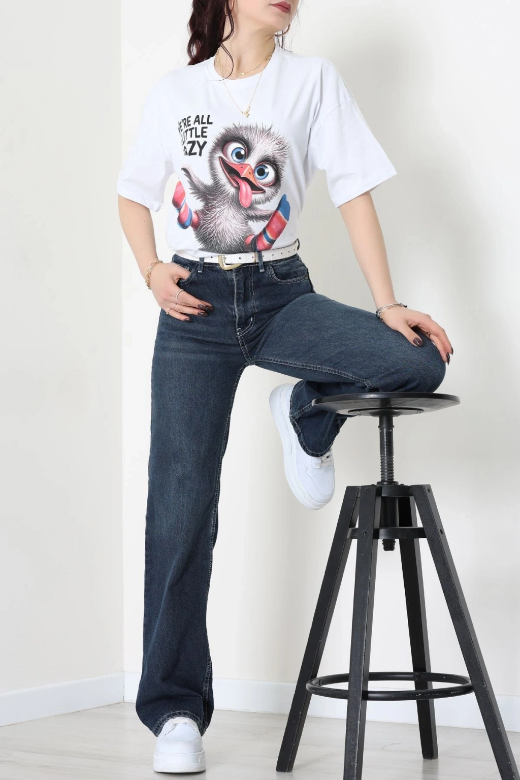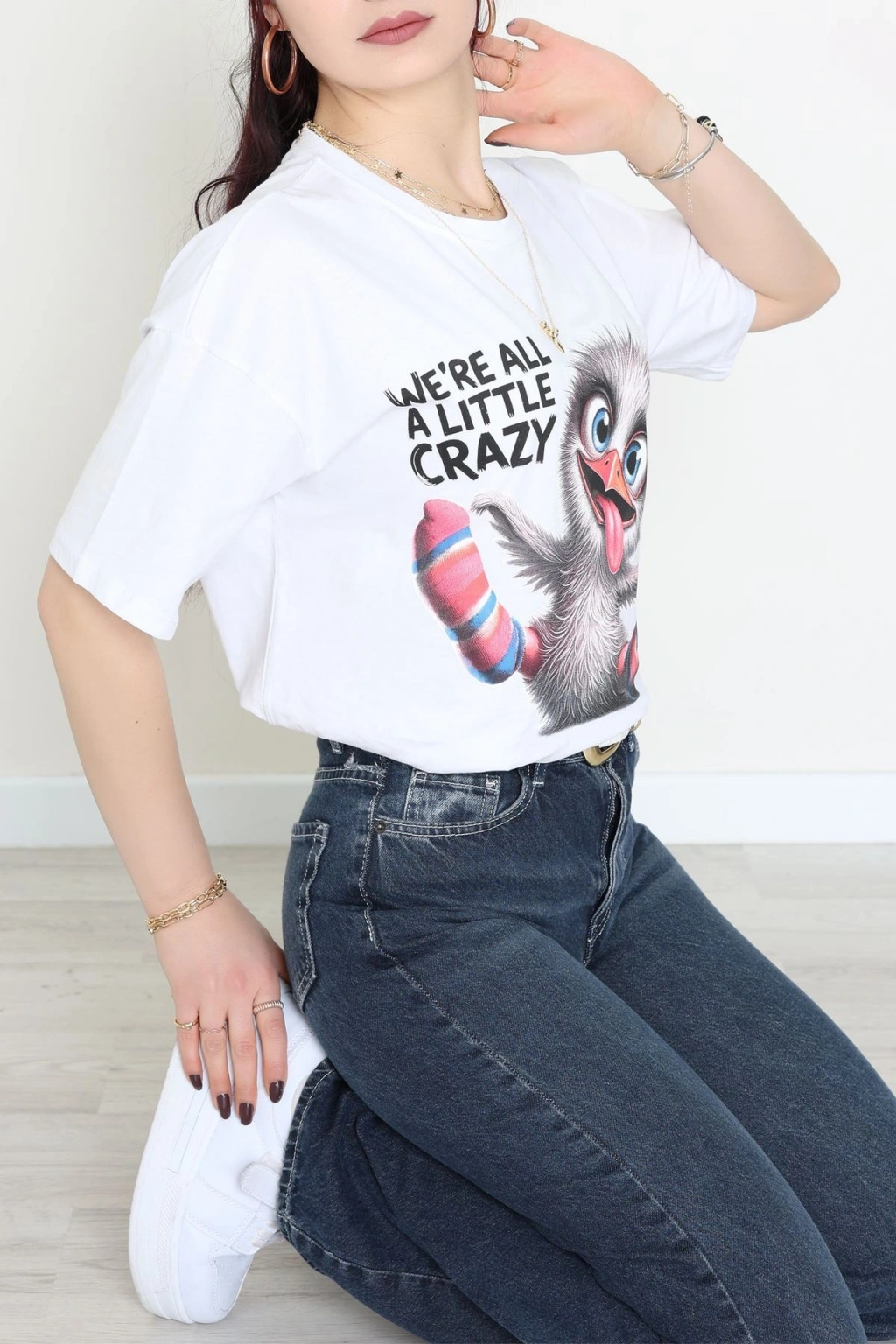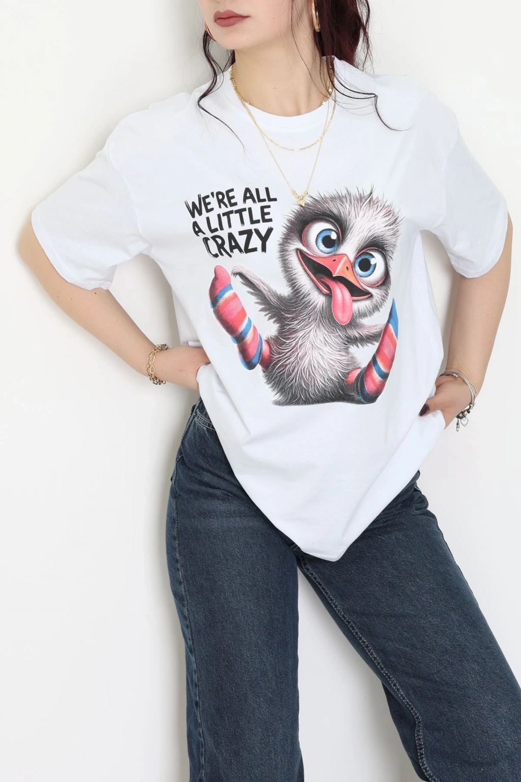 Baskılı Kompakt Penye Tişört Beyazgri - 55044.1872.