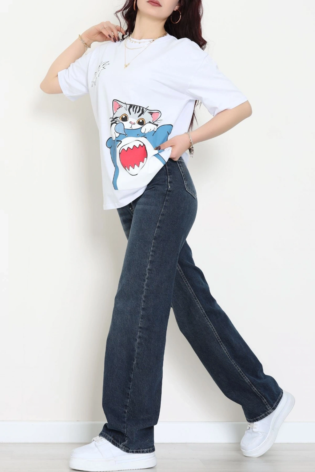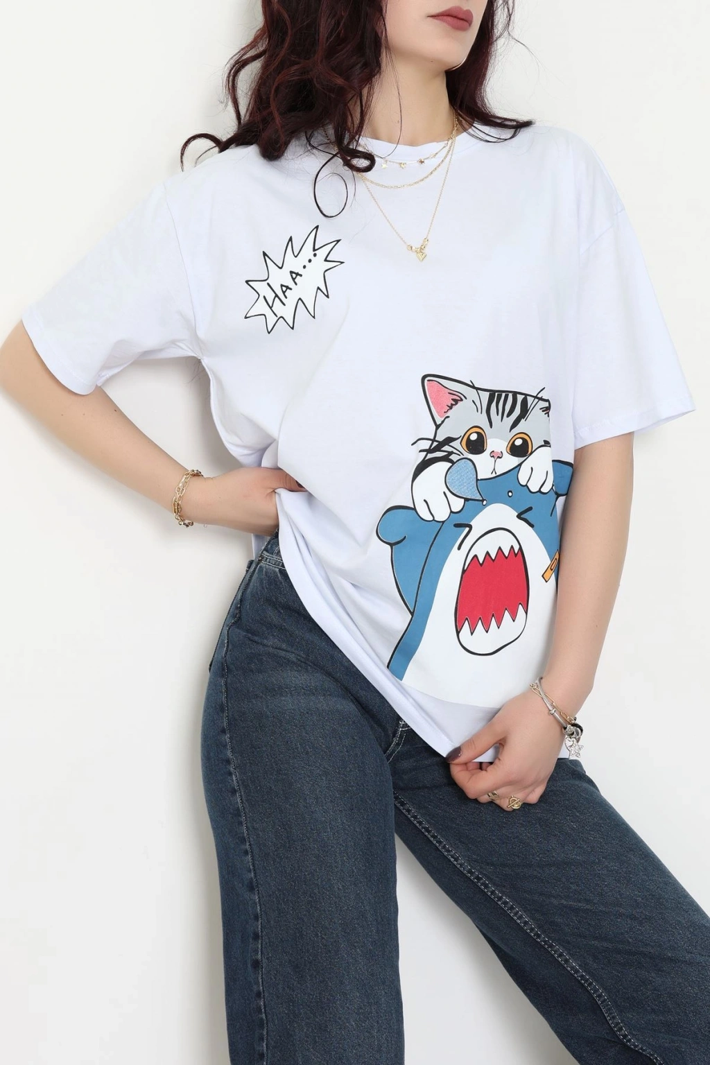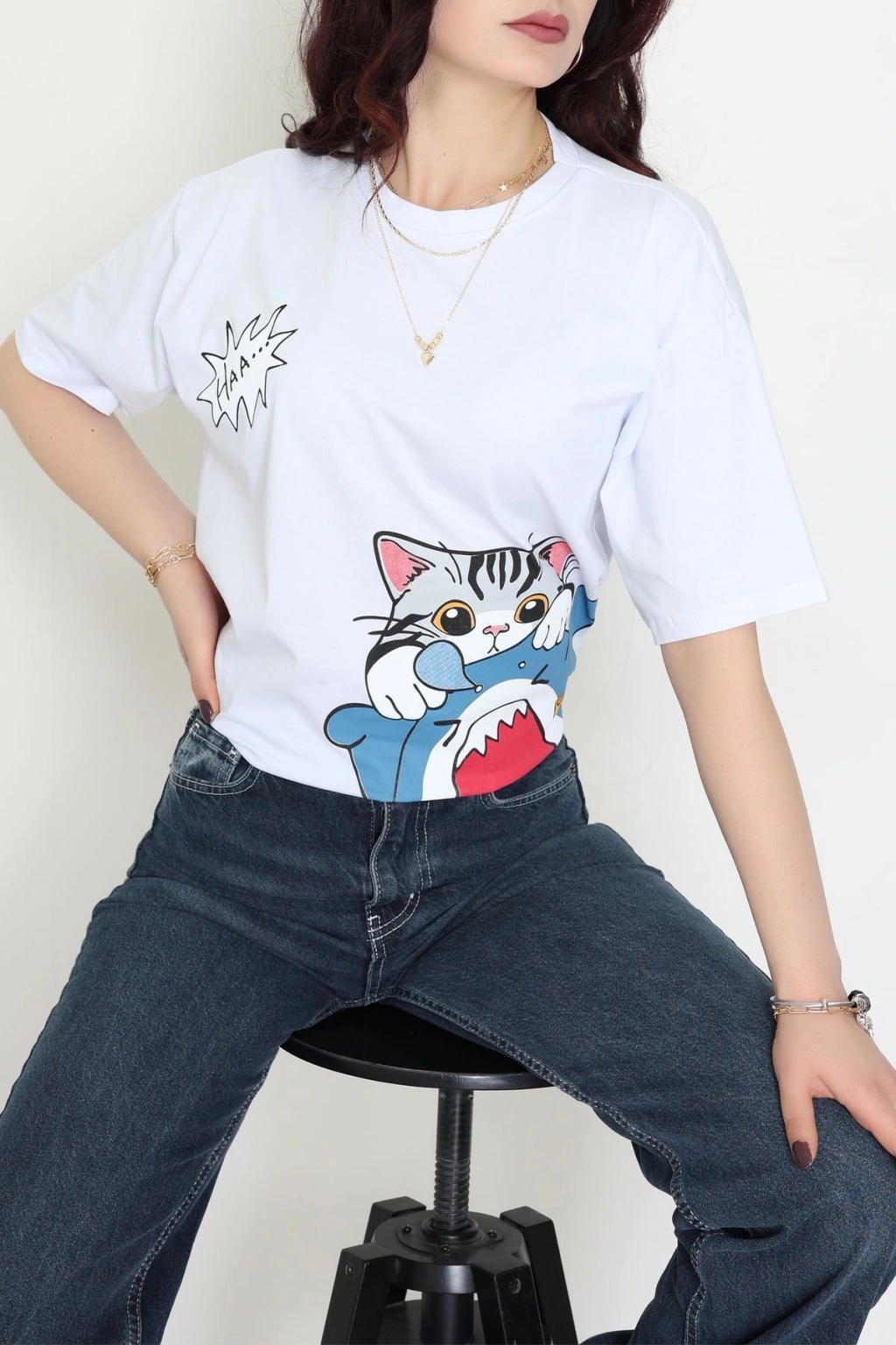 Baskılı Kompakt Penye Tişört Beyazgri1 - 55044.1872.