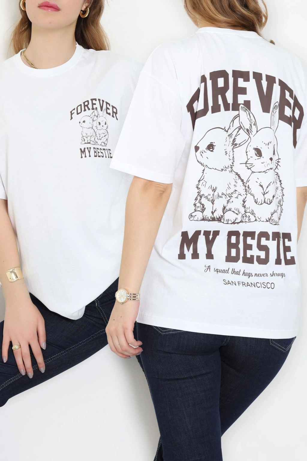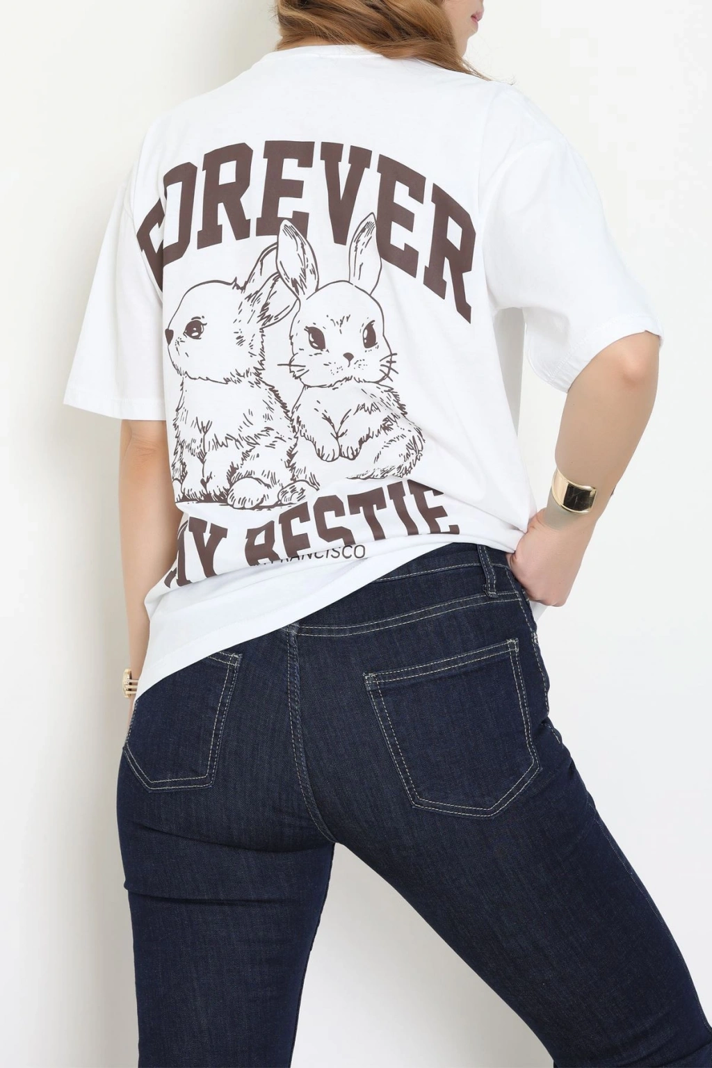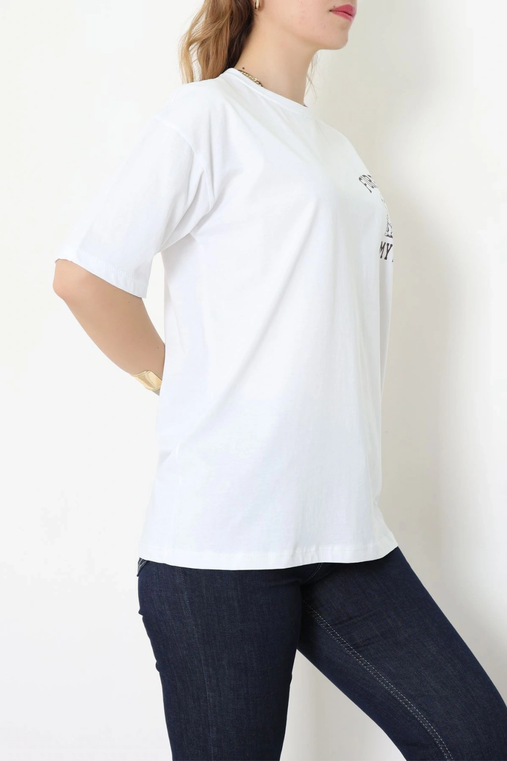 Baskılı Kompakt Penye Tişört Beyazkahve - 55044.1872.