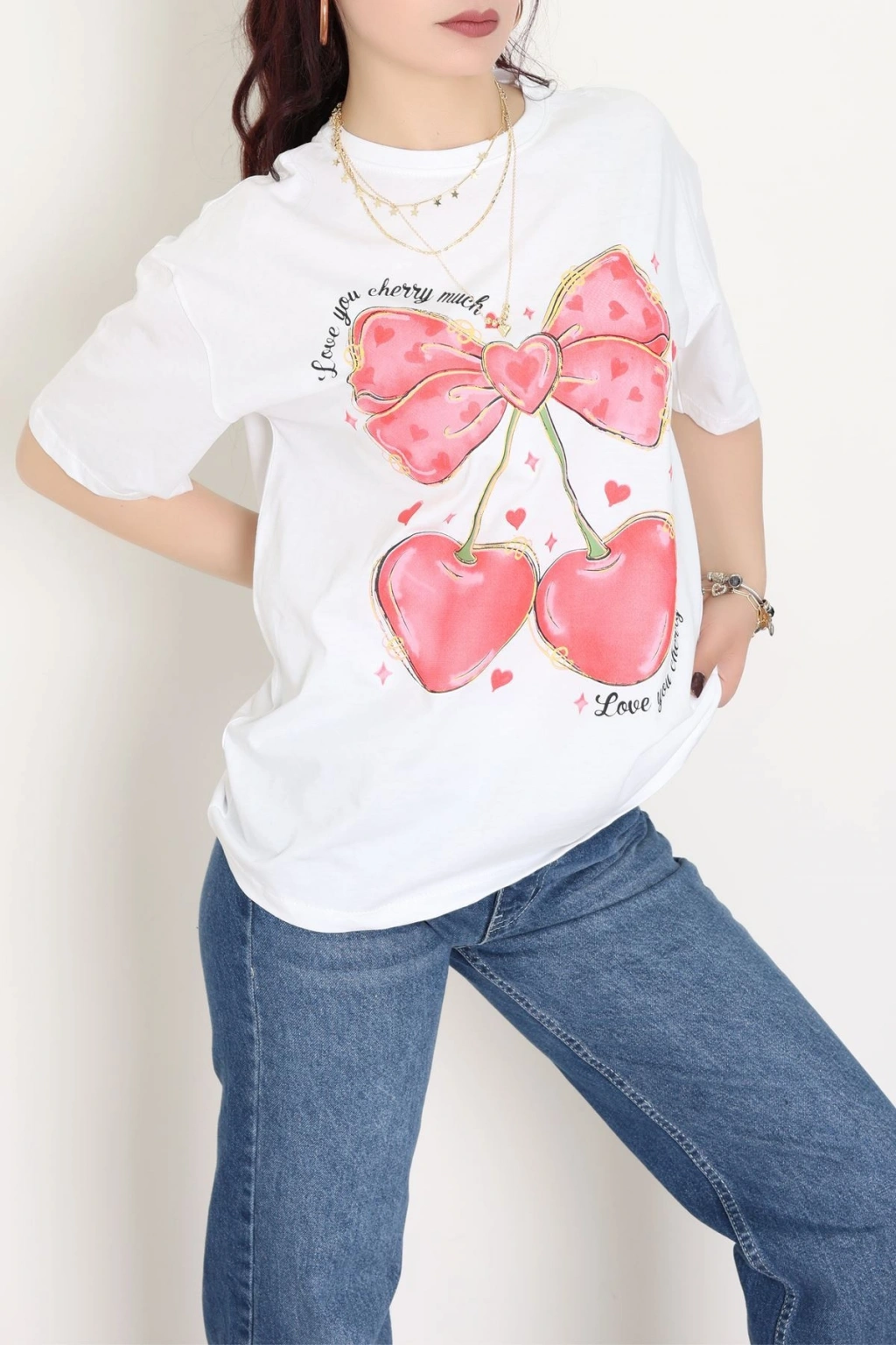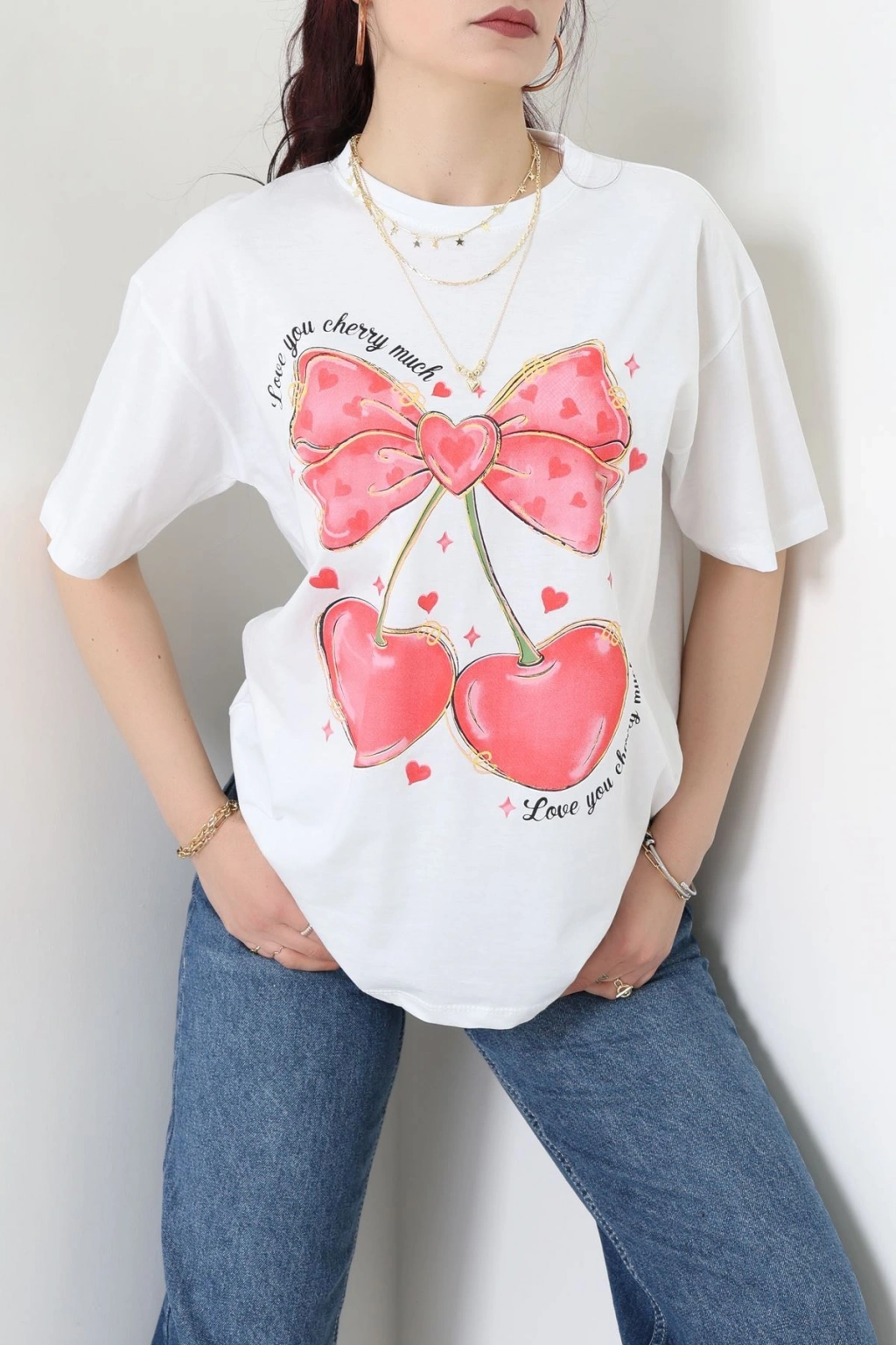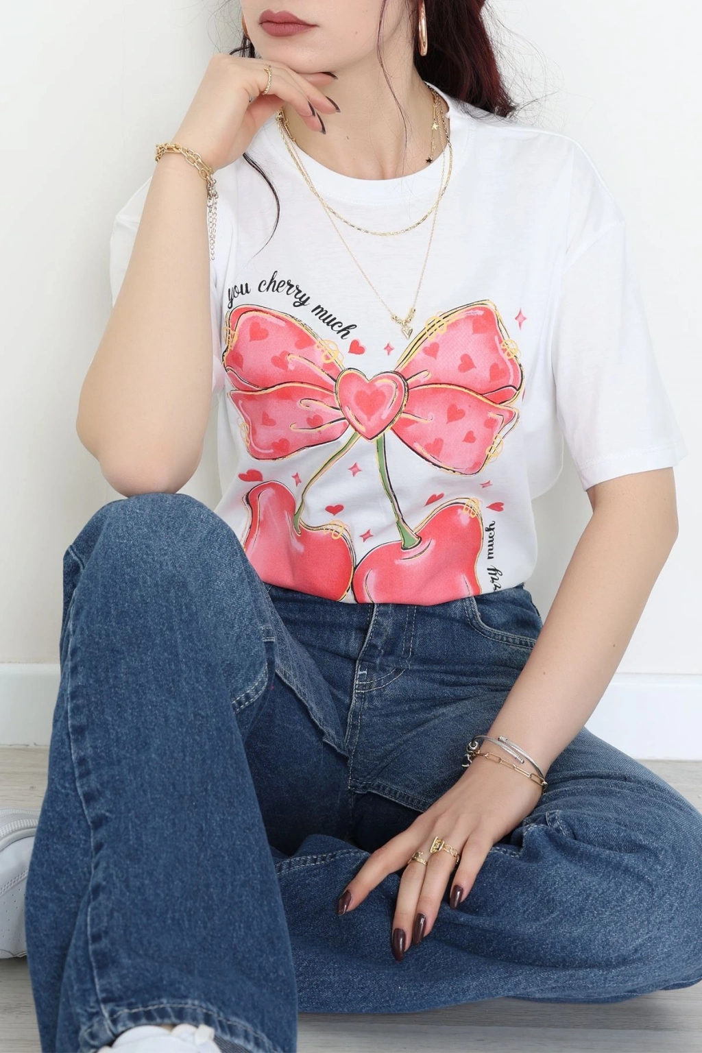 Baskılı Kompakt Penye Tişört Beyazkırmızı - 55044.1872.