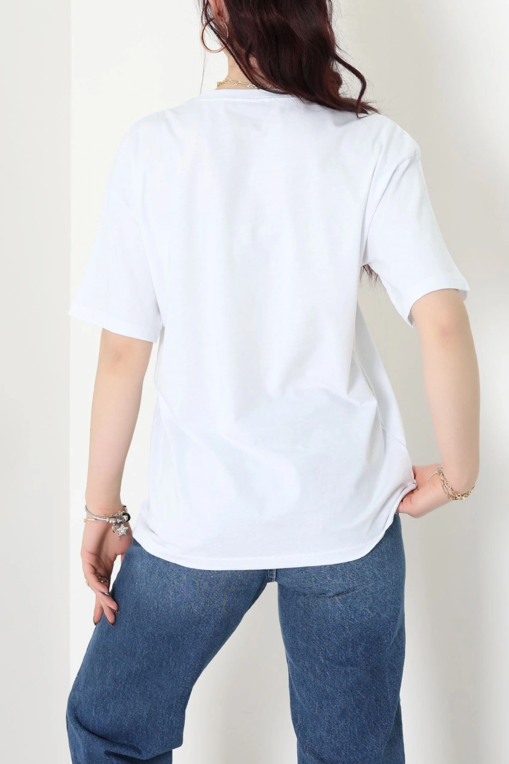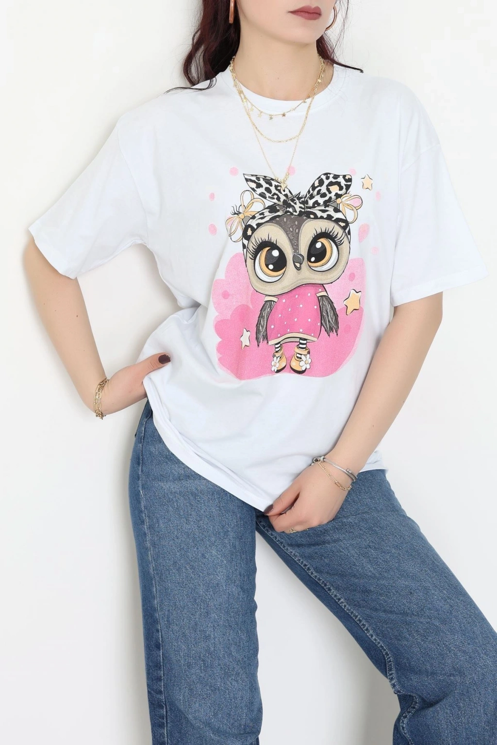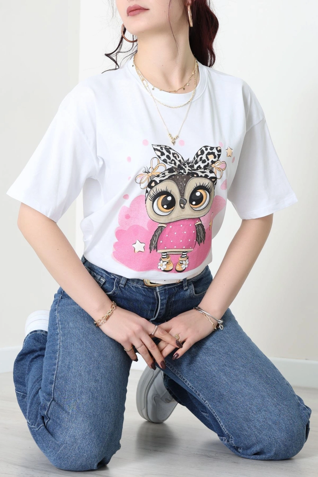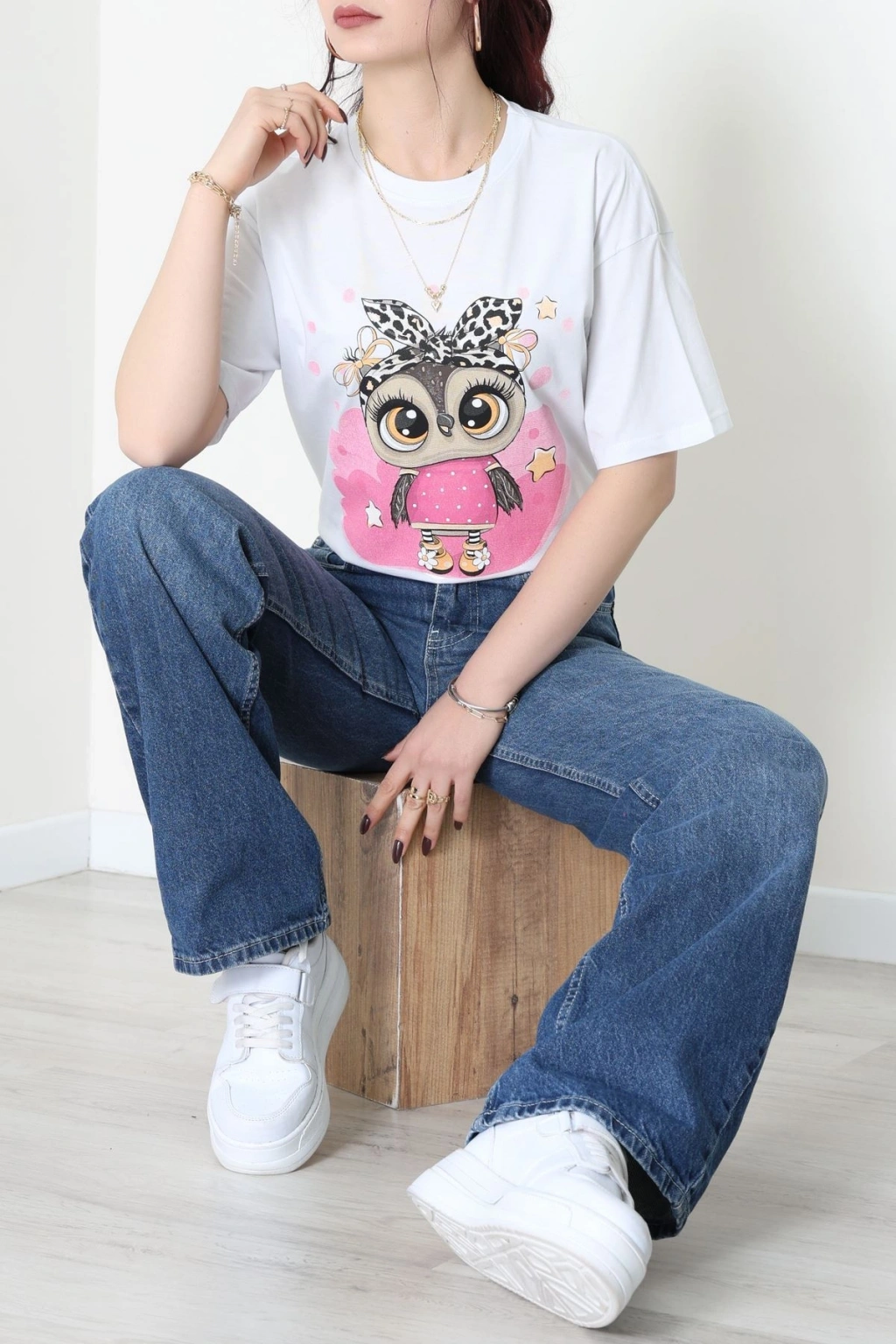 Baskılı Kompakt Penye Tişört Beyazleopar - 55044.1872.