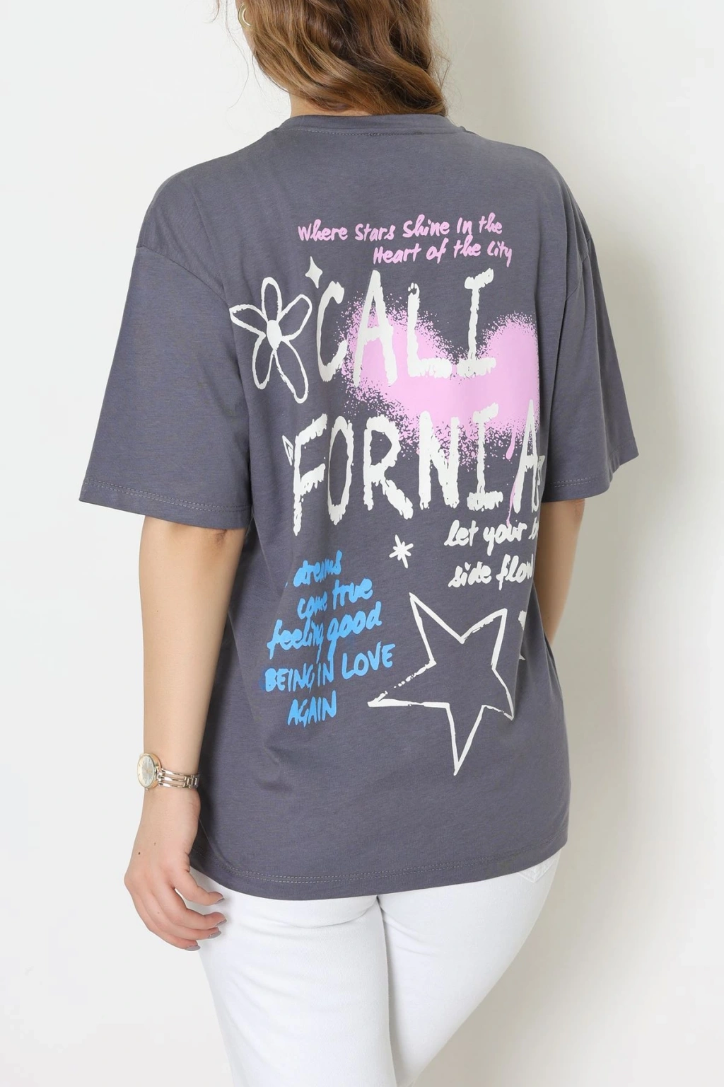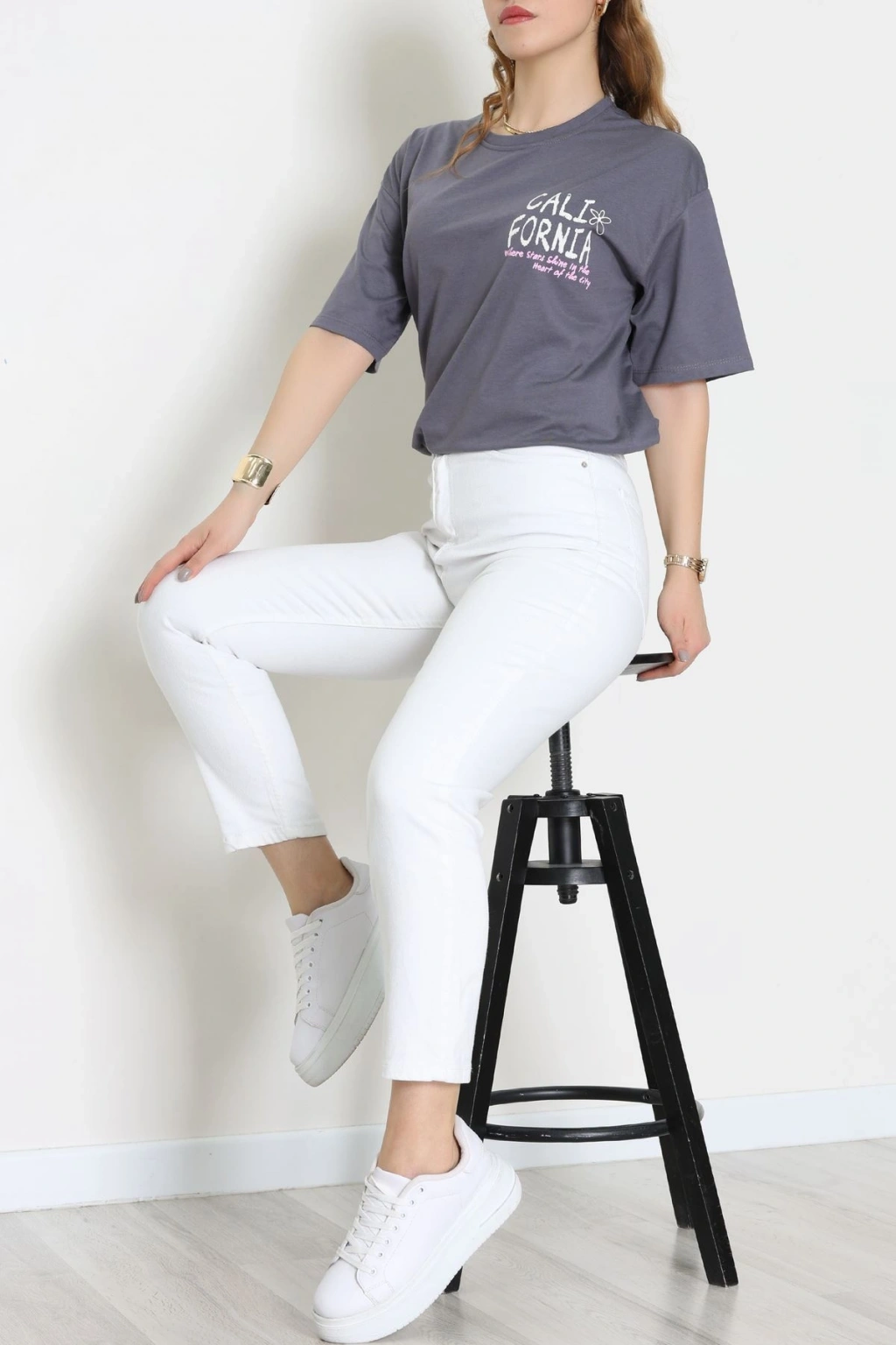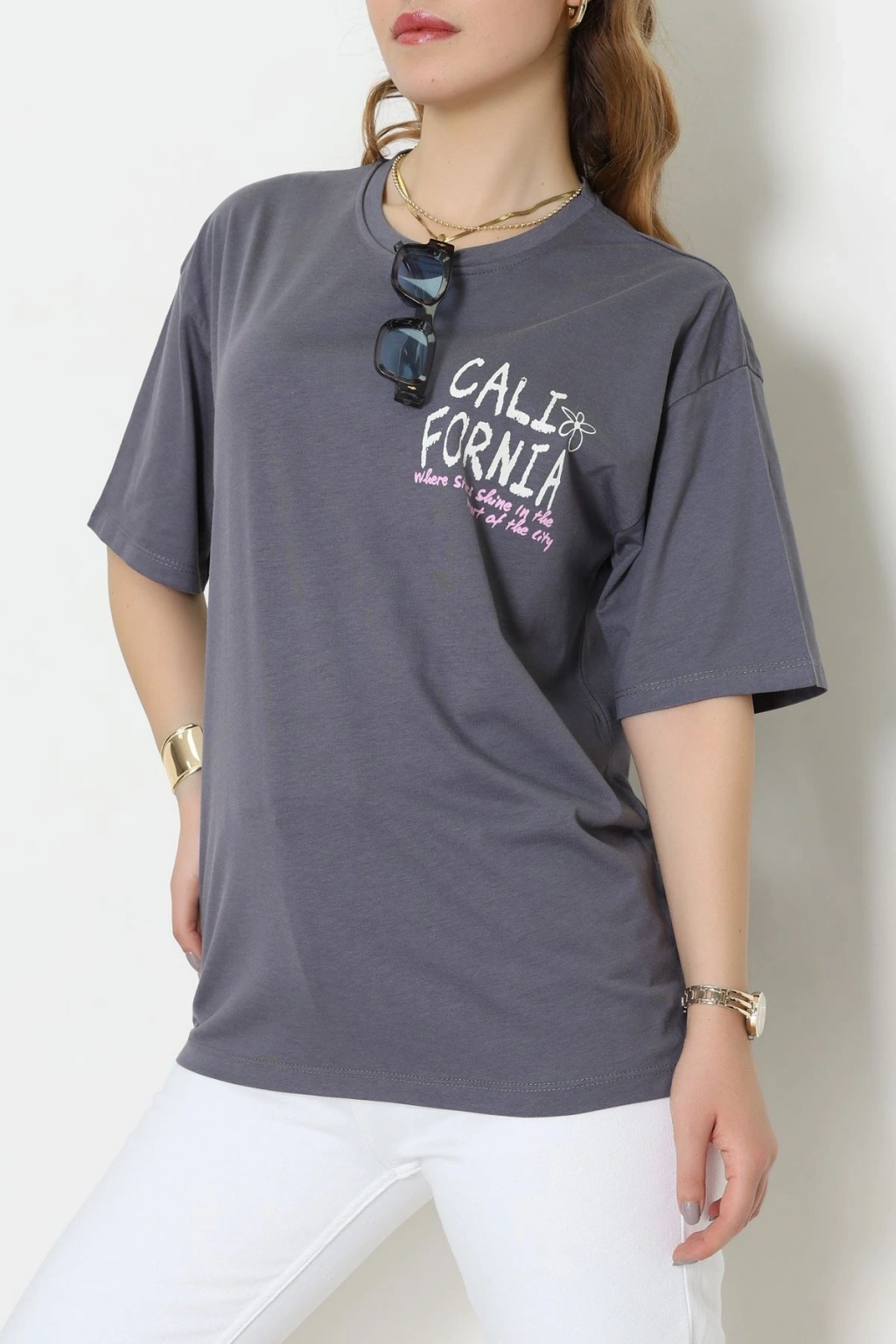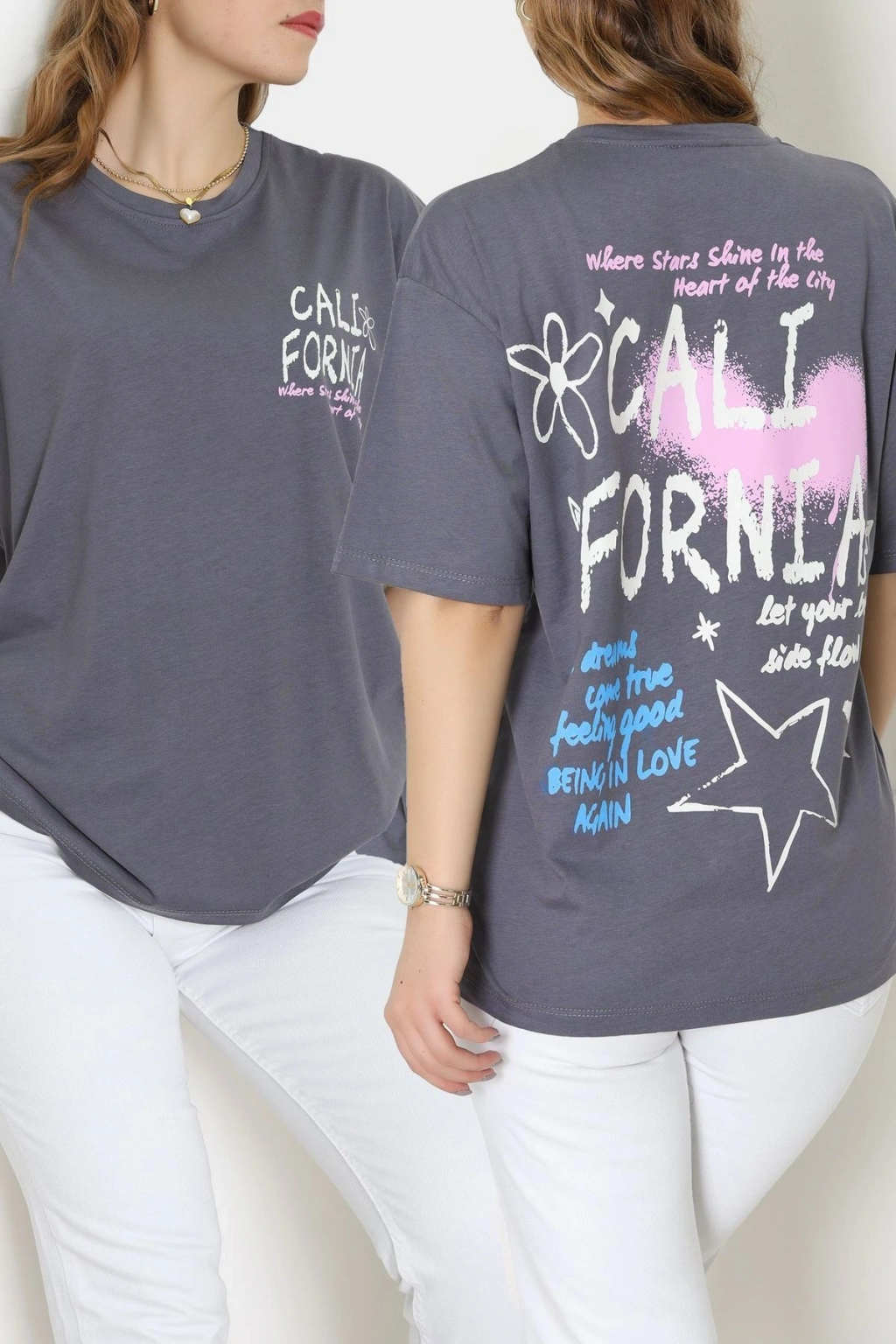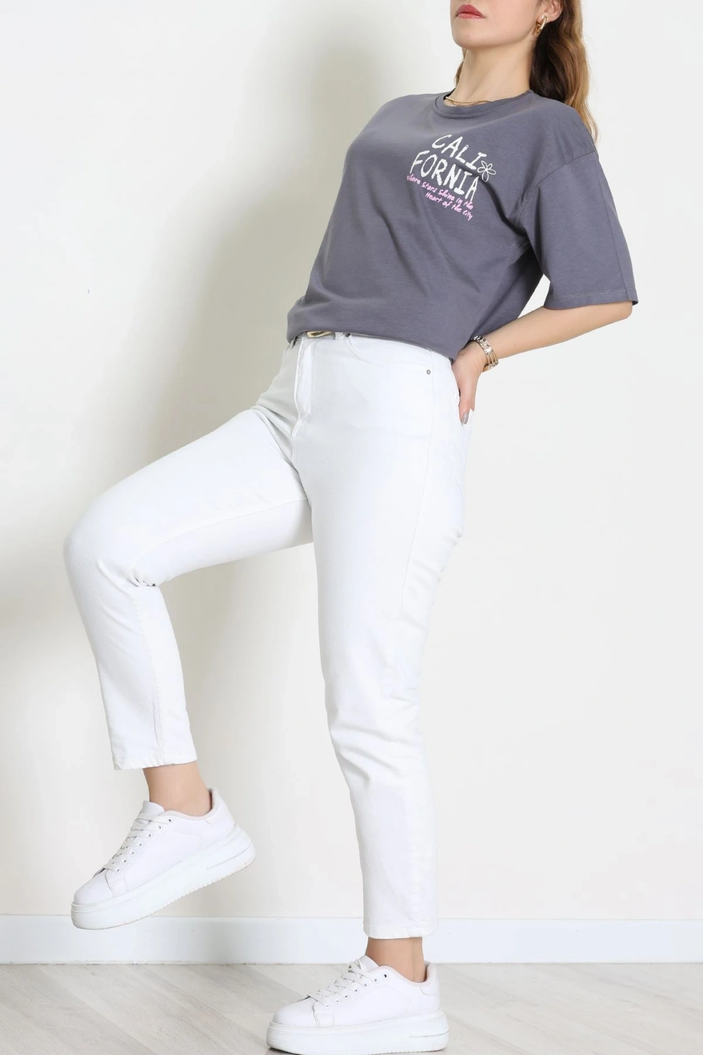 Baskılı Kompakt Penye Tişört Grikrem - 55044.1872.