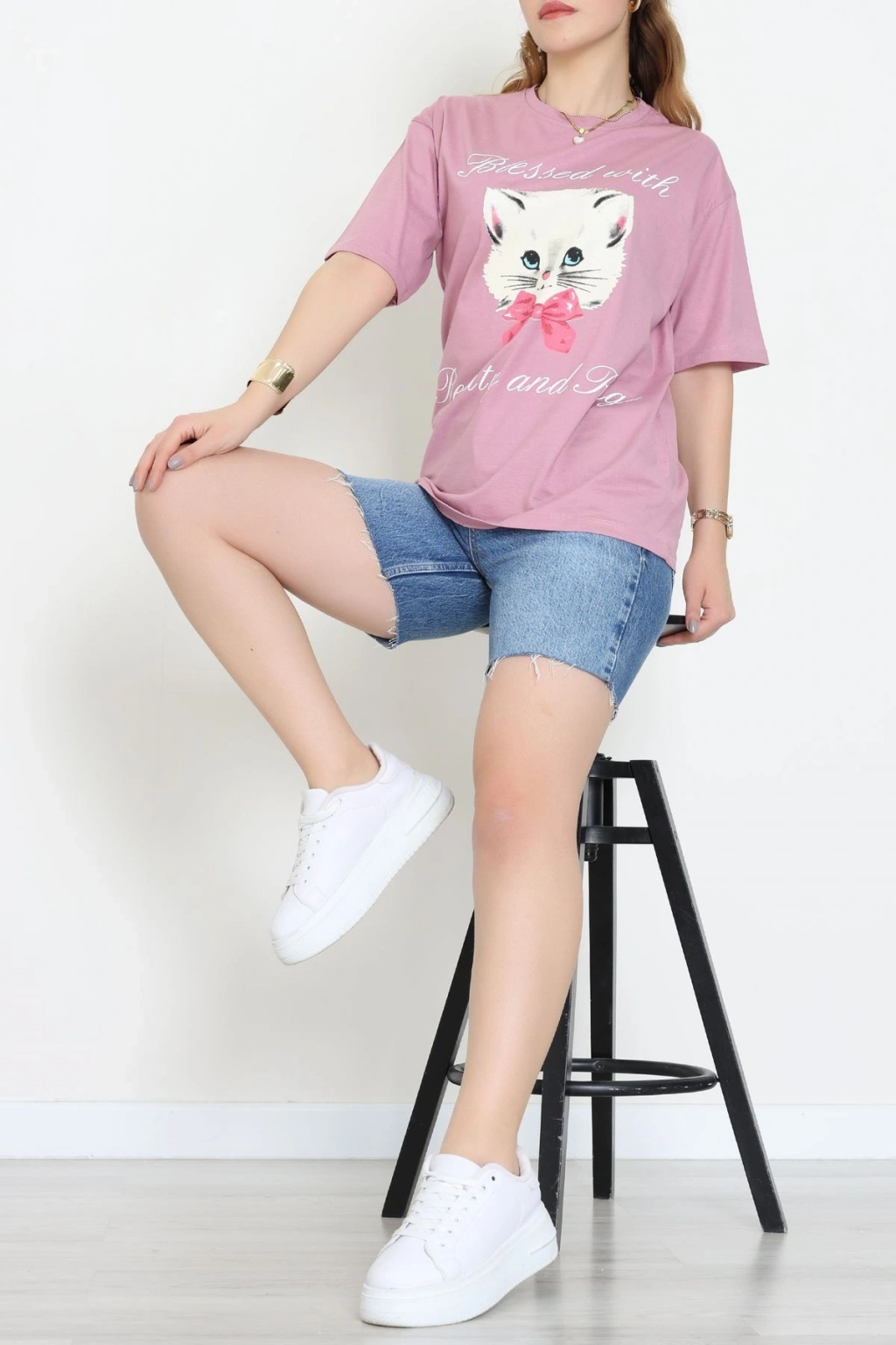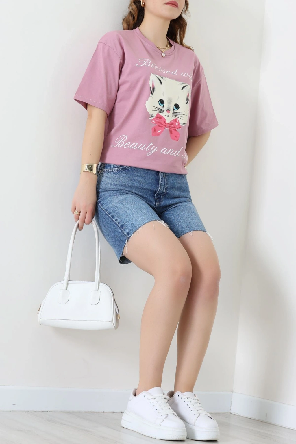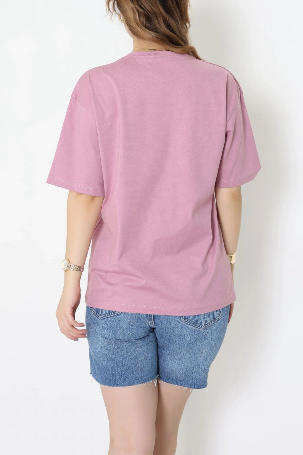 Baskılı Kompakt Penye Tişört Gülkurusu - 55044.1872.