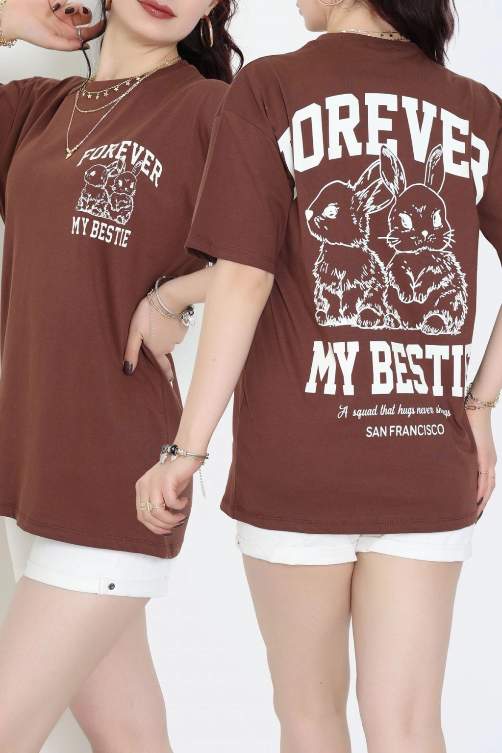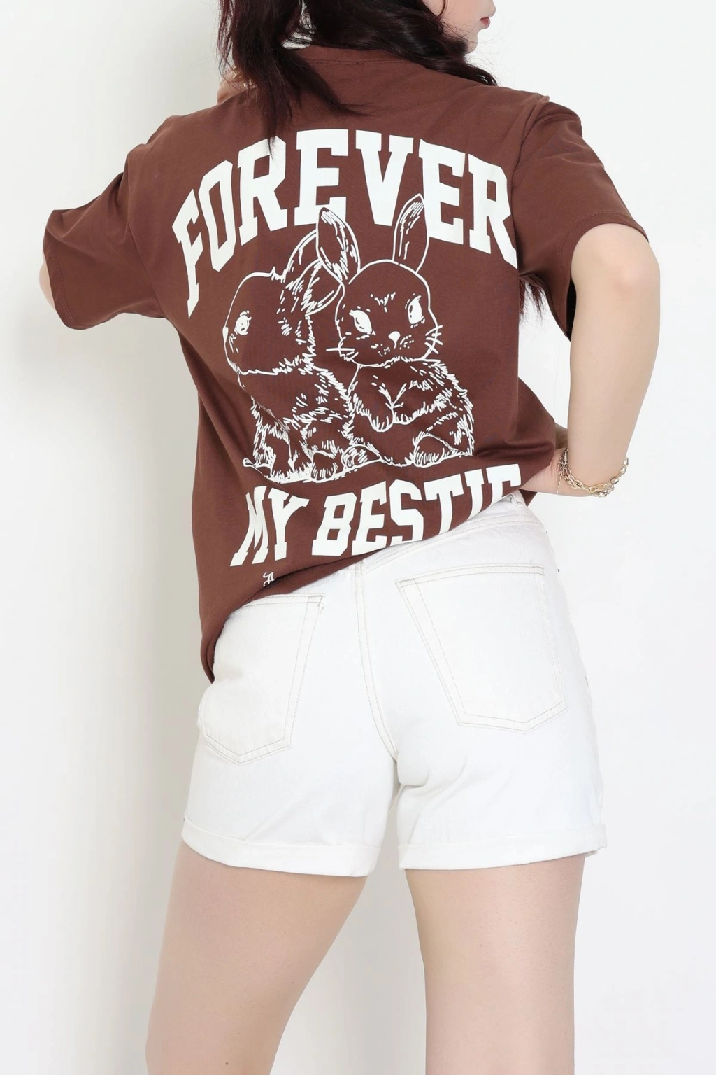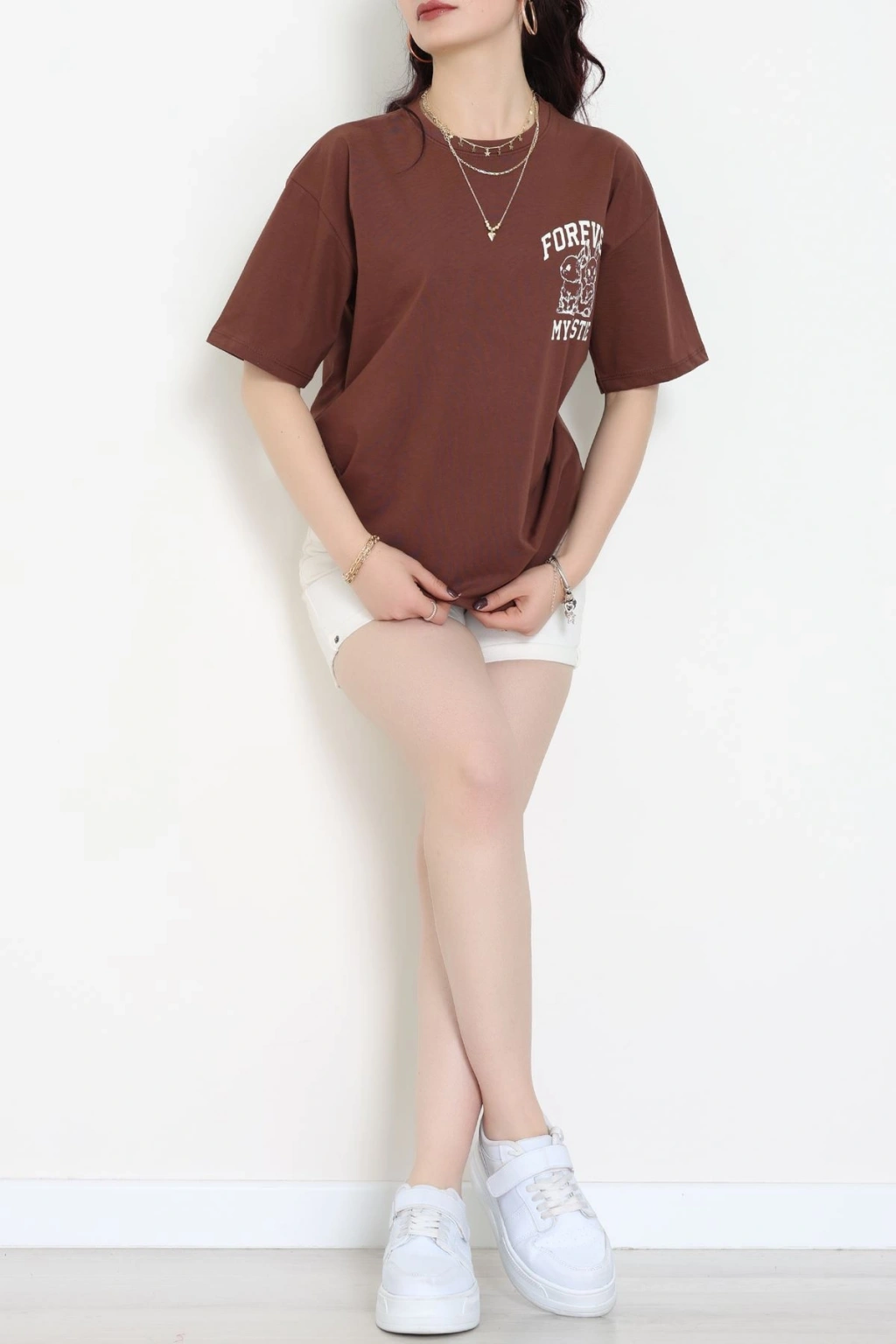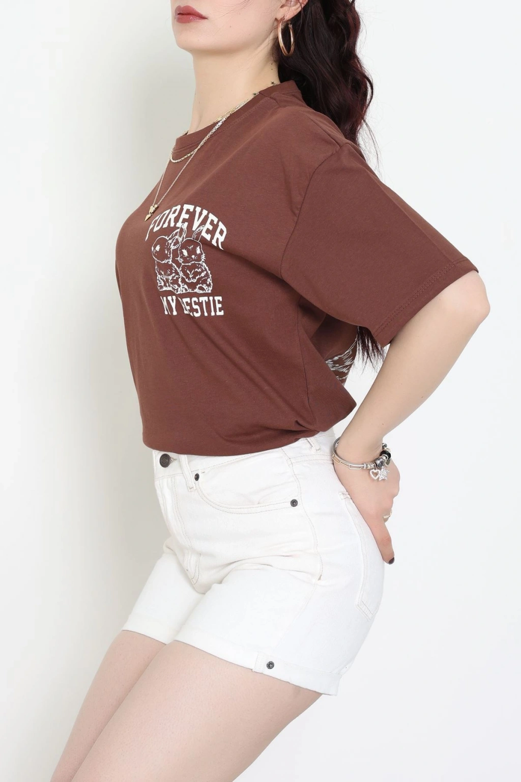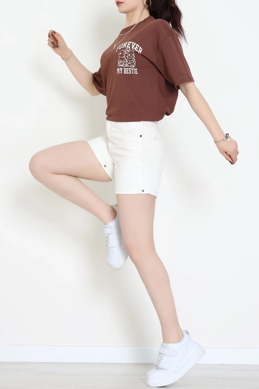 Baskılı Kompakt Penye Tişört Kahvebeyaz - 55044.1872.