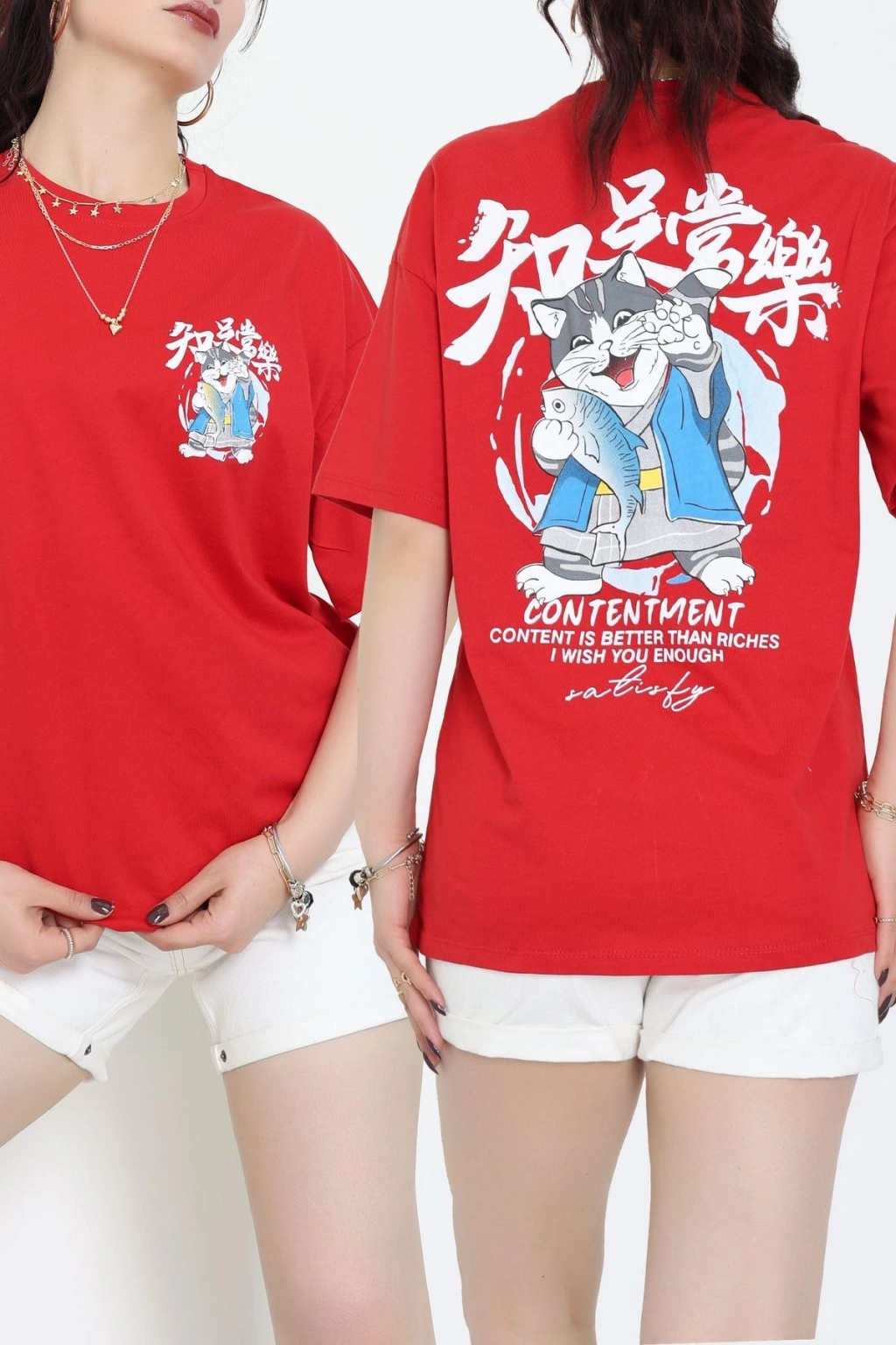 Baskılı Kompakt Penye Tişört Kırmızımavi - 55044.1872.
