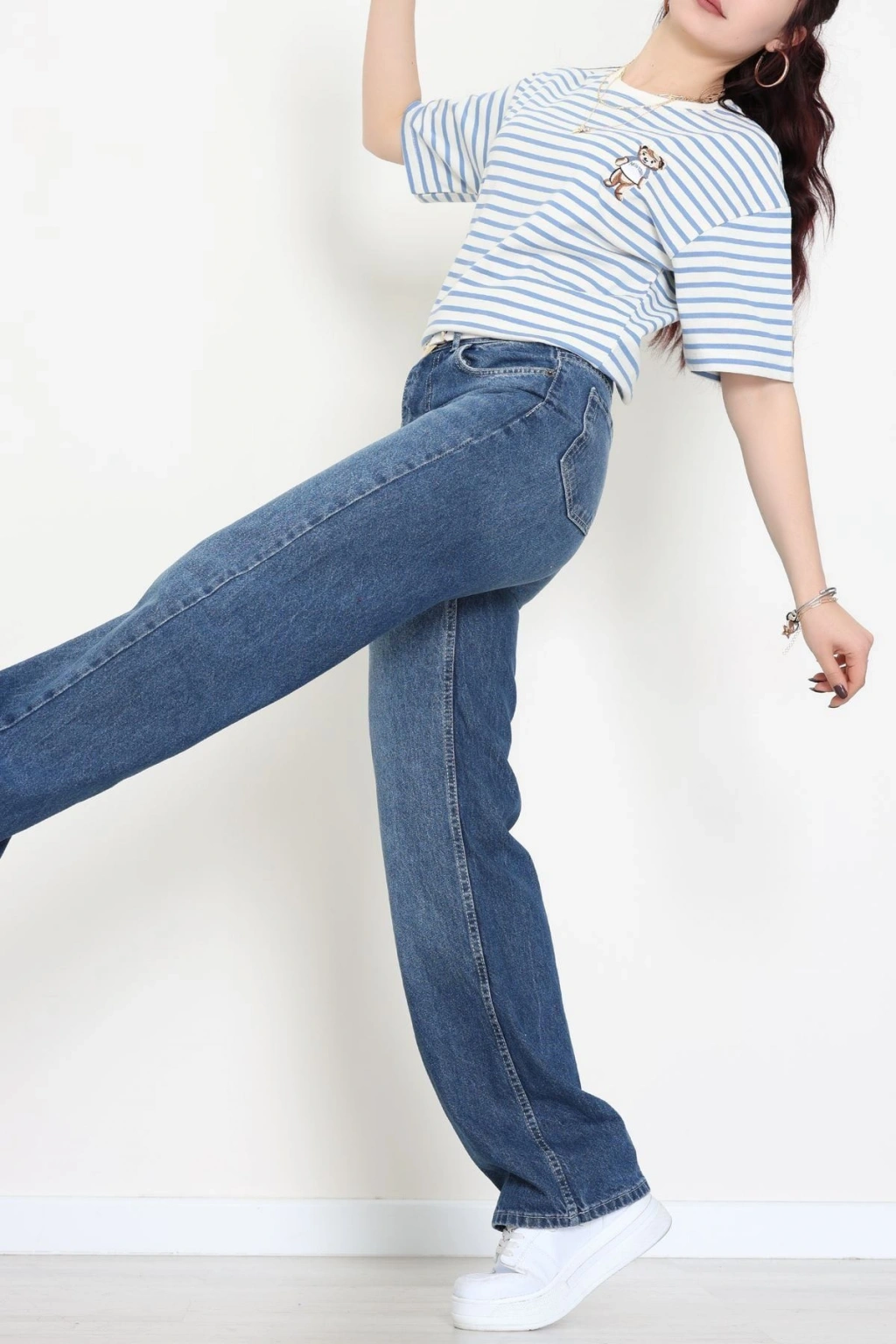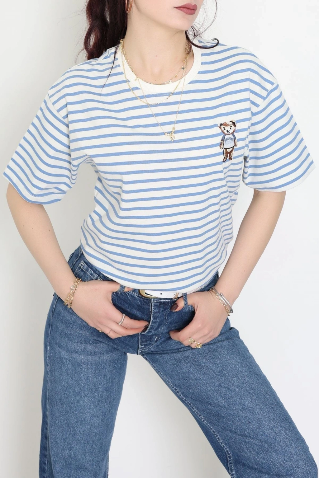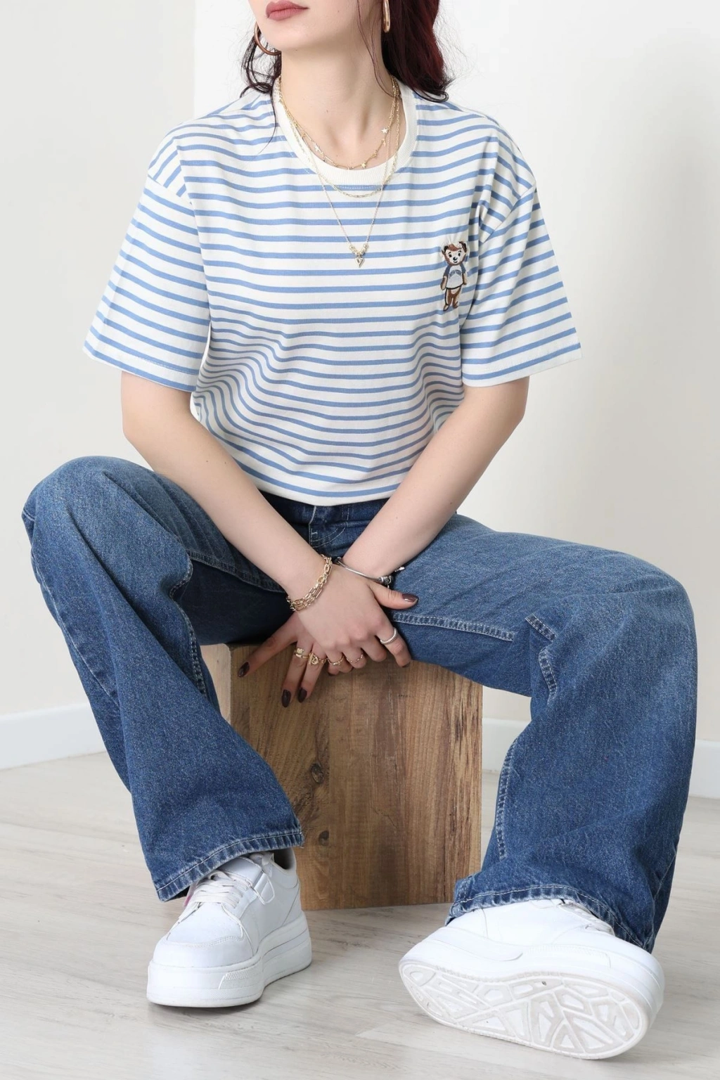 Baskılı Kompakt Penye Tişört Kremmavi - 55044.1872.