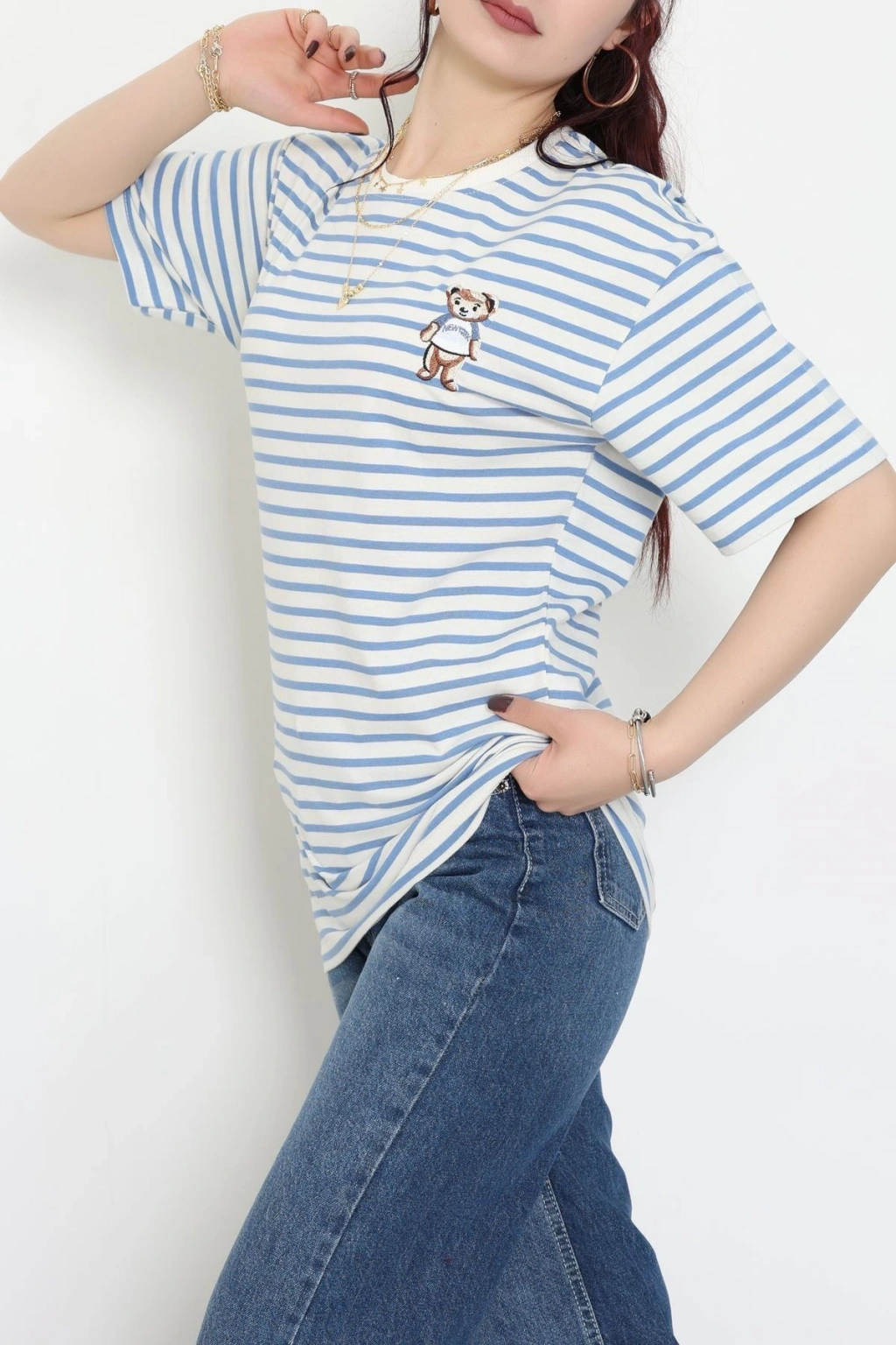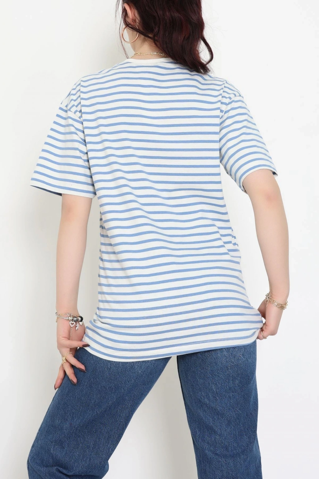 Bisiklet Yaka Çizgili Rejenere Süprem Tişört Lilabeyaz - 601.1567.
