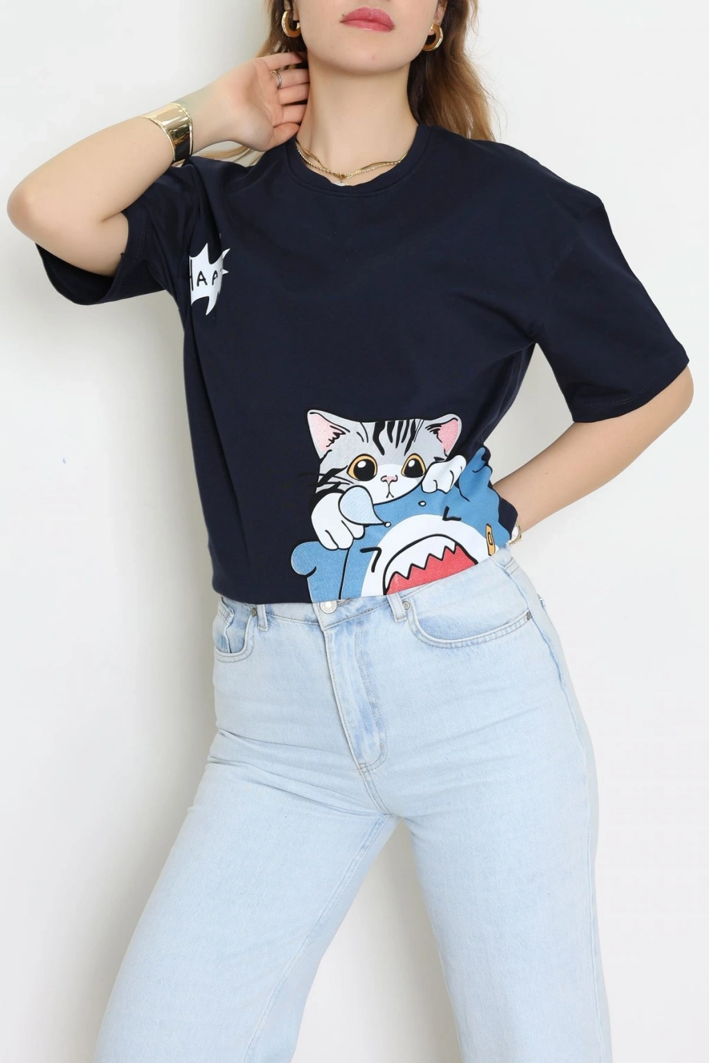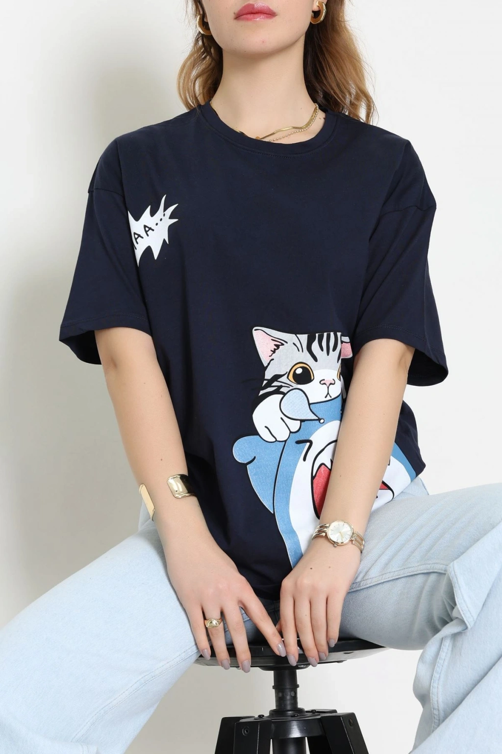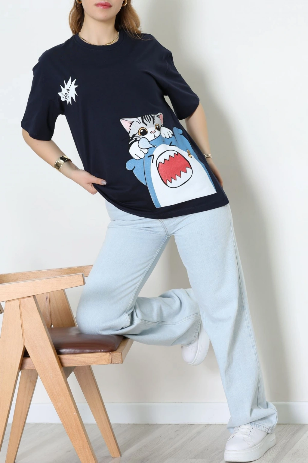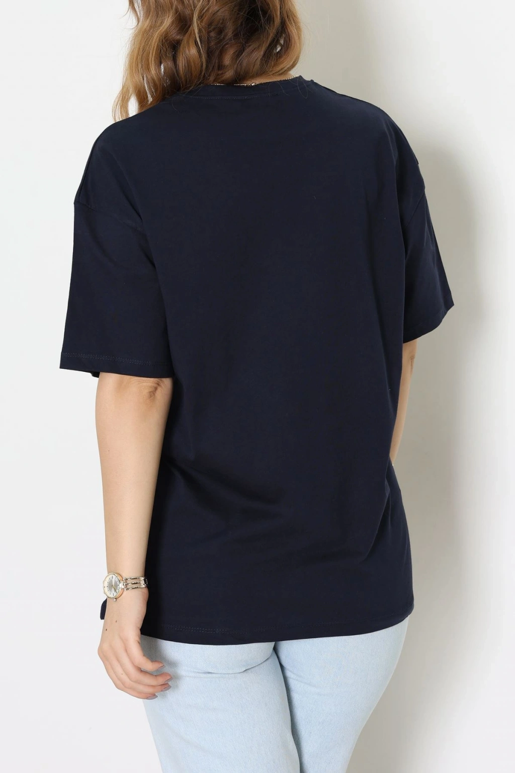Baskılı Kompakt Penye Tişört Lacivertgri - 55044.1872.