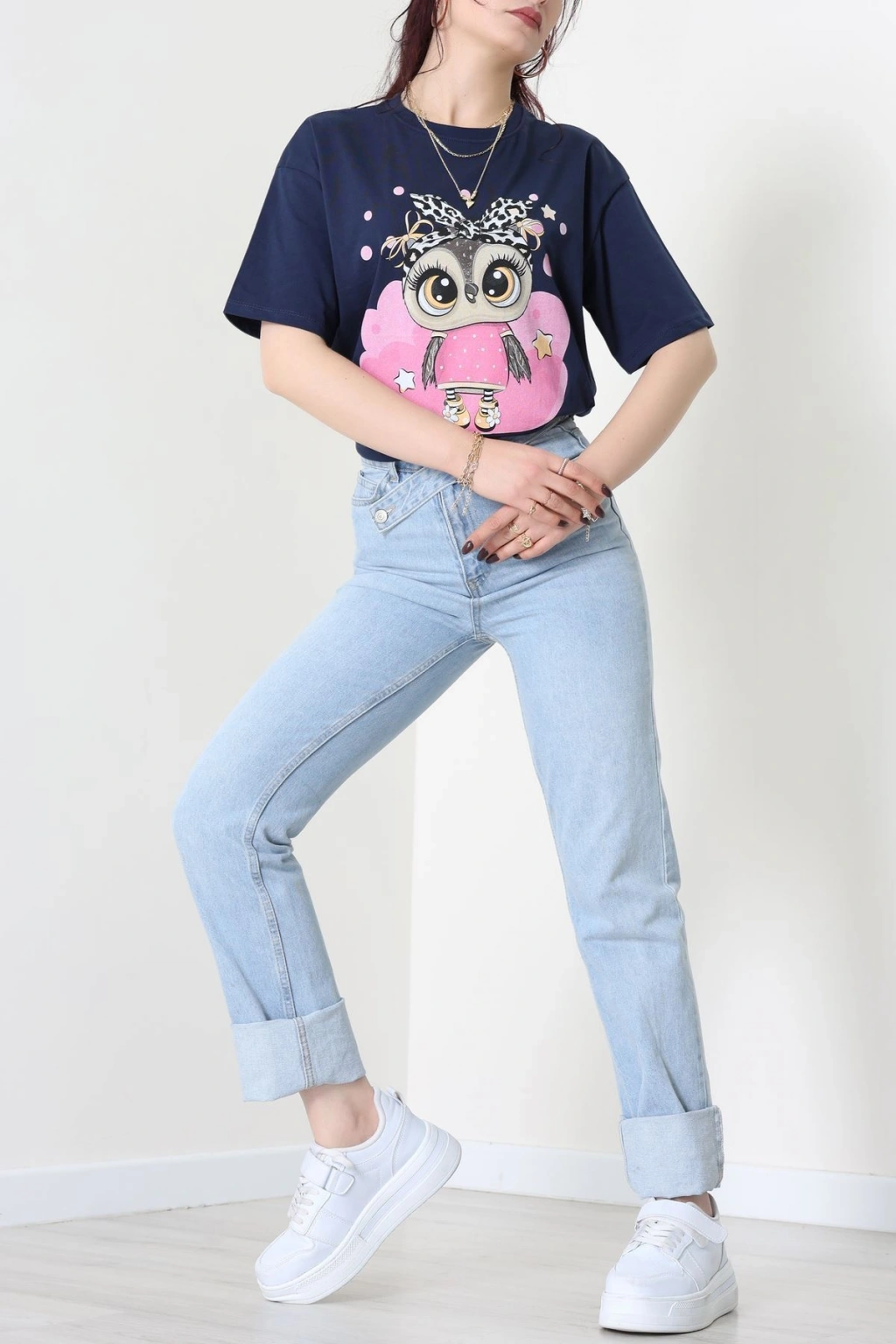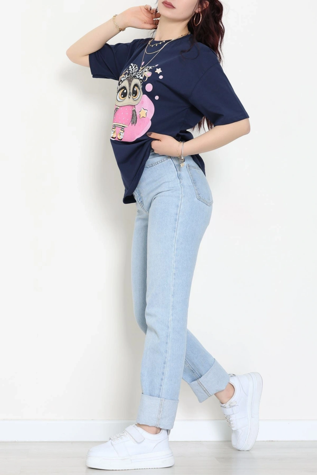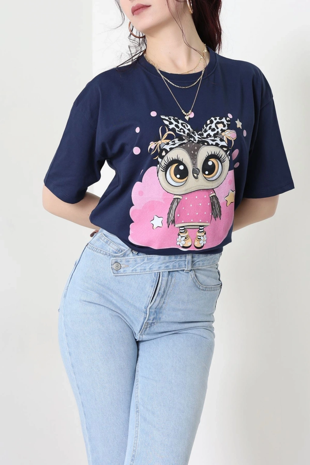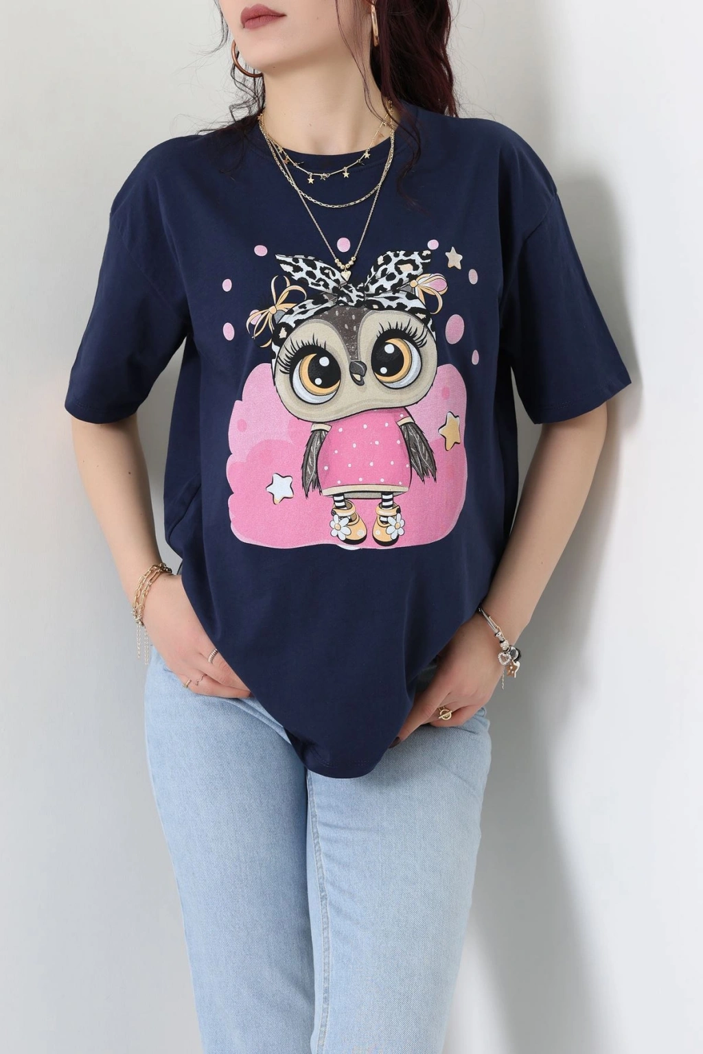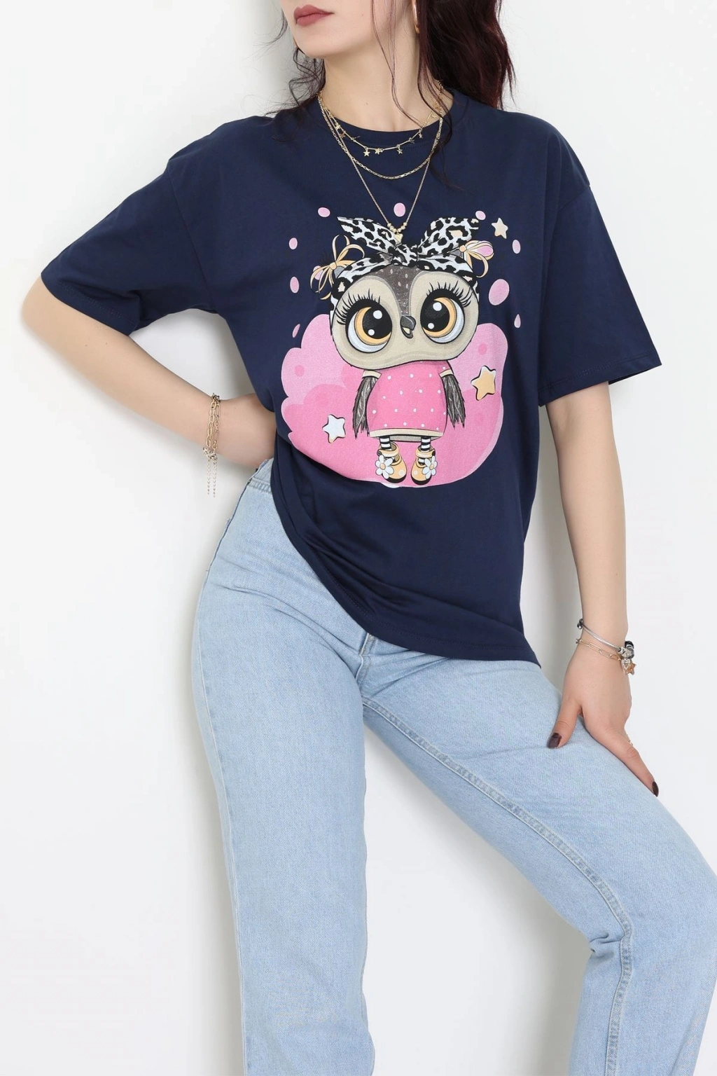 Baskılı Kompakt Penye Tişört Lacivertleopar - 55044.1872.