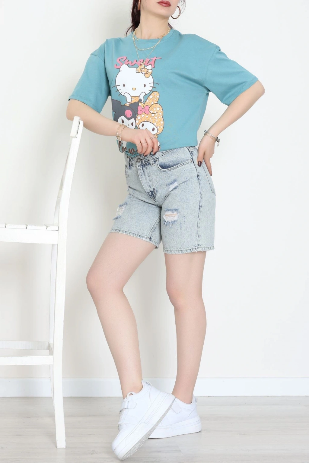 Baskılı Kompakt Penye Tişört Mintsarı - 55044.1872.