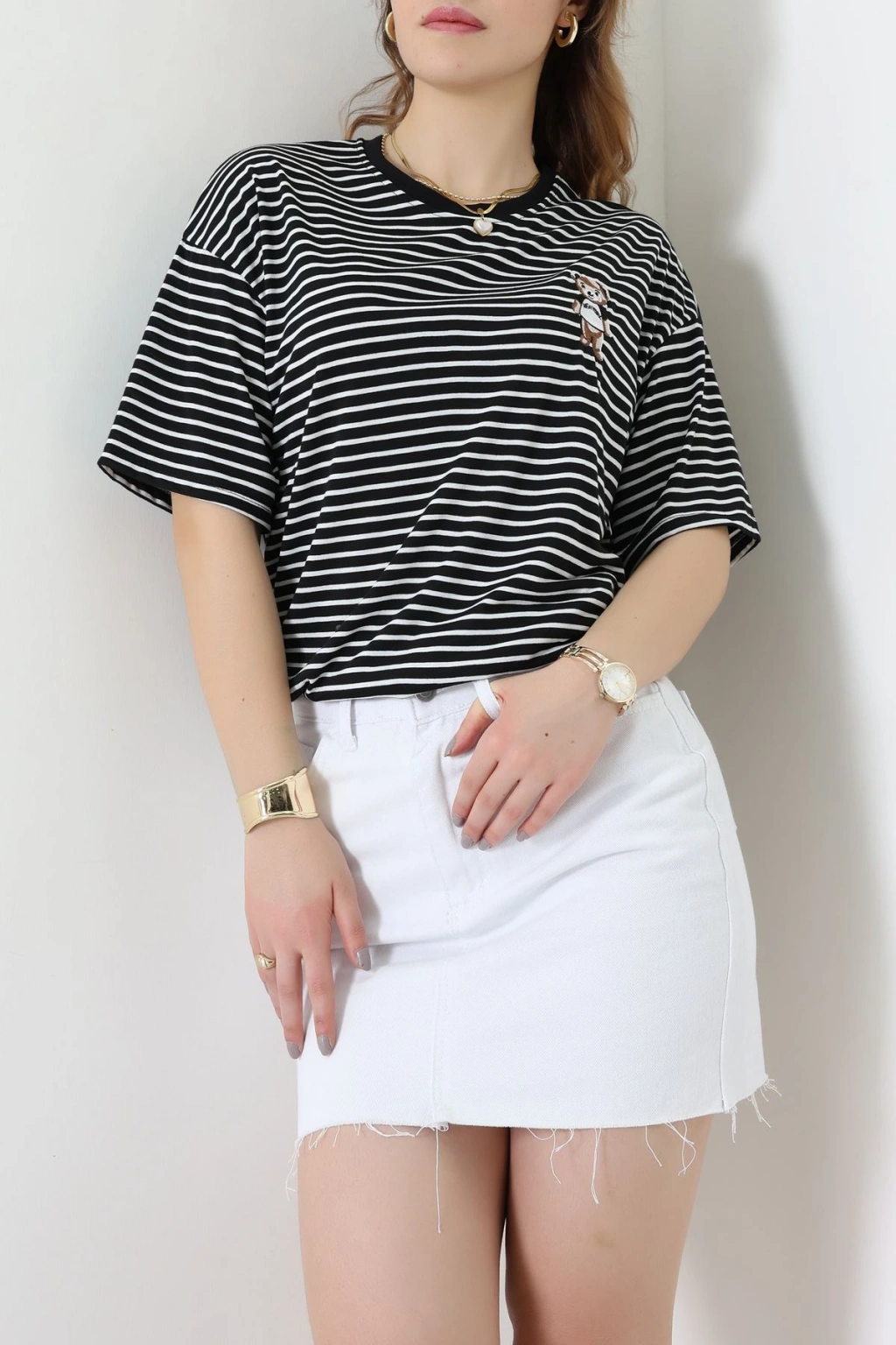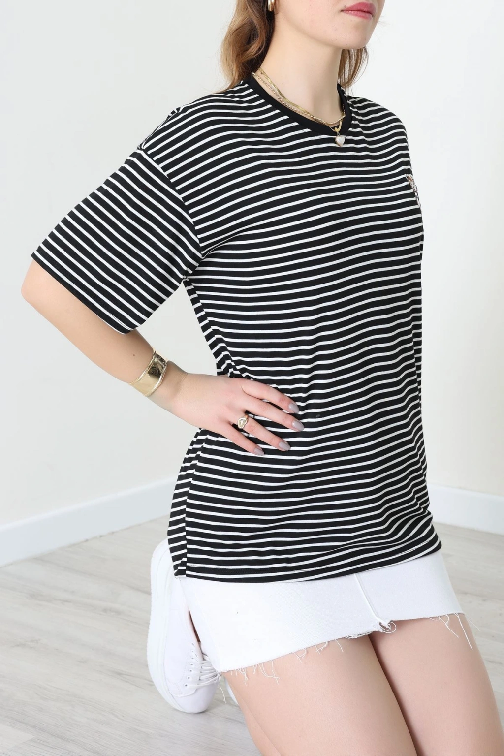 Baskılı Kompakt Penye Tişört Siyahbeyaz - 55044.1872.