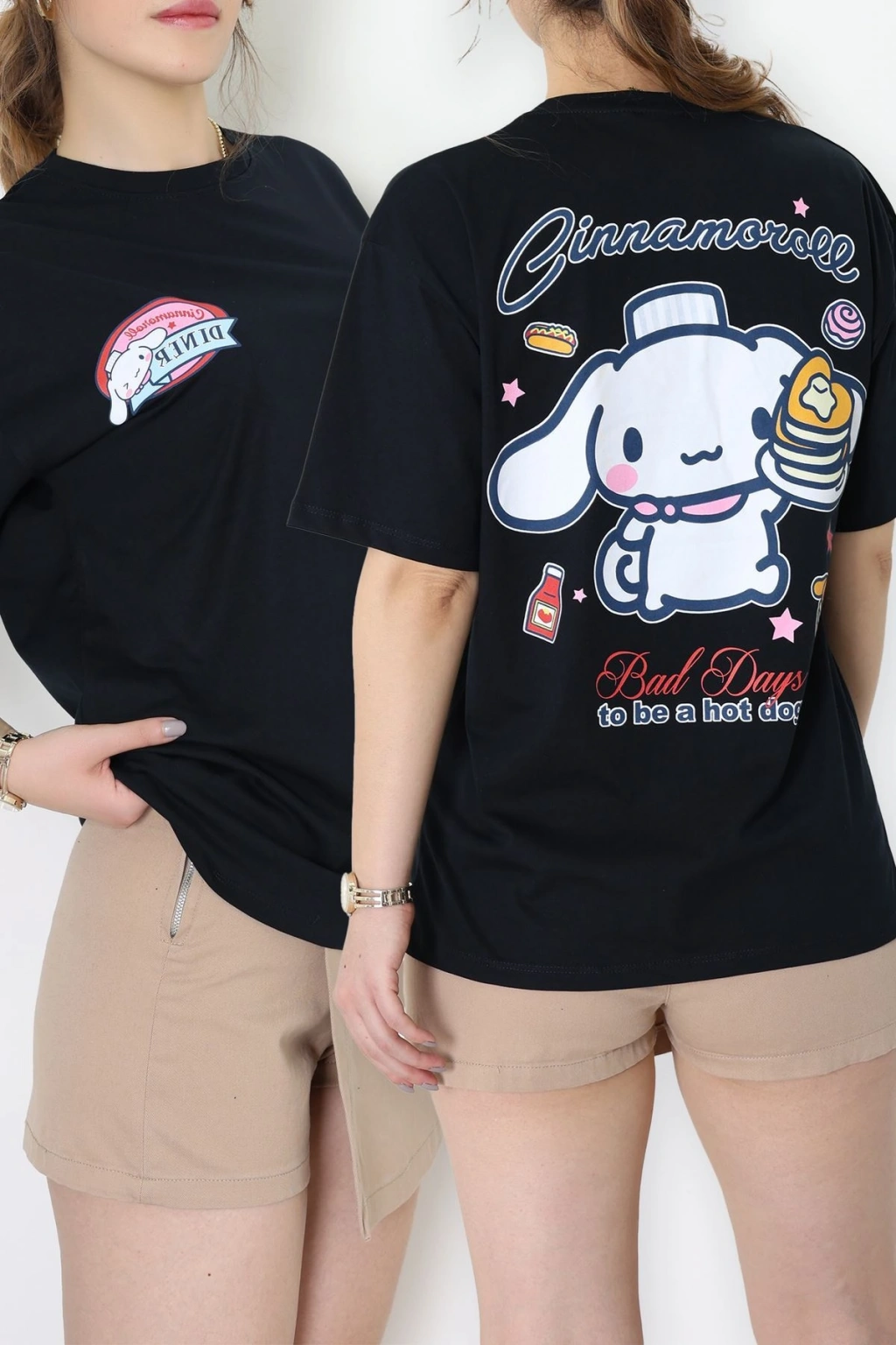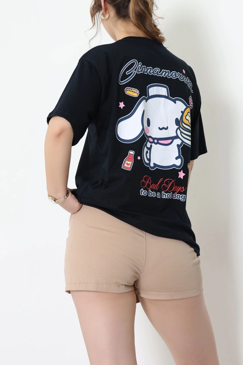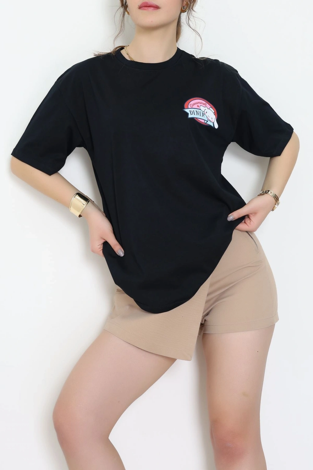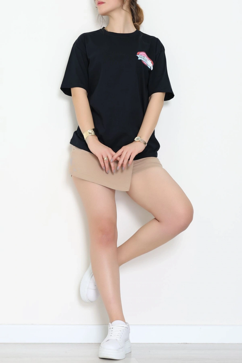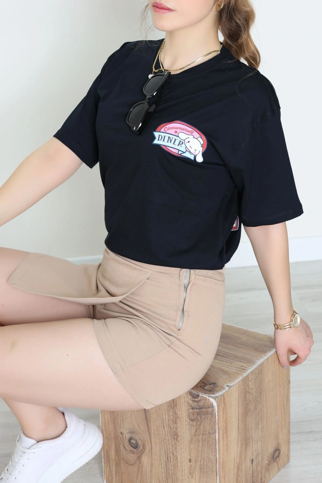 Baskılı Kompakt Penye Tişört Siyahmavi - 55044.1872.