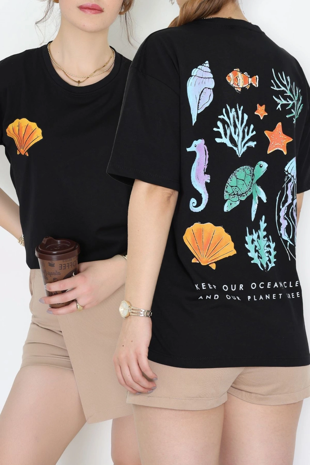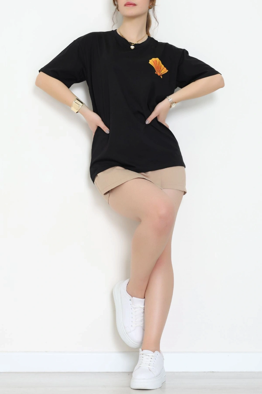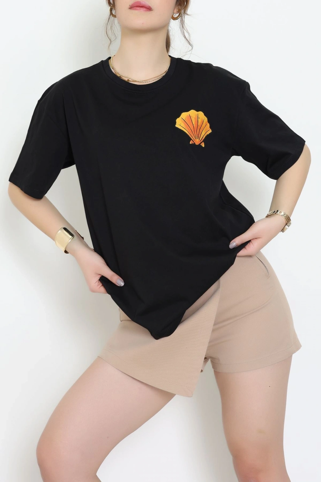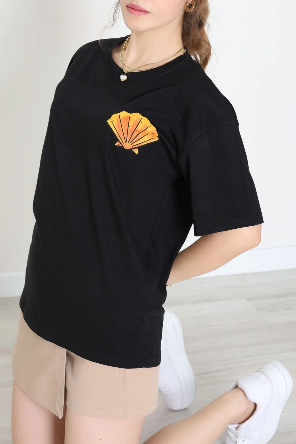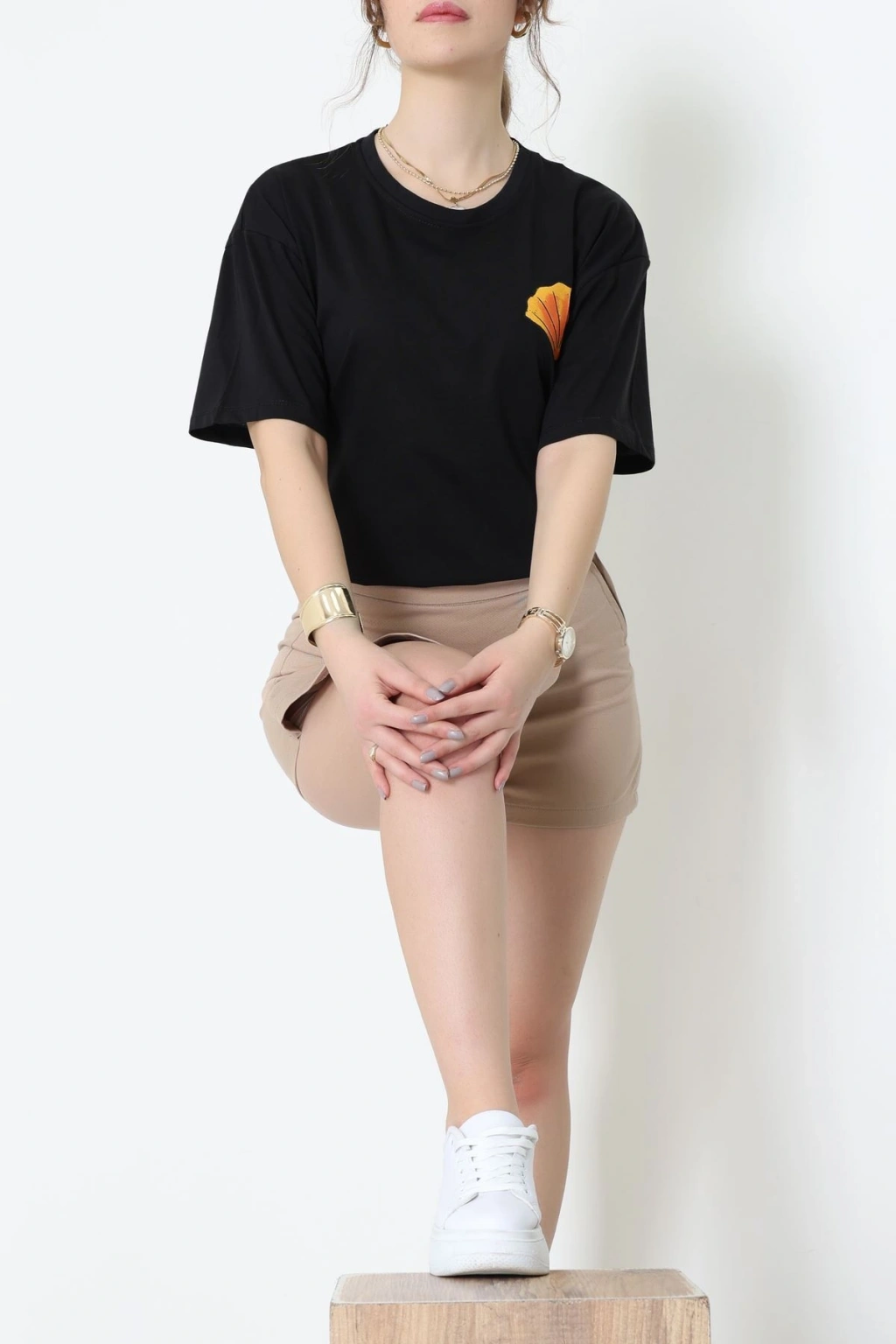 Baskılı Kompakt Penye Tişört Siyahturuncu - 55044.1872.