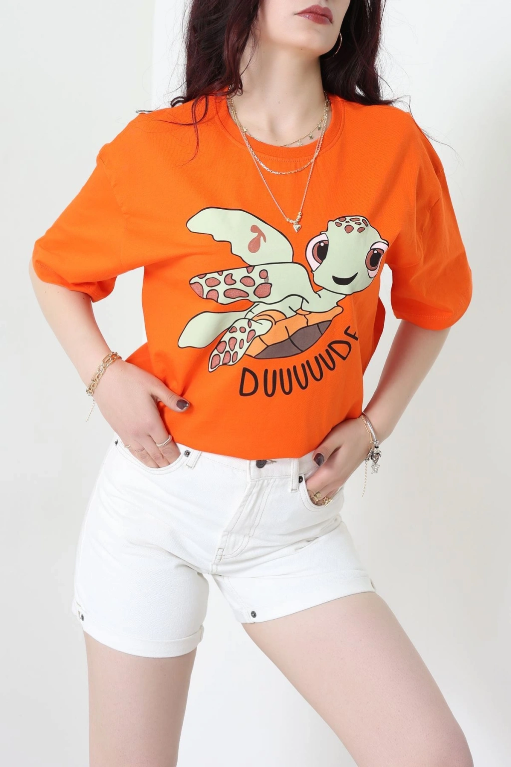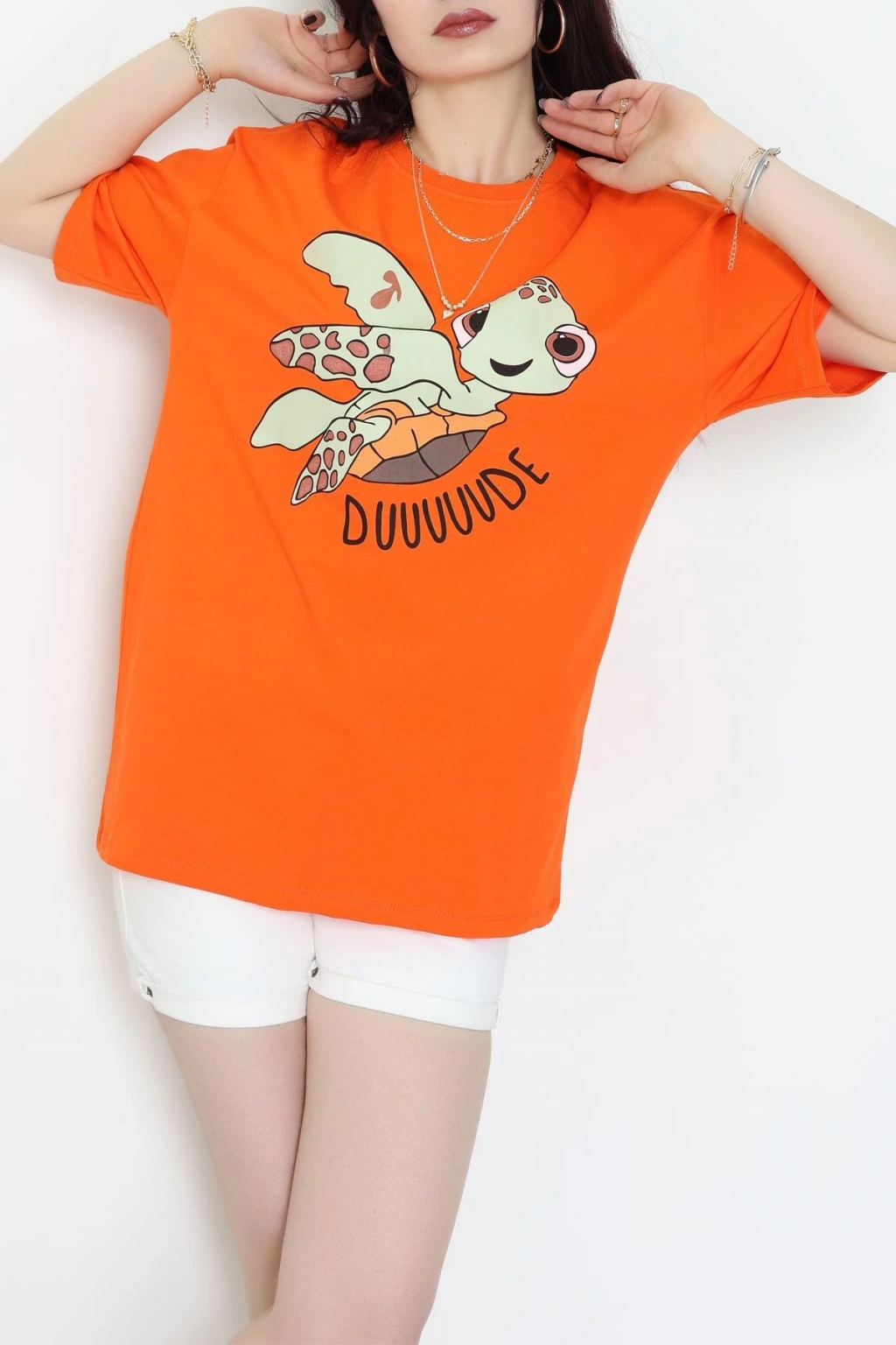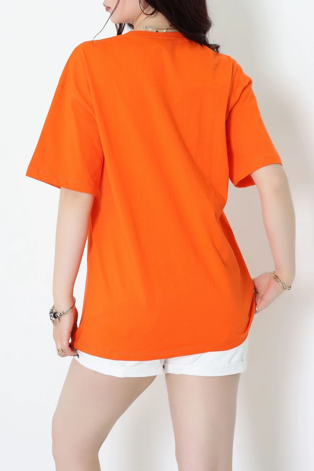 Baskılı Kompakt Penye Tişört Turuncu - 55044.1872.