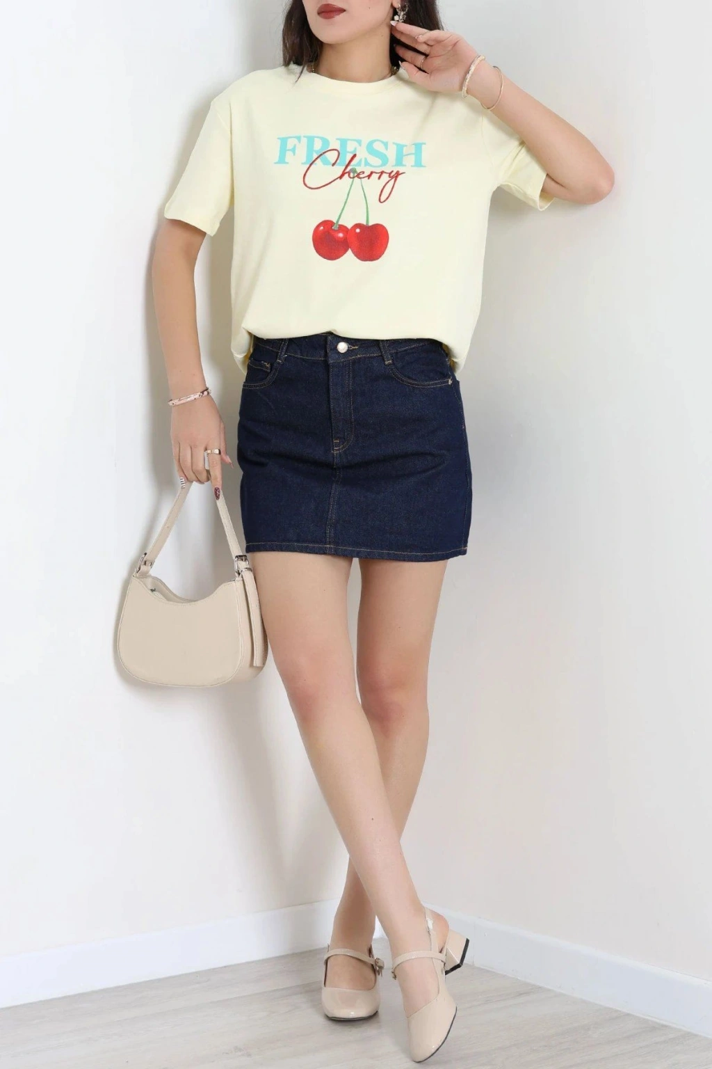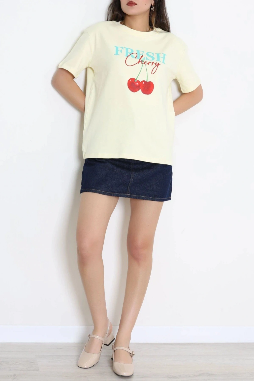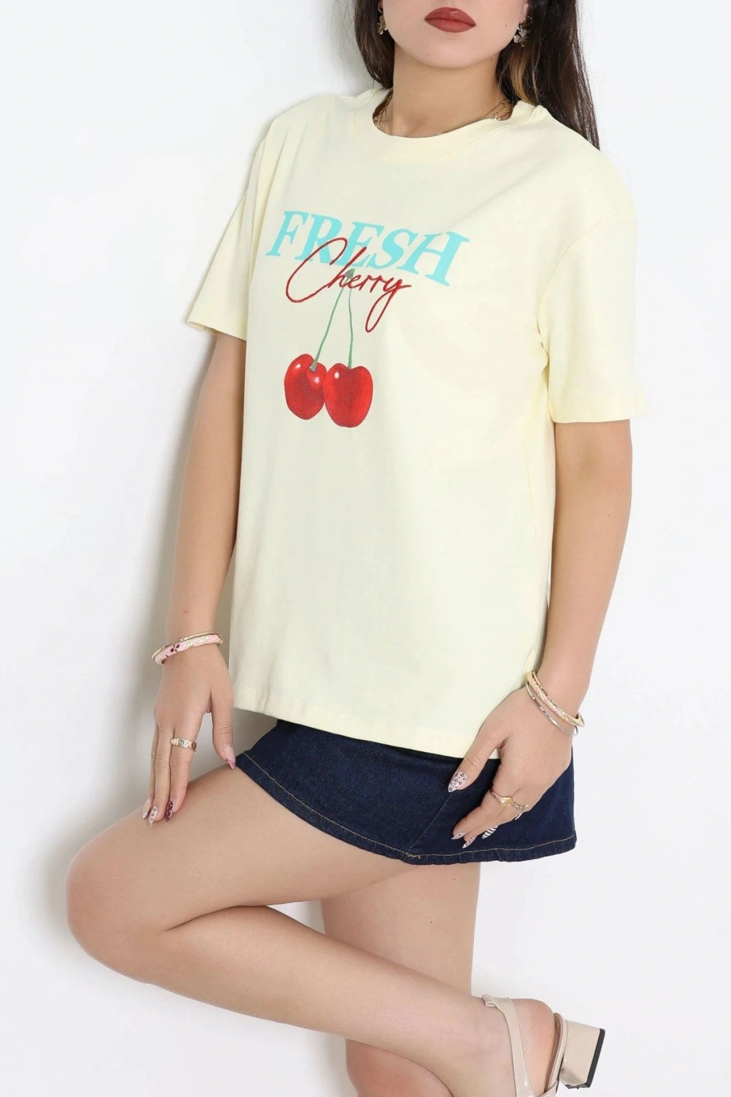 # Sarı Baskılı Pamuklu Tişört ## Bisiklet Yaka ve Rahat Kesim Özellikleri Konforlu ve doğal bir doku sunan **baskılı tişört** modelimiz, cildinizin nefes almasını sağlayan pamuklu kumaşıyla öne çıkar. Açık sarı tonuyla ferah bir enerji katan bu parça, günlük hareket özgürlüğünü destekleyen esnek bir yapıya sahiptir. Hafif formu sayesinde terletmeyen bu tasarım, **bisiklet yaka tişört** arayanlar için fonksiyonel bir kullanım sunar. Üstün penye dokusuyla bu baskılı tişört, kaliteli bir pamuklu tişört deneyimi sunarak uzun süreli konfor sağlar. Göğüs kısmında yer alan canlı kırmızı kiraz grafiği ve mavi yazı detayı, bu **sarı kadın tişört** modeline enerjik bir karakter katar. Saf pamuk içeriğiyle terlemeyi minimize eden bu parça, cildi tahriş etmeyen yumuşak dikişleriyle rahatlık vadeder. Normal kalıp kesimi vücut hatlarını sıkmadan sararken, kumaşın doğal esnekliği hareketlerinize özgürce eşlik eder. Kaliteli işçiliğiyle dikkat çeken ürünümüz, fiyat performans dengesiyle öne çıkan ekonomik bir seçenektir. Satın almak için hemen sepete ekleyin.