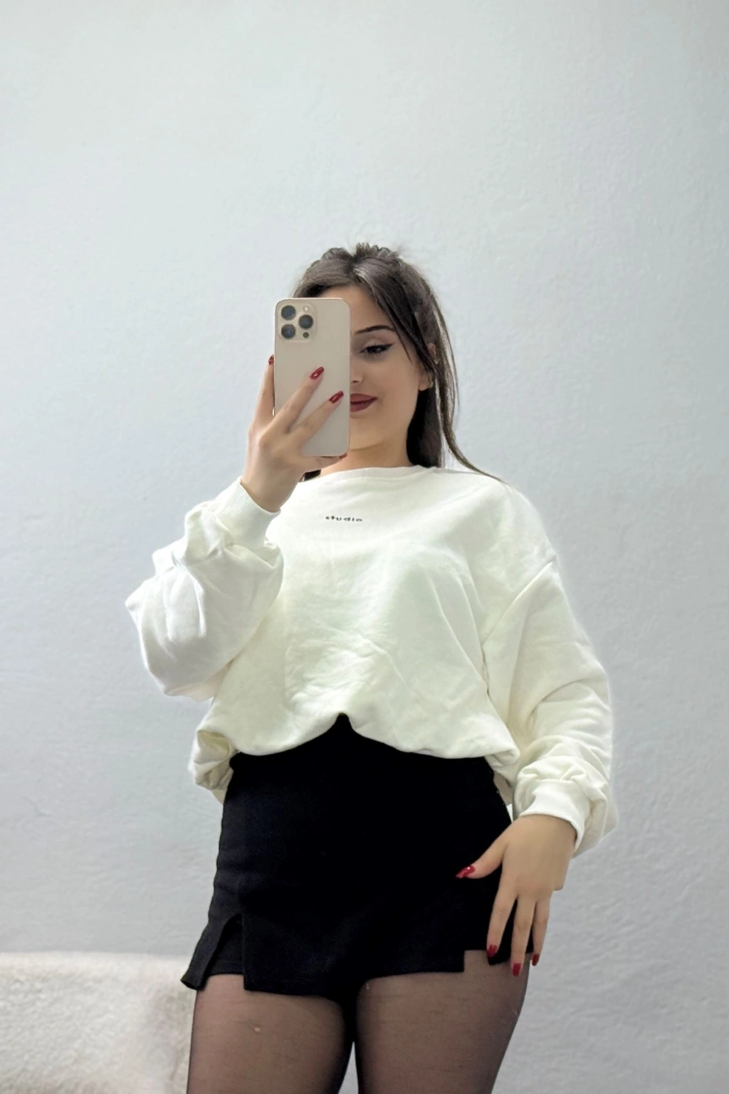 3 İplik Kompakt Oversize Fleto Cepli Sweat Ekru - 42506.1878.