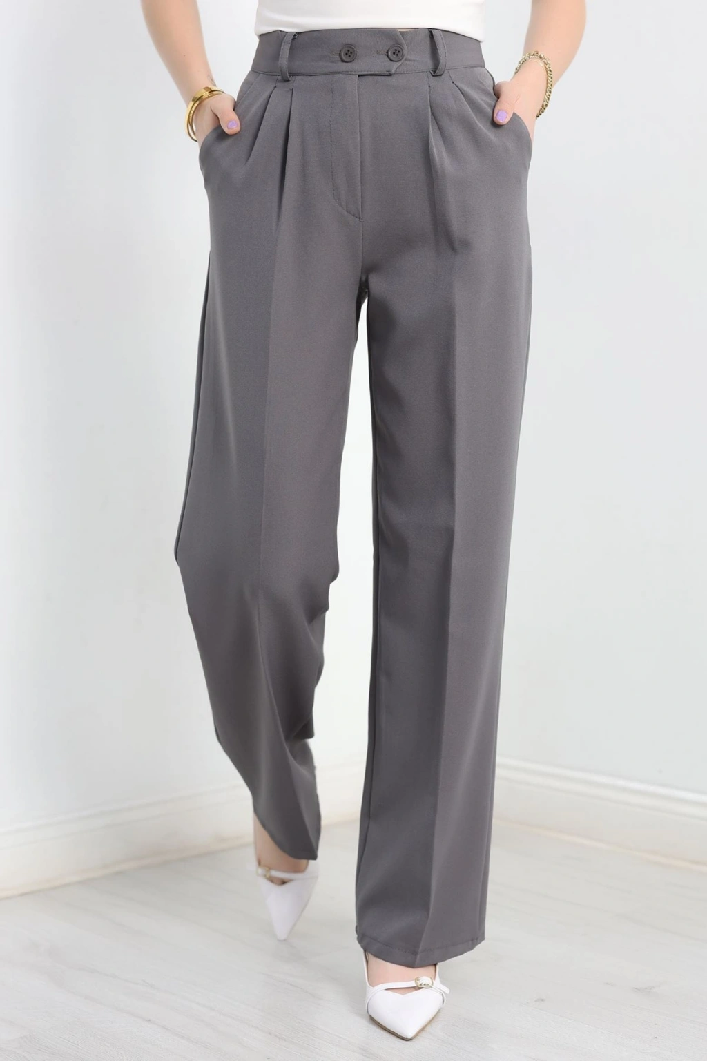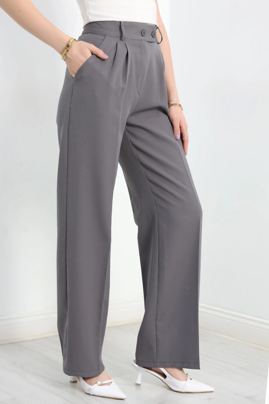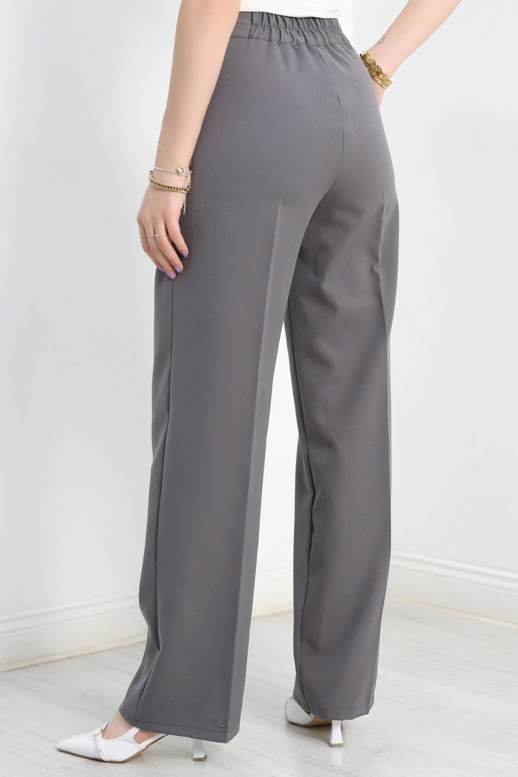 # Bel Lastikli Palazzo Pantolon ## Zarif Tasarım ve Konfor Gün boyu süren rahatlık ve şıklık arayanlar için **Bel Lastikli Palazzo Pantolon** modelimiz, duman gri rengiyle ofisten özel davetlere kadar her anınıza uyum sağlıyor. Yüksek bel kesimi bacakları uzun gösterirken, modern duruşuyla da dikkat çekici bir stil yaratıyor. Bu parça, dabıl kumaşının verdiği kalite hissiyle gardırobunuzun joker parçası olmaya aday. Yumuşak dokusuyla bedeninize nazikçe oturan bu **yüksek bel** tasarım, beli lastikli yapısı sayesinde gün boyu konfor sunar ve hareket özgürlüğünüzü kısıtlamaz. Duman gri tonu, farklı renklerle kolayca kombinlenebilirken, fotoğrafındaki akıcı ve dökümlü duruşuyla da zarafeti ön plana çıkarır. Şık ve rahat bir **geniş paça pantolon** arayanlar için ideal olan bu model, fiyat performans ürünü olarak öne çıkmaktadır. Hemen sepete ekleyin.