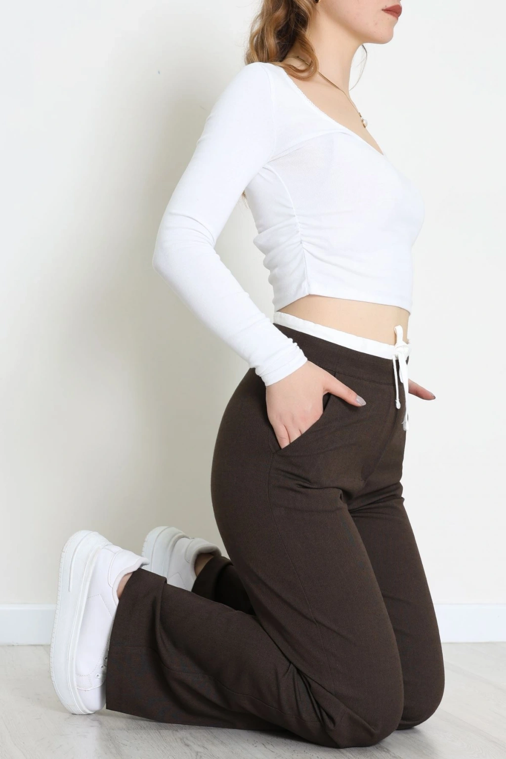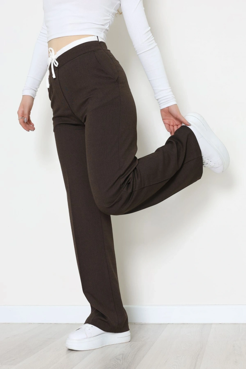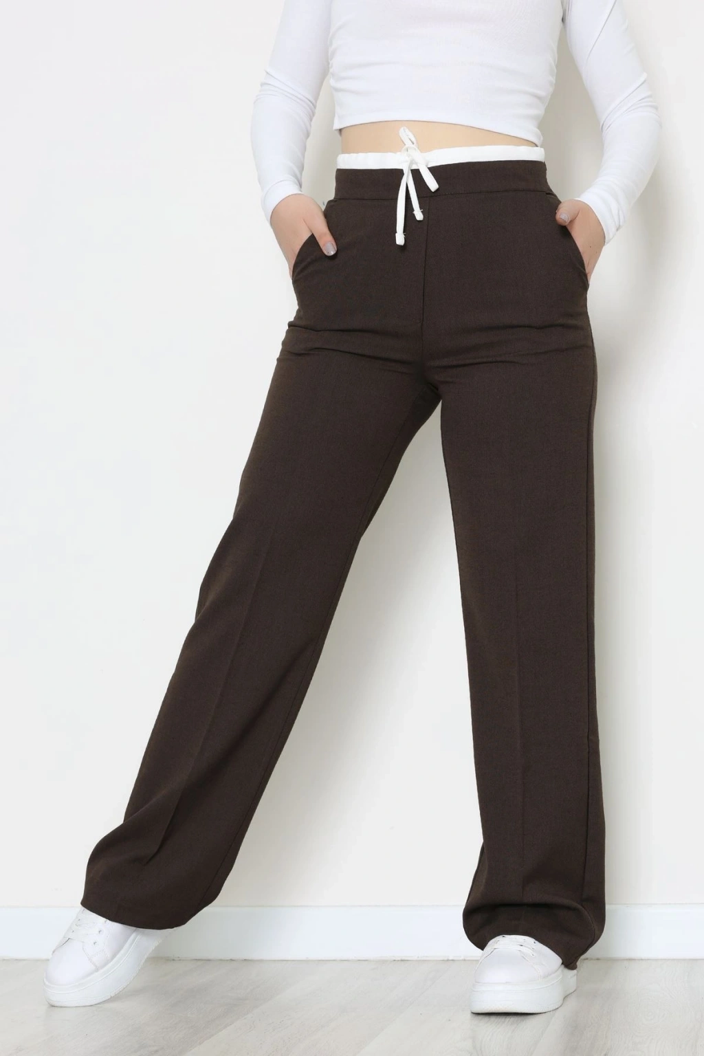 Dabıl Kumaş Beli Bağcıklı Pantolon Kahve - 51615.683.