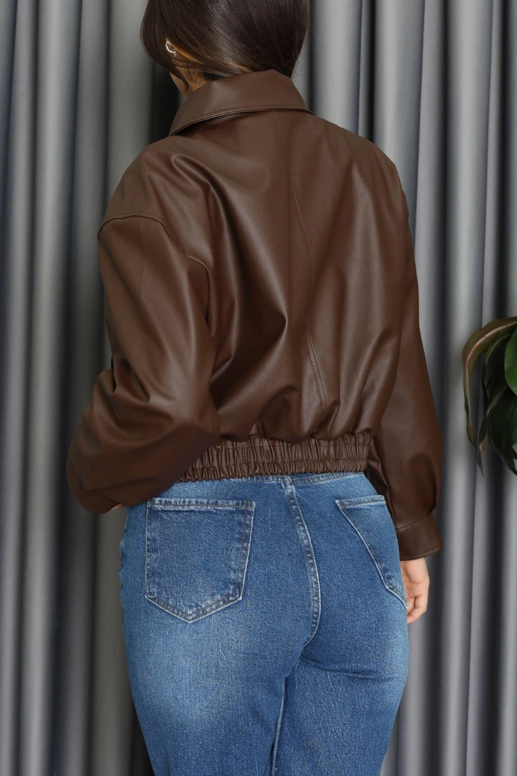 Beli Lastikli Deri Ceket Kahve - 31857.2089.