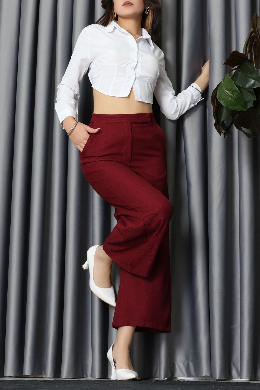 Buzzy Kumaş Korsajlı Palazzo Pantolon Gri - 51229.1567.