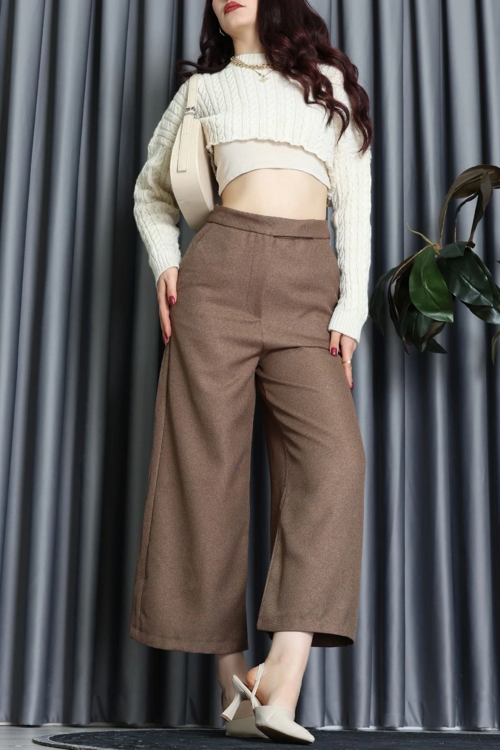Beli Garnili Poliviskon Palazzo Pantolon Kahve - 51235.1920.