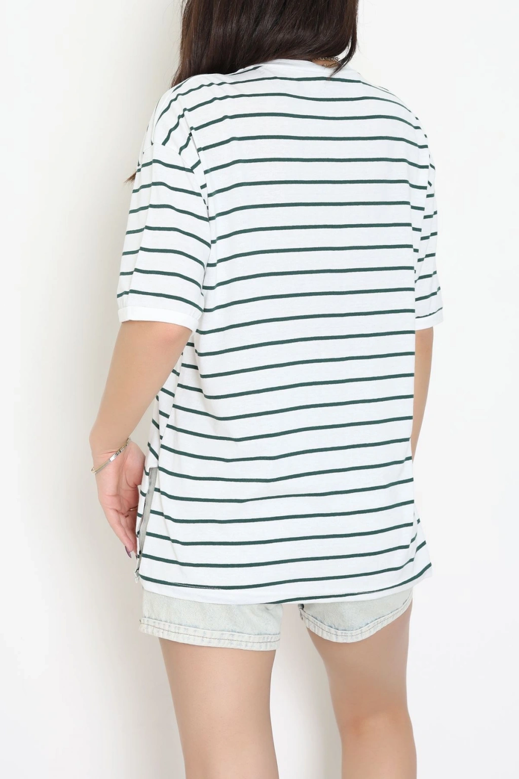 Bisiklet Yaka Çizgili Rejenere Süprem Tişört Beyazzümrüt - 601.1567.