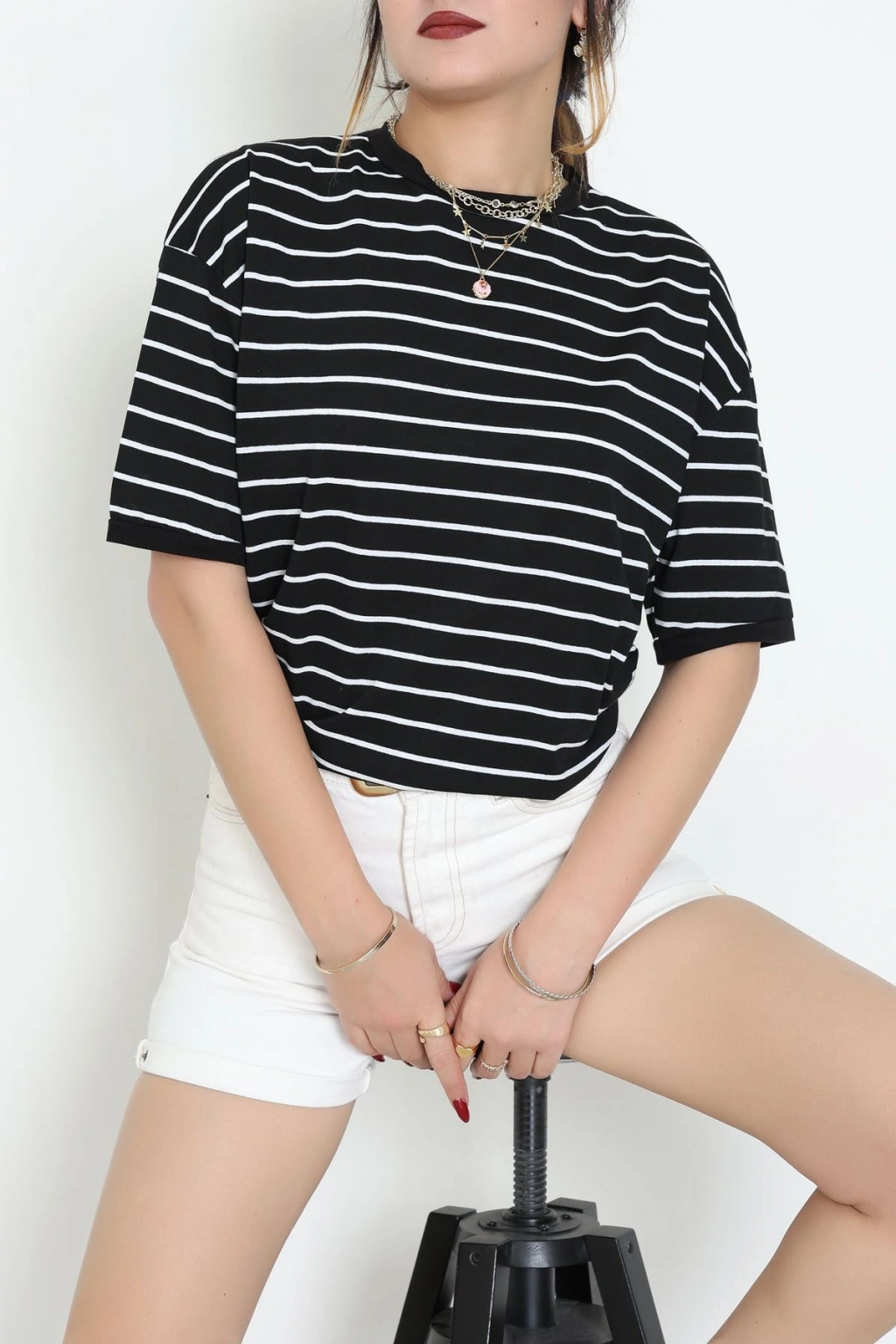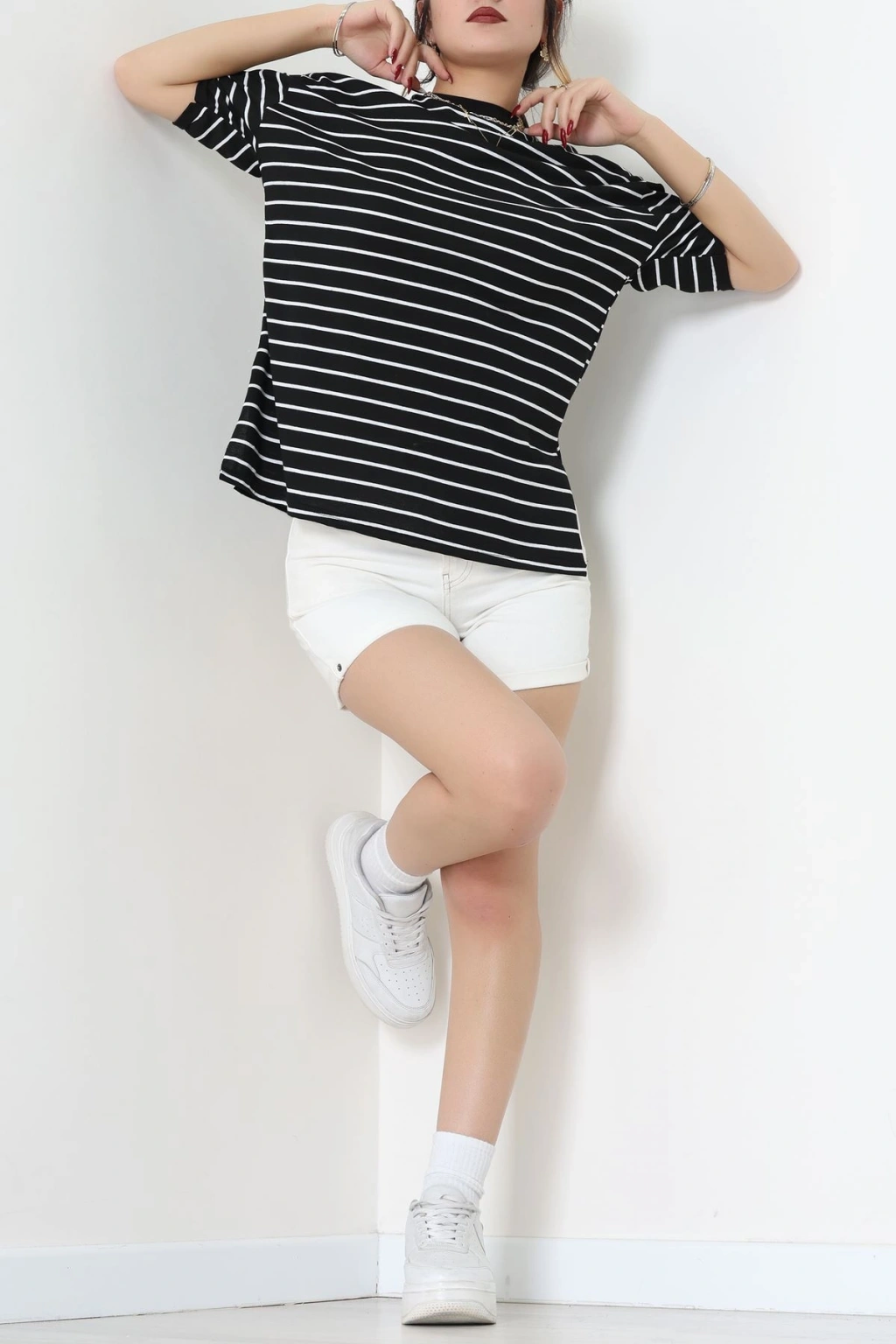 Bisiklet Yaka Çizgili Rejenere Süprem Tişört Siyahbeyaz - 601.1567.