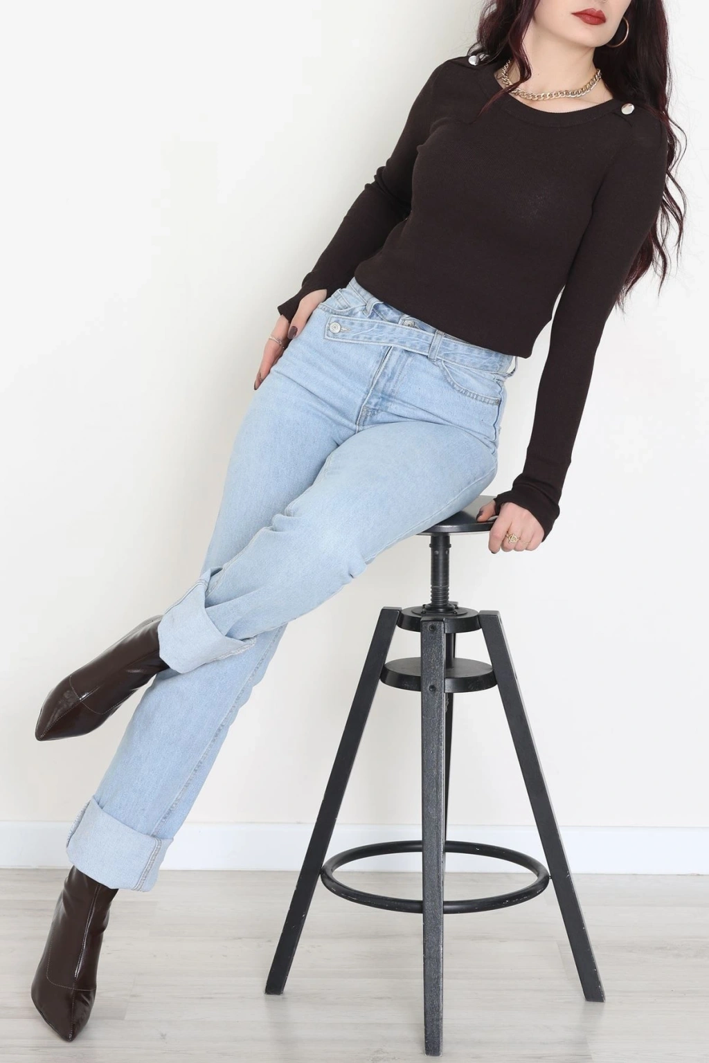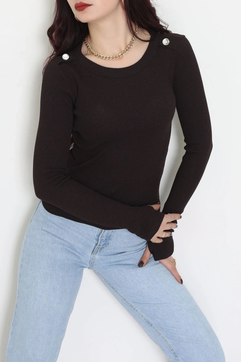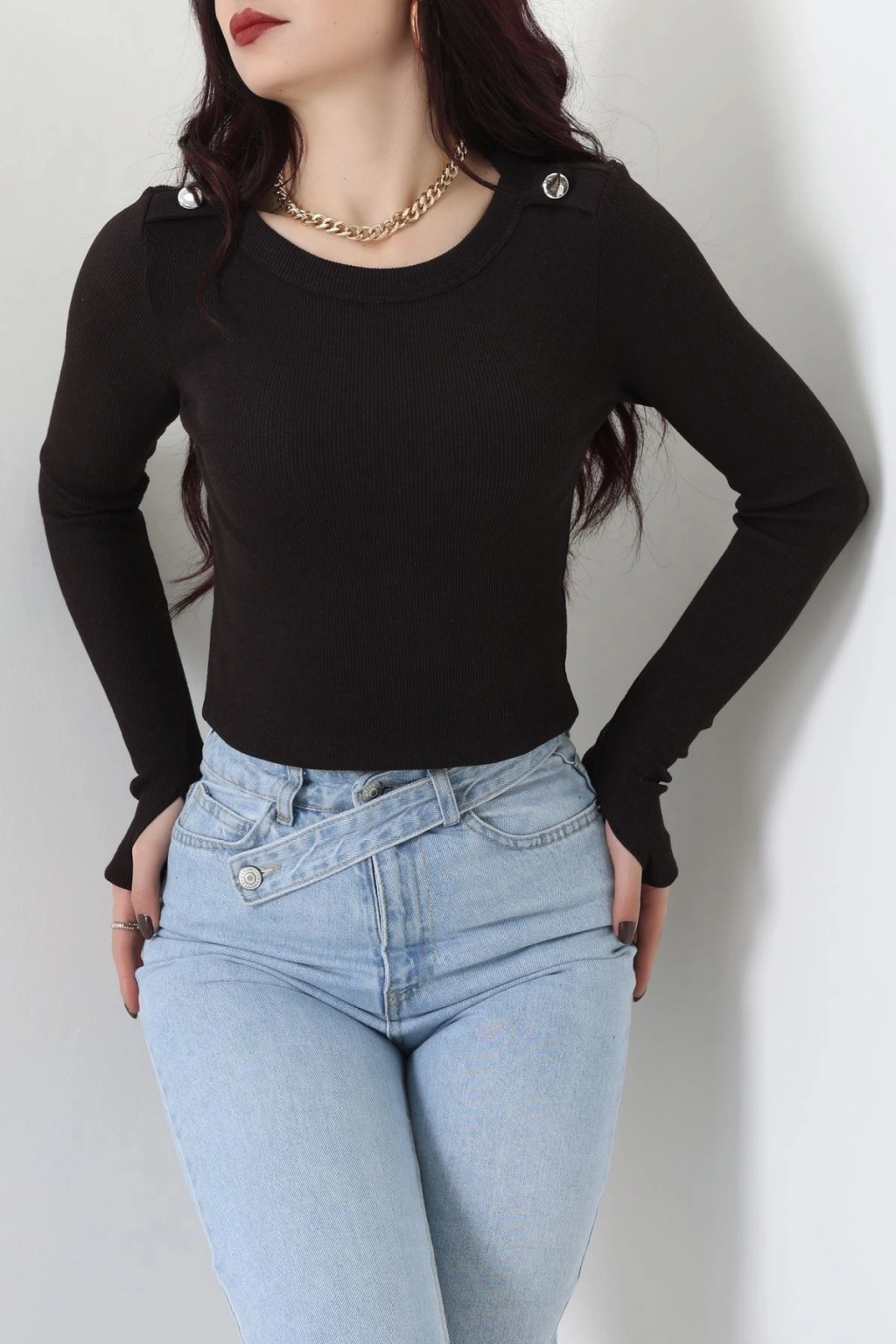Sandy Önü Tokalı Çıtçıtlı Bluz Kahve - 42803.1949.