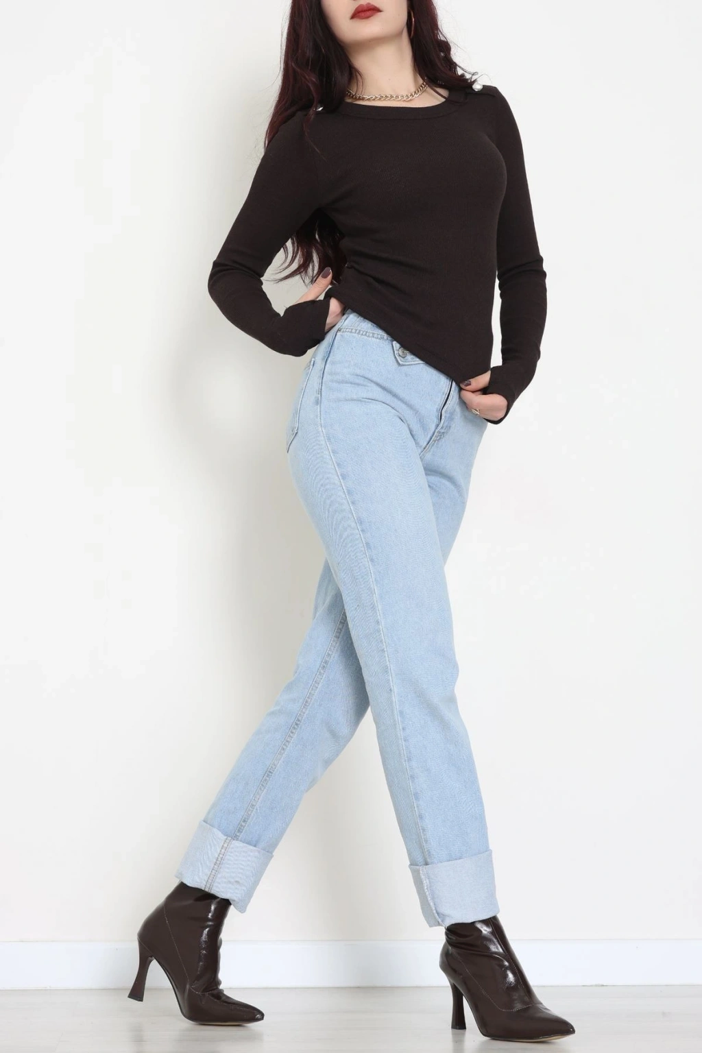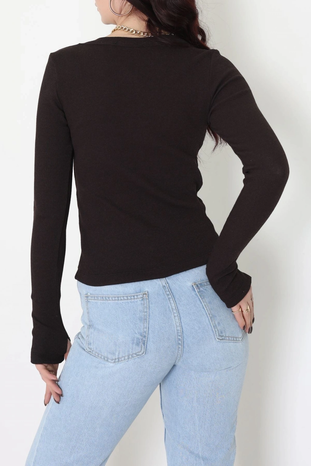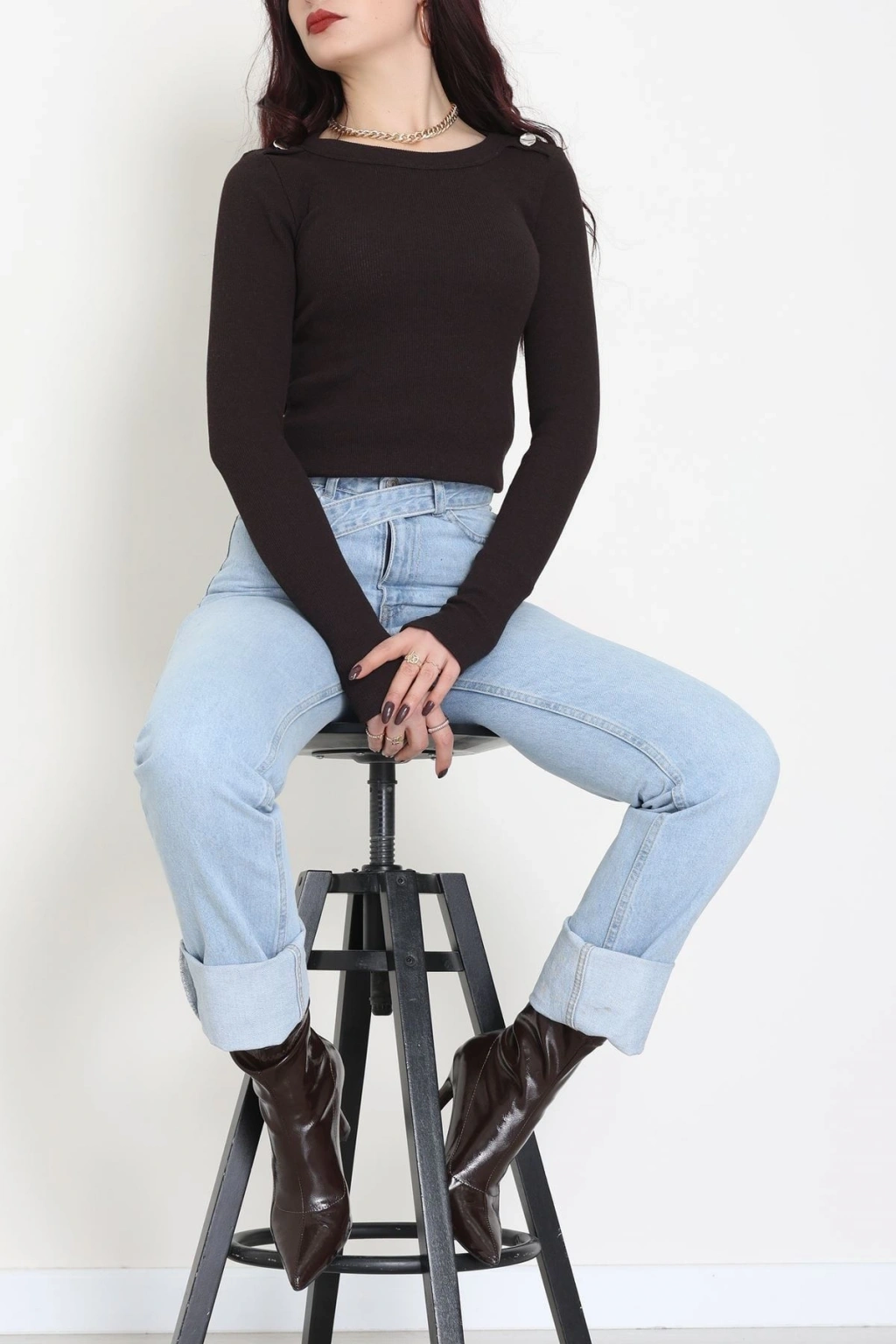 Bisiklet Yaka Omuz Düğmeli Kaşkorse Body Acıkahve - 70790.599.