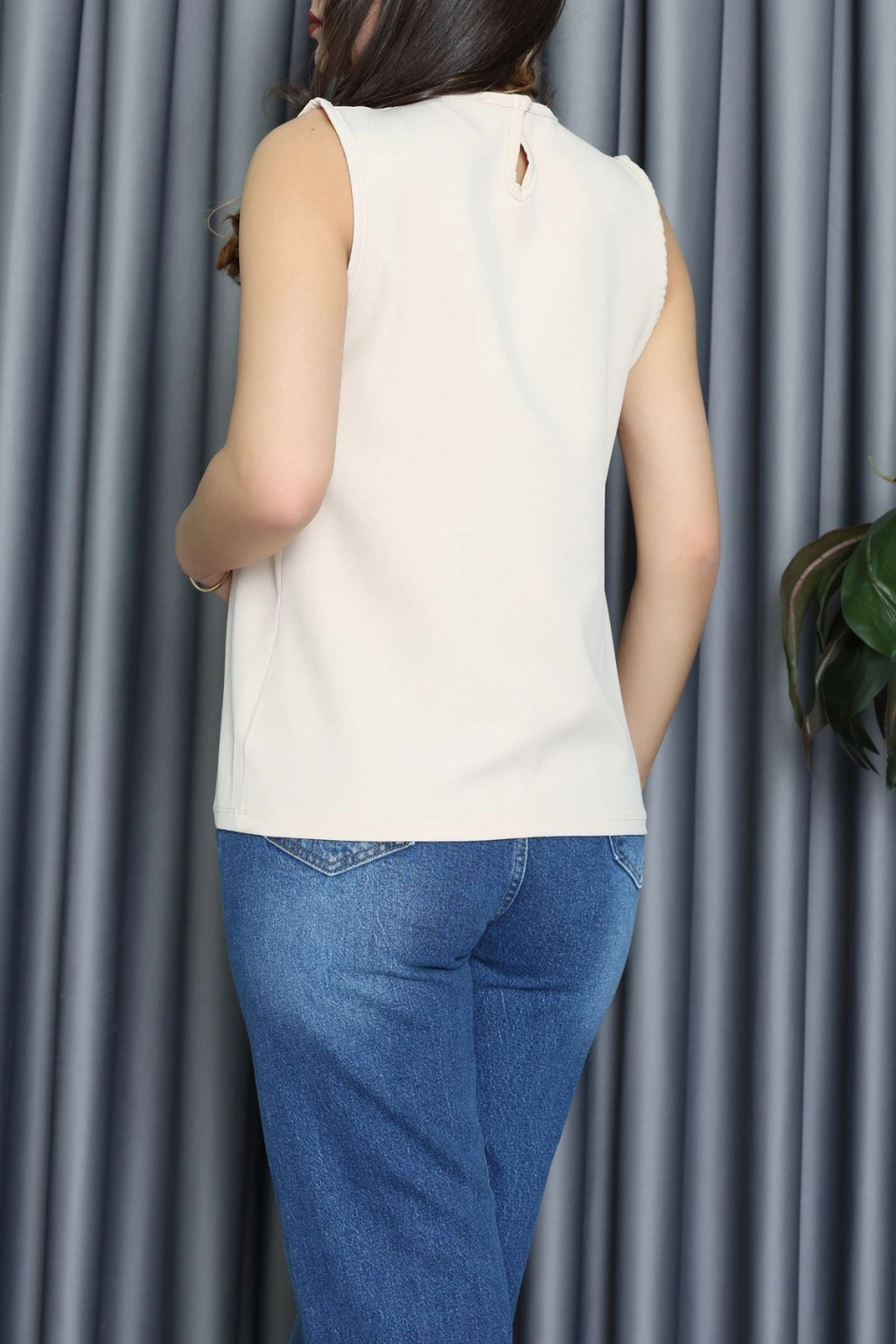 Bisiklet Yaka Önden Pileli Atlas Bluz Bej - 61501.1256.