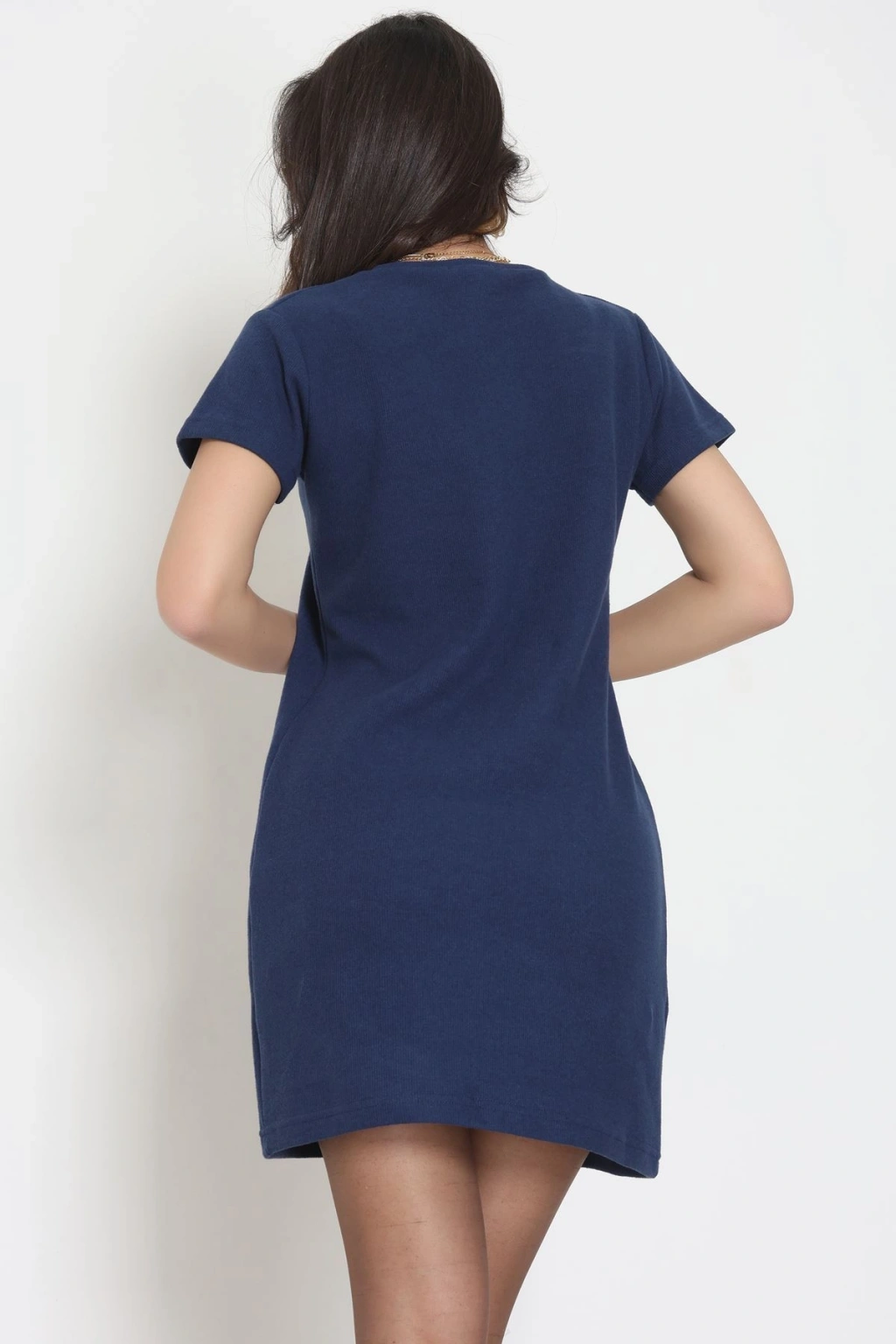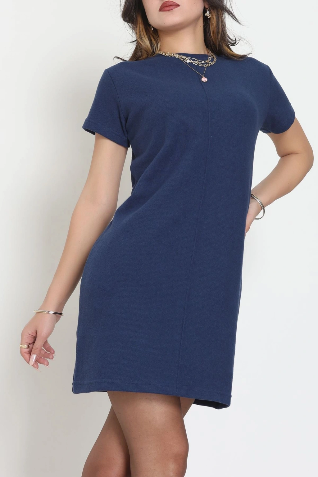 Bisiklet Yaka Selanik Kumaş Elbise Lacivert - 70823.1567.